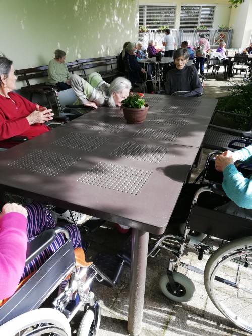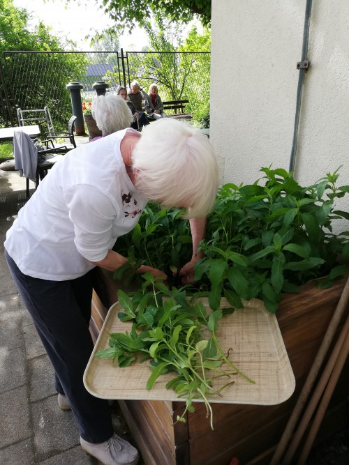 Naša meta iz visokih gred je že zrastla, zato smo jo porezali