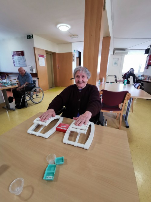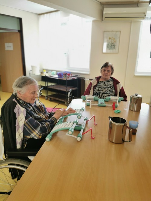 V spremstvu delovne terapevtke so šli nekateri na sprehod po hodnikih.