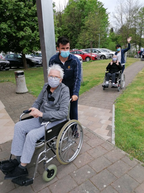 In se sprehodili po hodnikih v družbi fizioterapevtke.