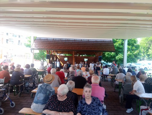 Danes so v naši kuhinji za stanovalce pripravili kosilo na domačiji. Pred kosilom so nas obiskali učenci iz Osnovne šole Šmihel, podružnice Birčna vas, ki so za naše stanovalce pripravili nastop. Otrok so se naši stanovalci zelo razveselili, saj je minilo kar nekaj časa od zadnjega tovrstnega nastopa. Za boljši tek smo pred kosilom s kvizom in lažjimi telovadnimi vajami razgibali um in telo. Kuhinja je nato postregla z okusnim hamburgerjem in krompirčkom, na koncu pa smo se, kot se za pravi vroč dan spodobi, posladkali s sladoledom.