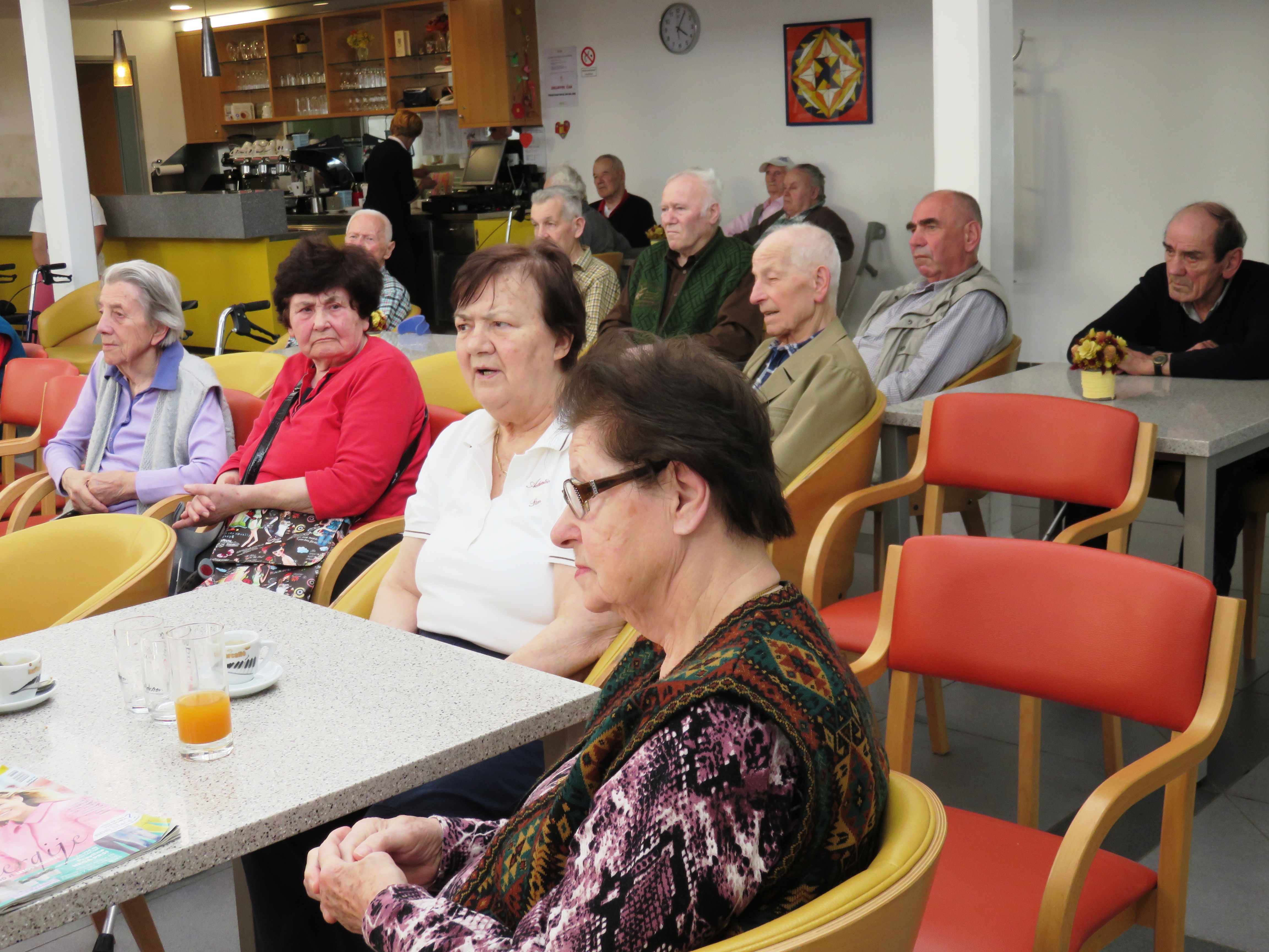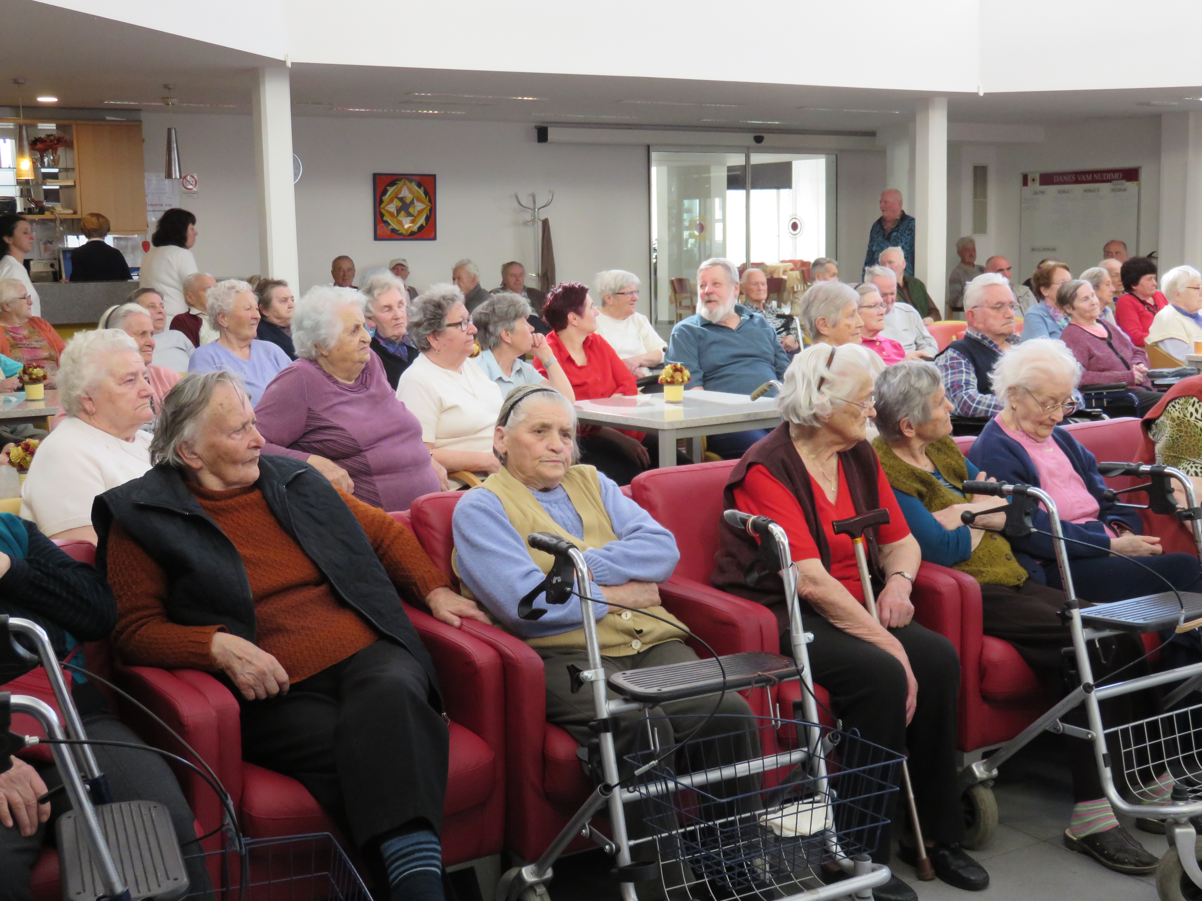 V sredo, 15.4.2015 smo imeli v avli koncert ljudskih pevk Rožc iz Dolenjskih Toplic. S prepevanjem starih ljudskih pesmi, ki so skoraj že utonile v pozabo, so v marsikaterem od naših stanovalcev obudile spomine na mladost in ga spodbudile, da se jim je pridružil pri petju.