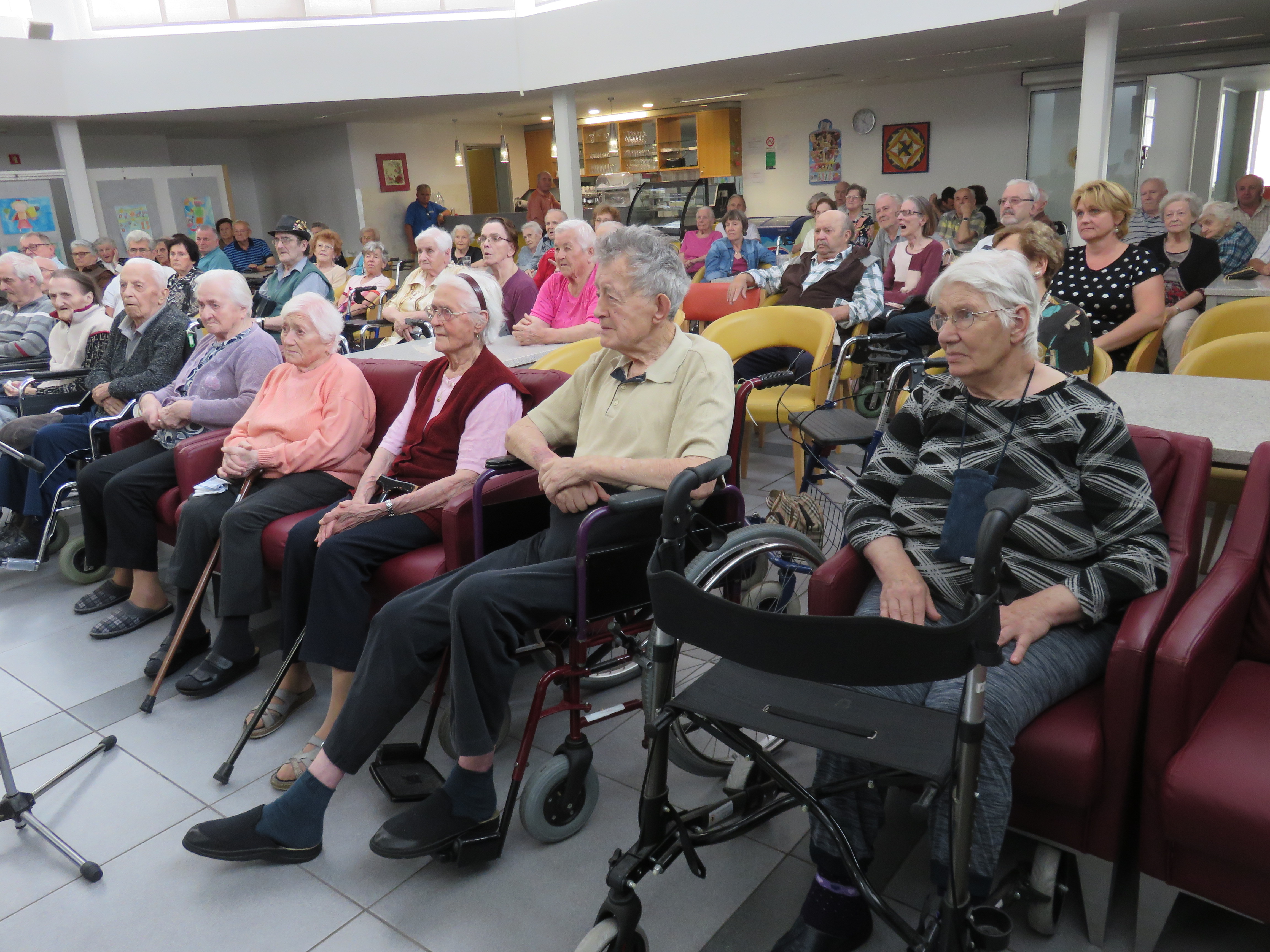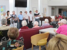 V torek, 8. 7. 2019, je v avli nastopila pevska skupina Mavrica, ki deluje v medobčinskem društvu slepih in slabovidnih Dolenjske in Bele krajine. Z ubranim petjem so dokazali, da za dobro voljo in prijetno druženje ni ovir. Tudi naši stanovalci so se lepo vključili in skupaj z njimi zapeli.
