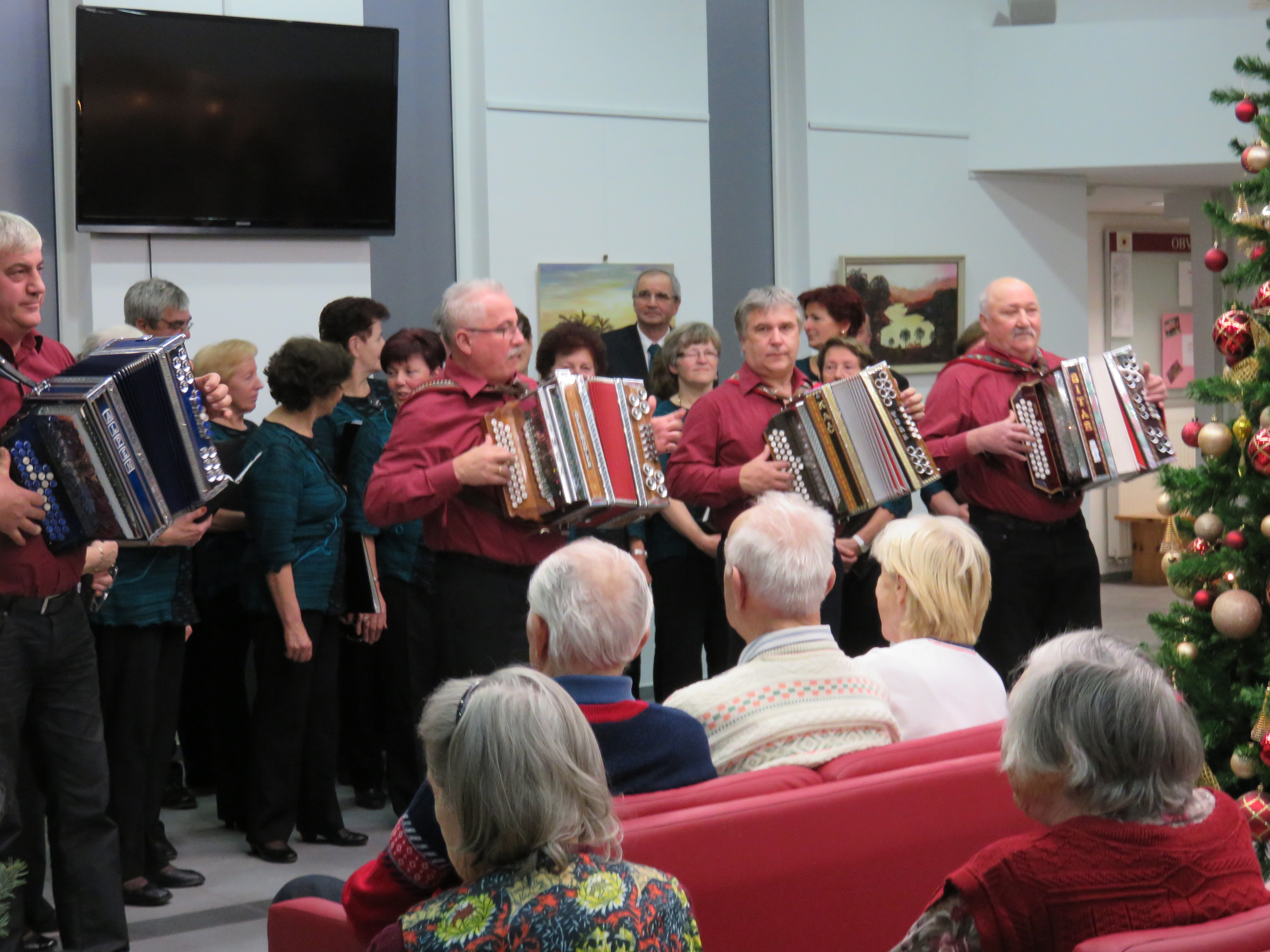 Tradicionalni koncert Mešanega pevskega zbora Društva upokojencev Novo mesto nam je v četrtek, 11.12.2014, obogatil popoldne. Ob izvajanju prelepih pesmi pevcev zbora in zvokih harmonik harmonikarjev iz Mirne Peči, je čas vse prehitro mineval. Razšli smo se v prijetnem razpoloženju.