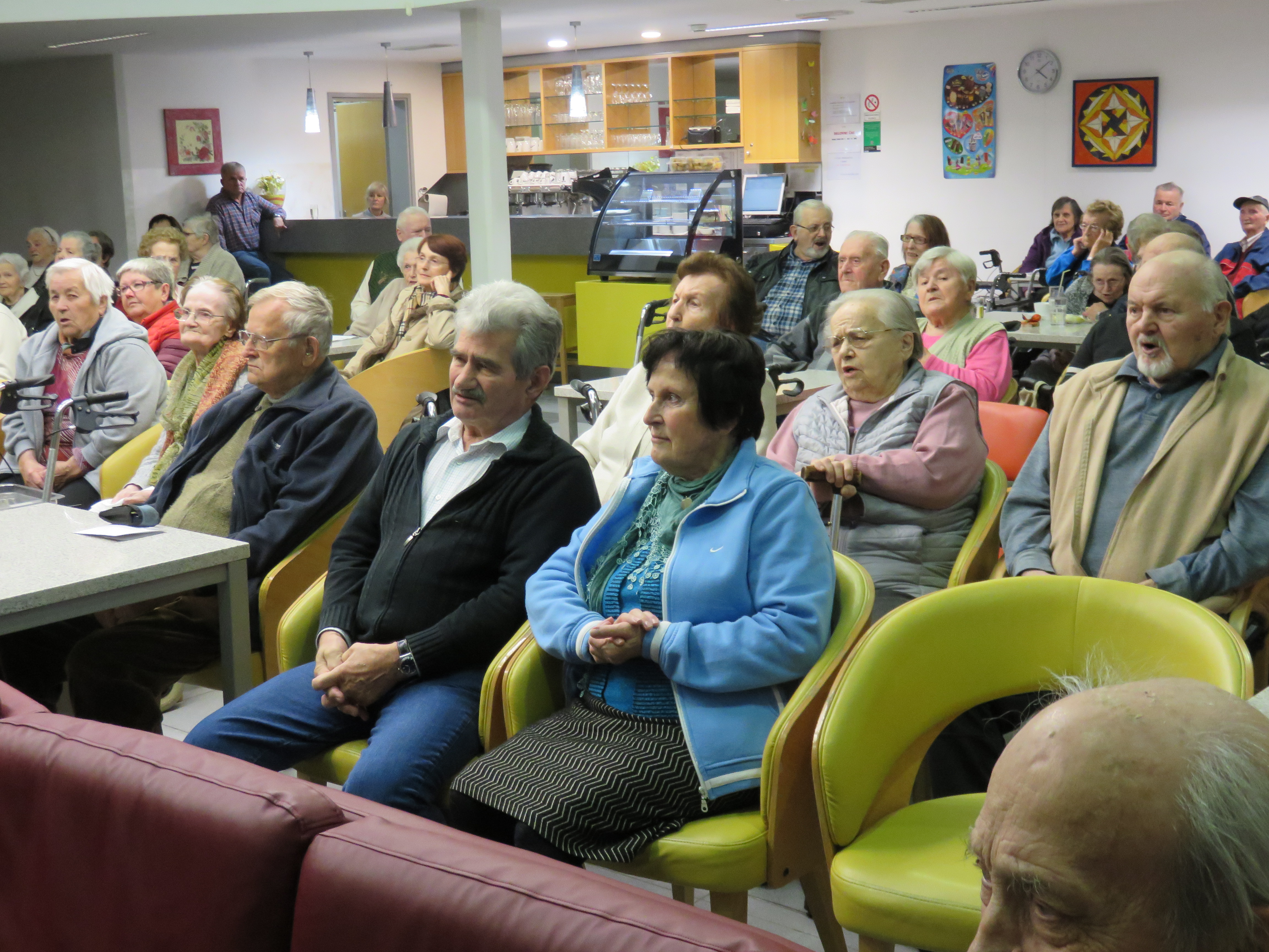 Četrtkovo popoldne so nam s svojim petjem obogatili člani Mešanega pevskega zbora Društva upokojencev Trebnje, pod vodstvom Mateja Burgerja. Stanovalci so jim z veseljem prisluhnili in se jim pri petju tudi pridružili.