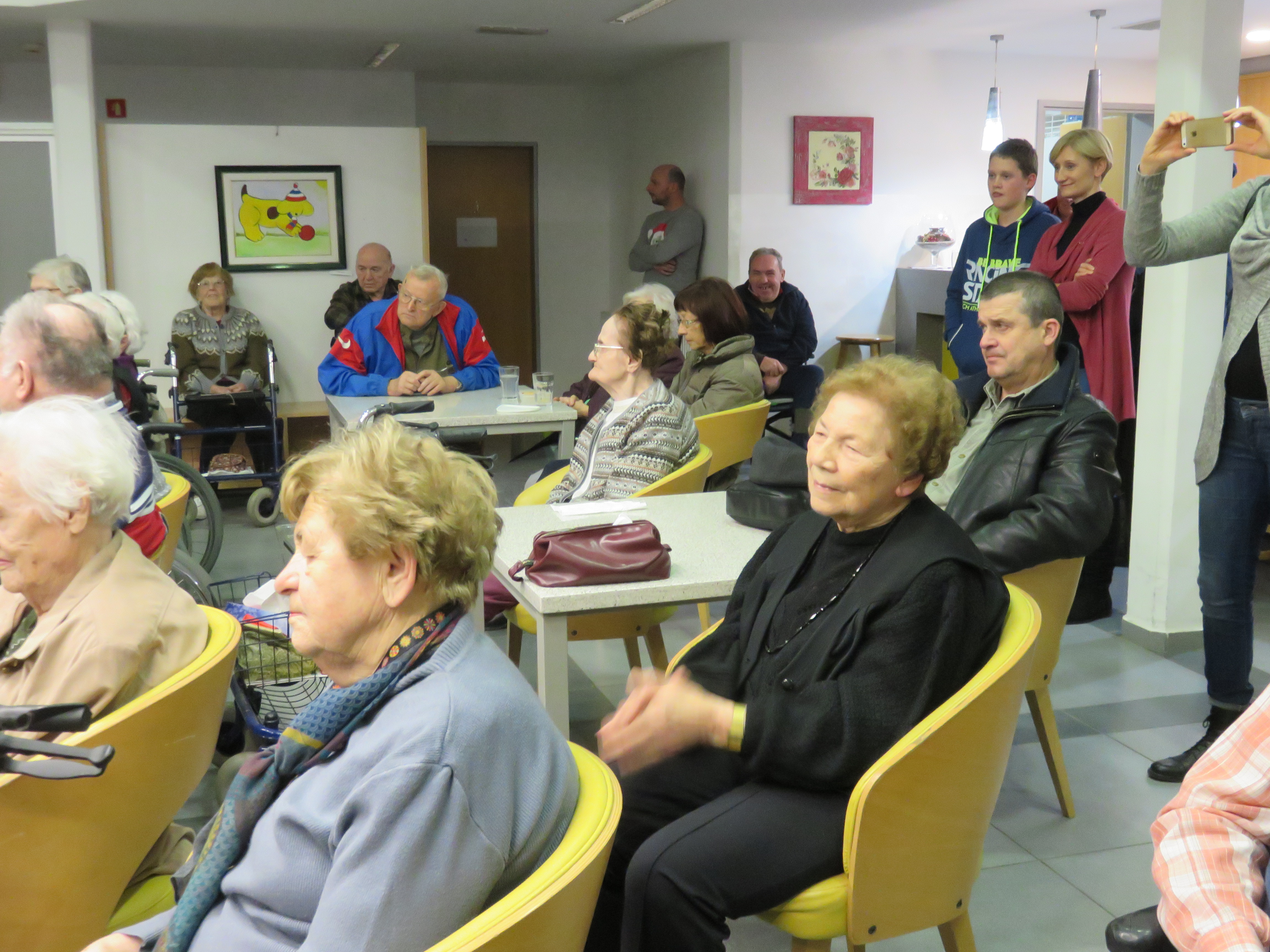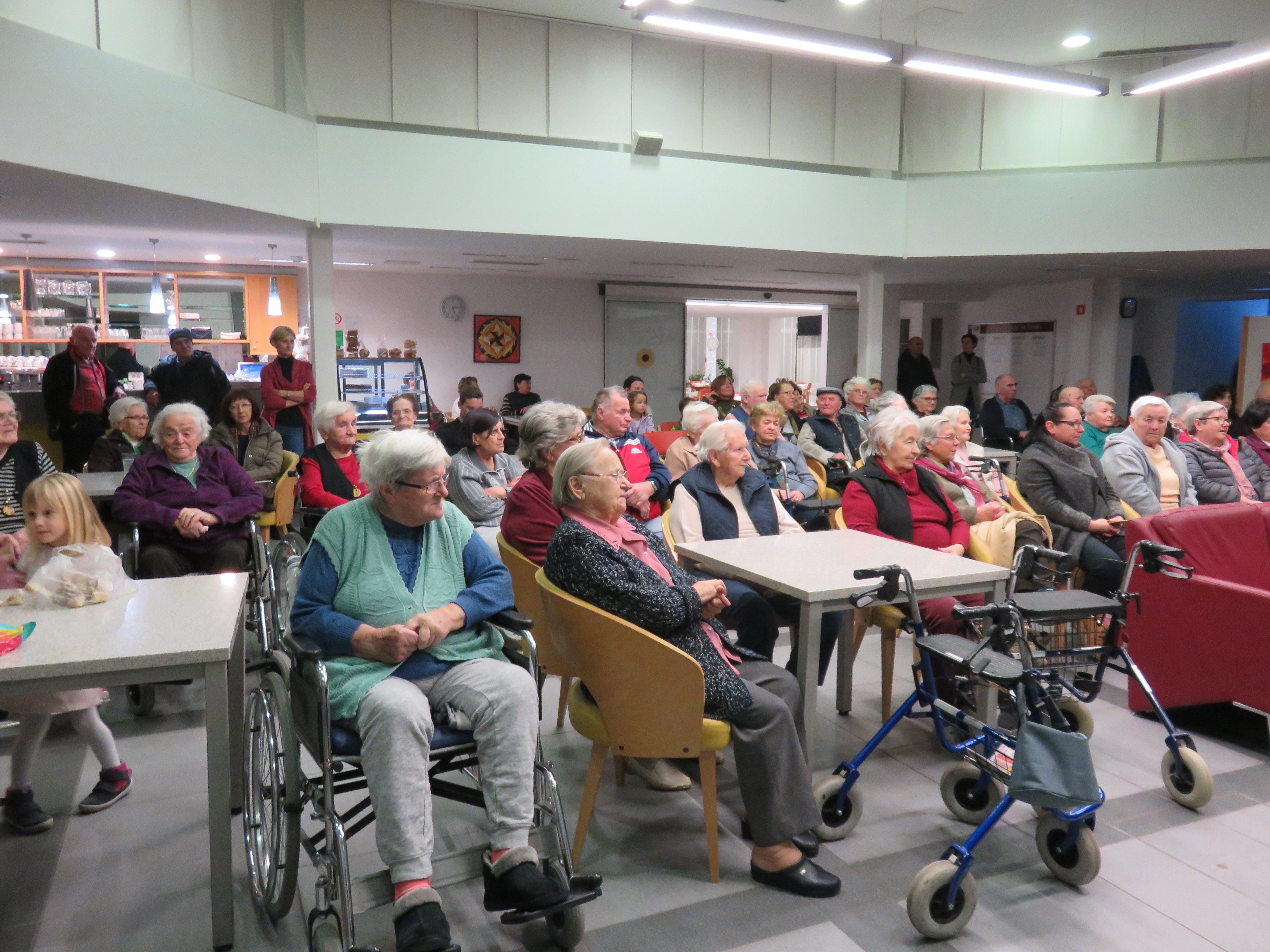 V hladnem četrtkovem popoldnevu so srca naših stanovalcev s pesmijo ogreli člani Mešanega pevskega zbora Revoz. Kljub pestremu dogajanju v dopoldanskem času se je koncerta udeležilo veliko število stanovalcev, ki so uživali v zapetih pesmih.