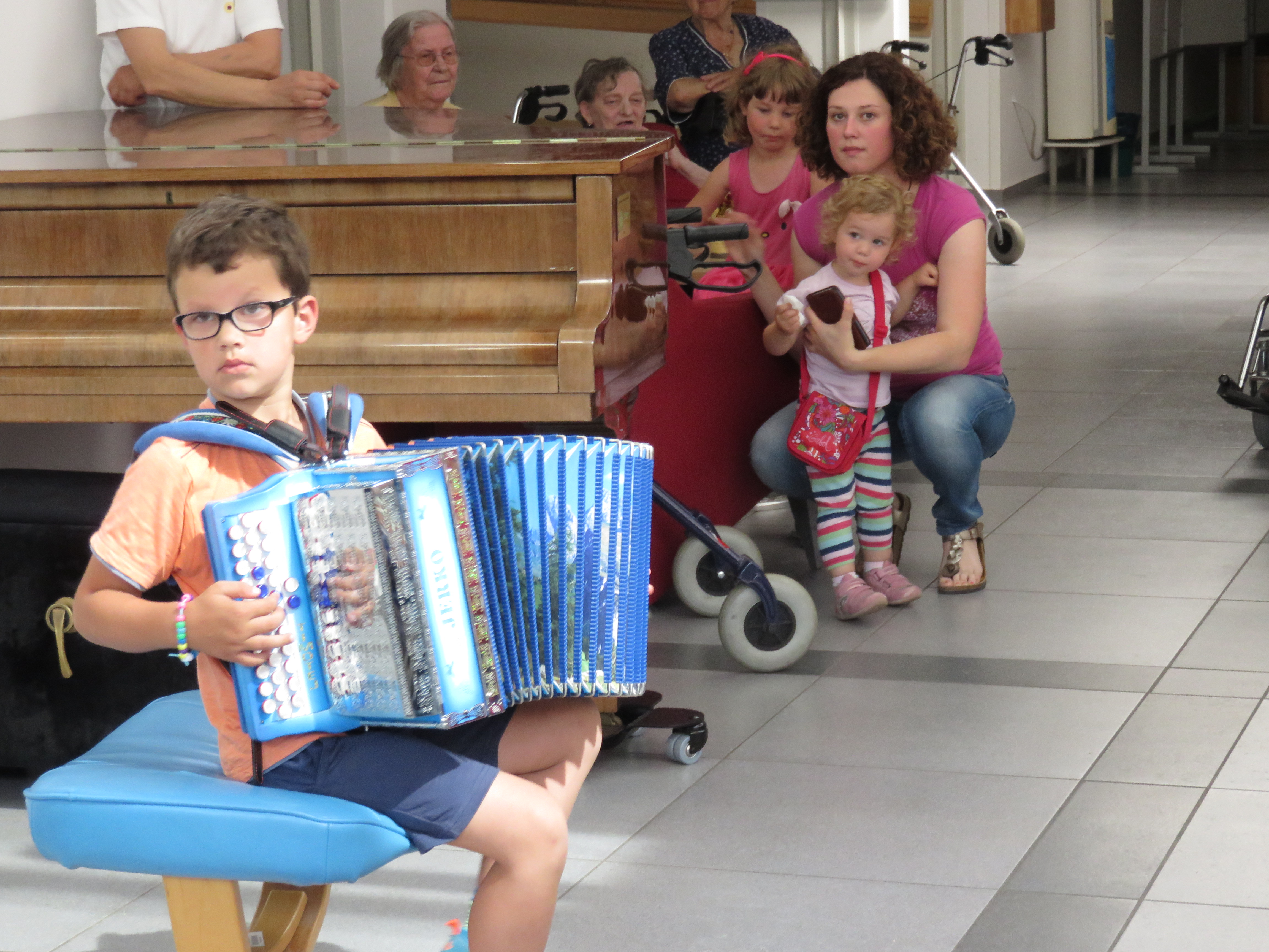 V četrtek 30.6.2016, je bil v avli koncert pevskega zbora stanovalcev, ki nosi ime Prijatelji. Pevska tradicija je v domu že dolga, saj zbor letos praznuje 35. obletnico. Ob prepevanju nam vsem znanih pesmi, ki jih je na kitaro spremljala zborovodkinja Andreja Šuštaršič ter mladostni razigranosti in izvrstnemu igranju na harmoniko, ki nam ga je pričaral šestletni Timotej Lah, smo preživeli prelepo popoldne.