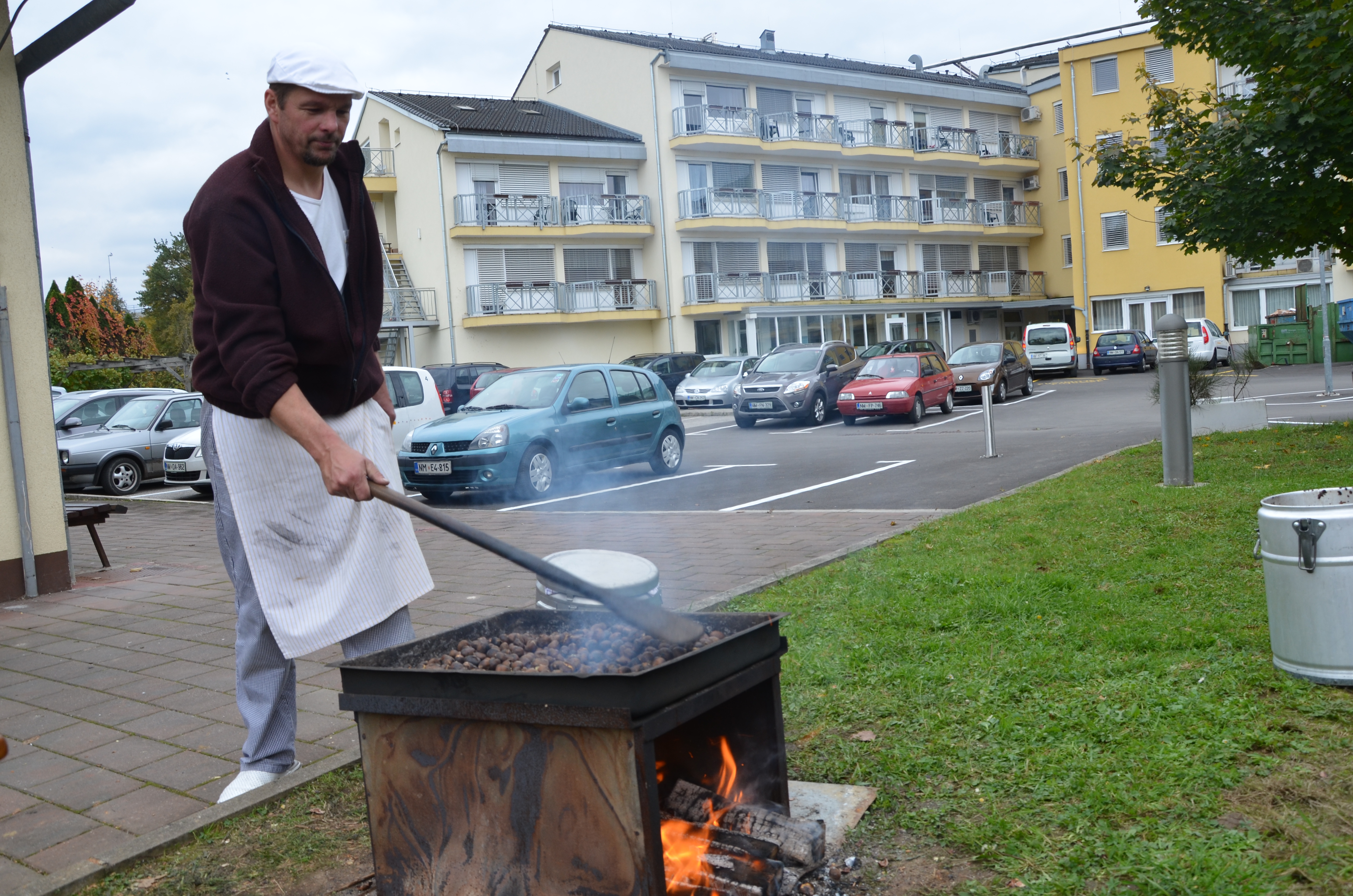 V ponedeljek, 19.10.2015 smo imeli na domačiji kostanjev piknik. Zaradi izredno slabega in mrzlega vremena, se je piknika udeležilo le manjše število stanovalcev. Vse ostale smo s pečenim kostanjem razveselili na oddelku.