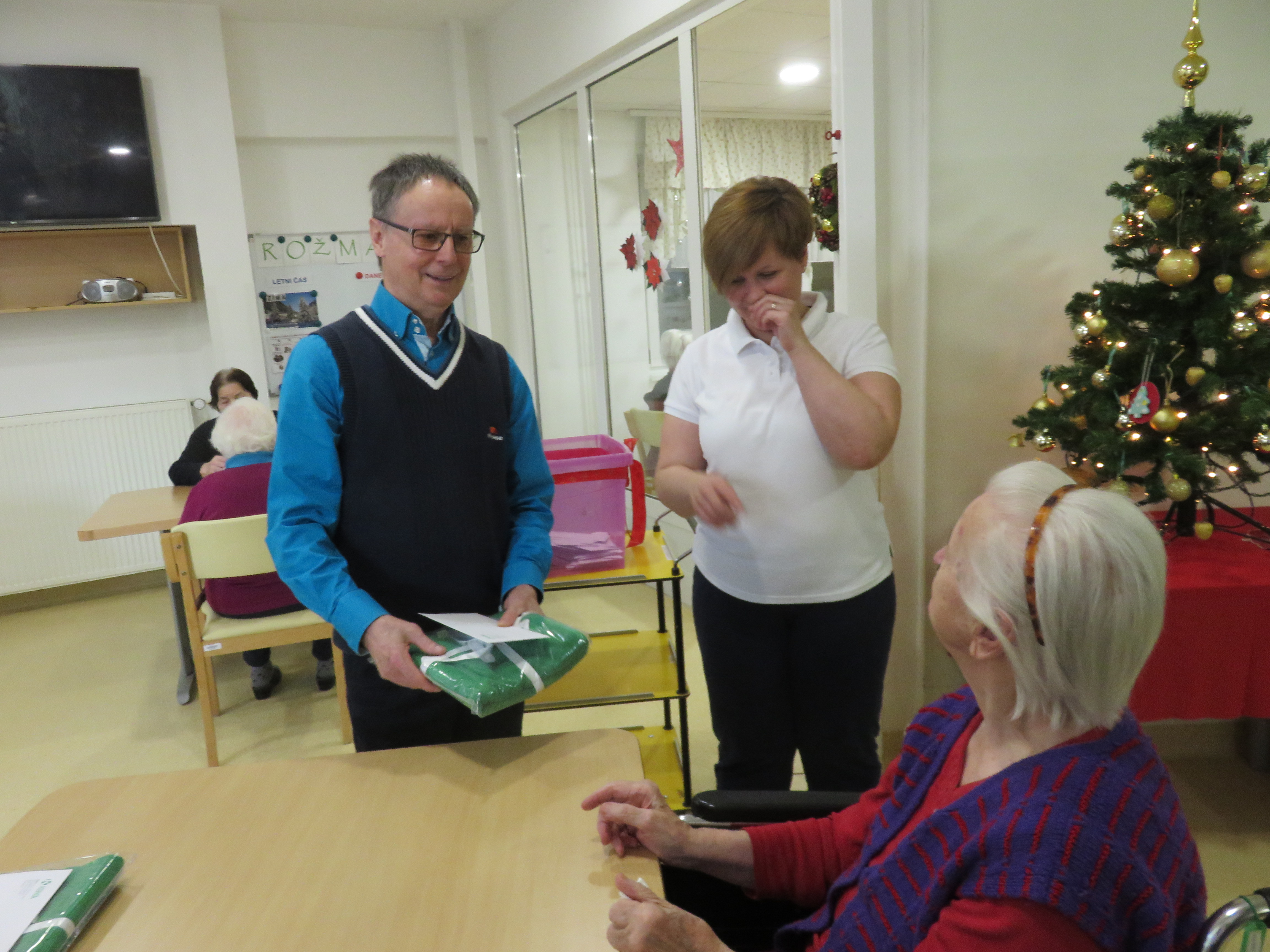 Tradicionalno so člani našega pokroviteljskega odbora Krke, tovarne zdravil, d.d., Novo mesto, v decembru obdarili naše stanovalce. V torek, 17. 12. 2019 so tako vsakega izmed njih obiskali v sobi, ga pozdravili, spregovorili kakšno besedo in izročili darilo. Stanovalci so bili obiska zelo veseli in hvaležni za izkazano pozornost.