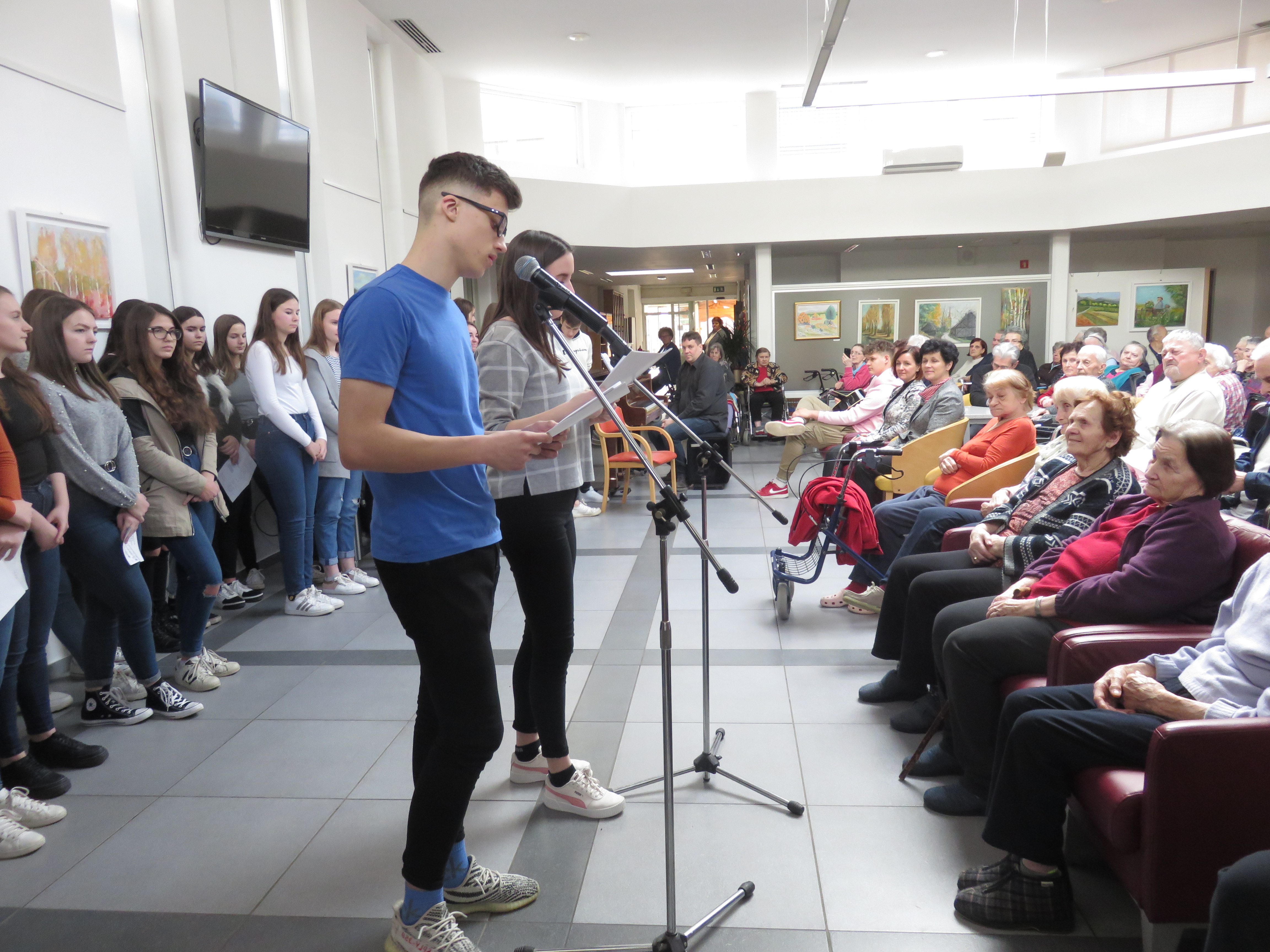 Slovenski kulturni praznik smo v našem domu obeležili 7. februarja. Prav prisrčen program so nam pripravili dijake srednje gradbene lesarske in vzgojiteljske šole.