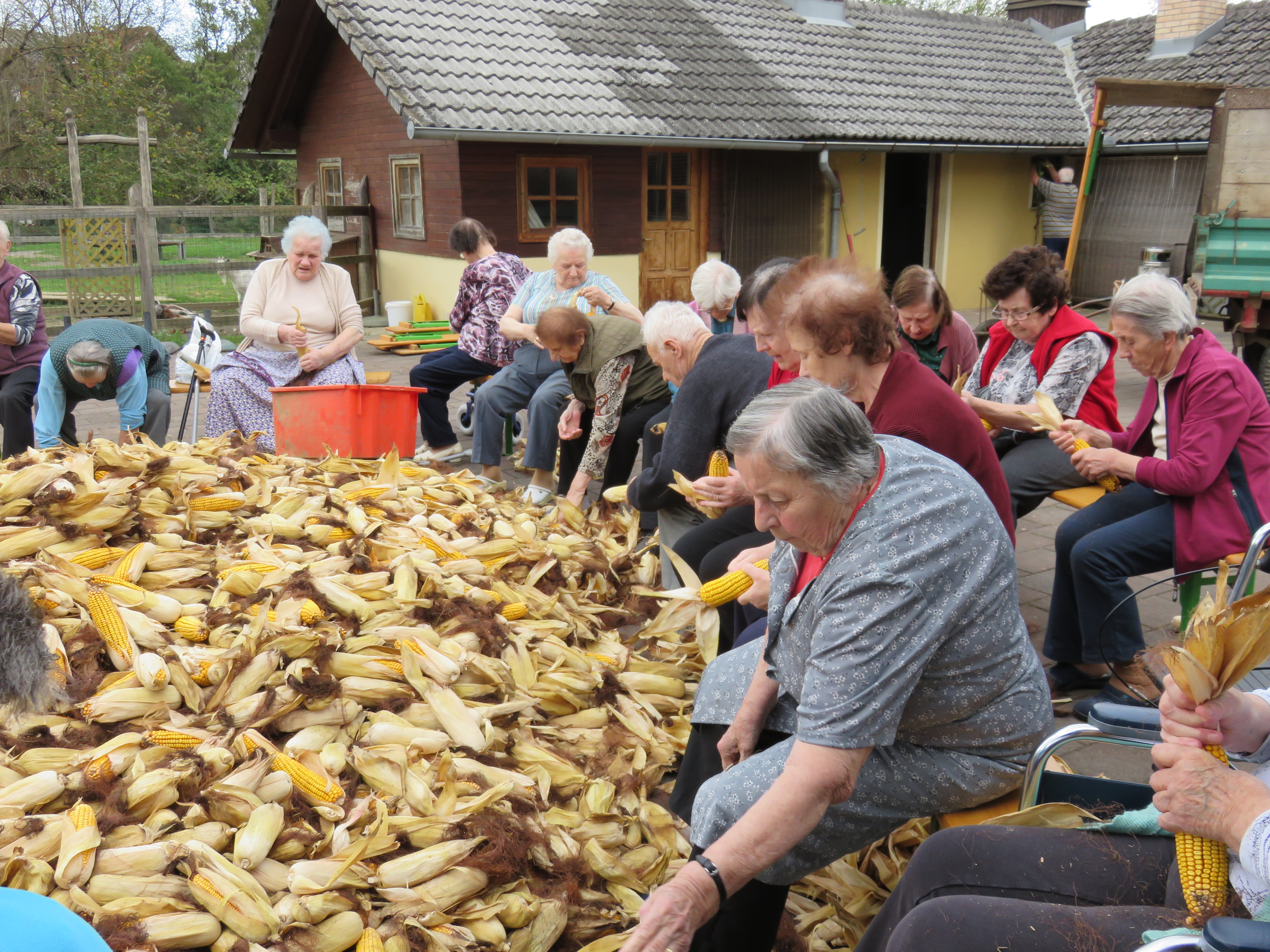 Kljub nepredvidljivemu vremenu in deževni jeseni, nam je tudi letos uspelo izvesti ličkanje koruze. Veliko število stanovalcev se je zbralo na Domačiji. Ob prijetnem pogovoru, petju, smehu in obujanju spominov, se je kup koruze, ki nam ga je pripeljal gospod Ivan Bučar kar hitro manjšal. Najbolj srečni stanovalci so se še posebej razveselili nagrad, ki so bile skrite pod kupom koruze.