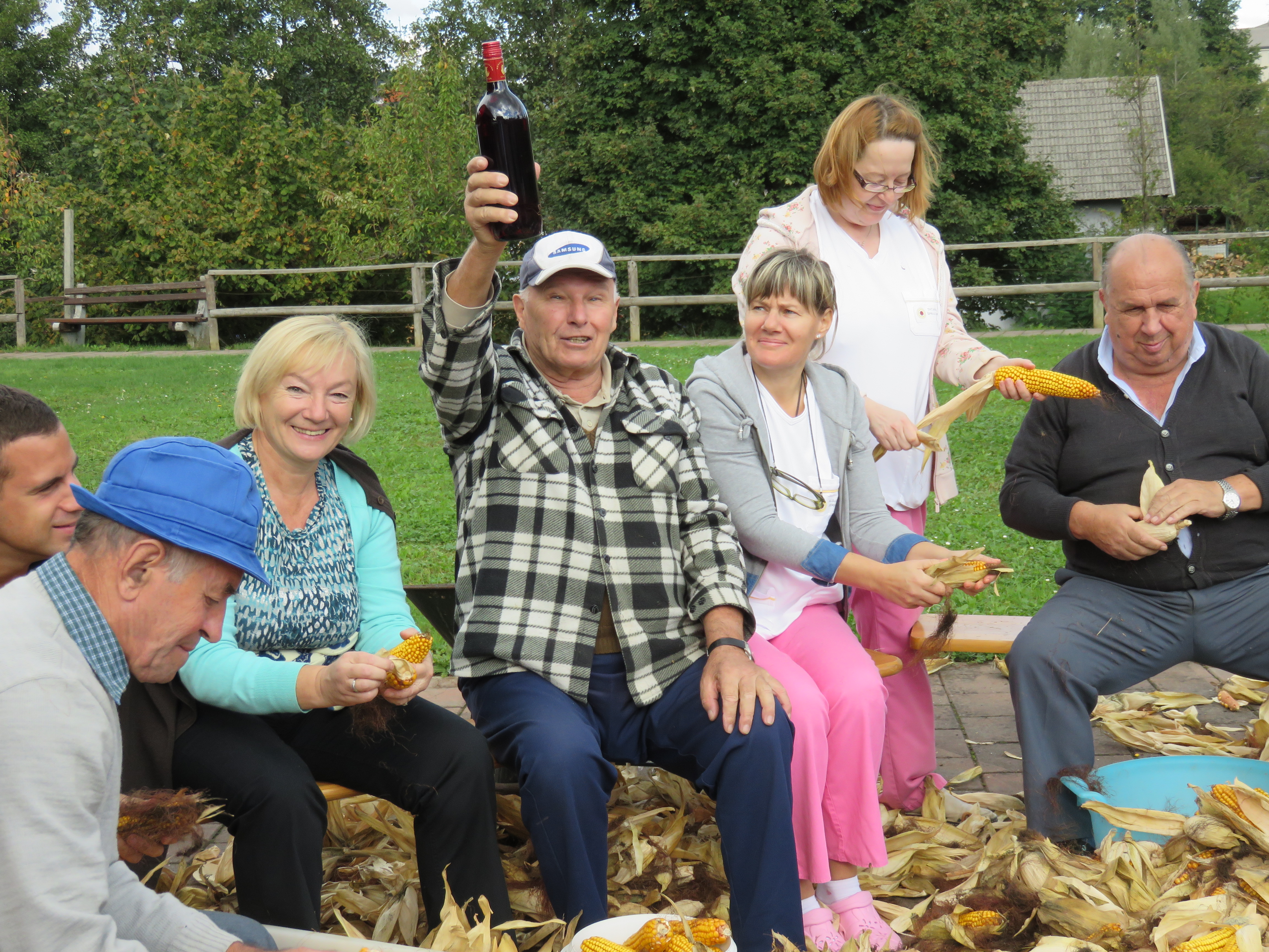 Obujanje starih običajev vedno pritegne veliko stanovalcev na našo Domačijo. Tako je bilo tudi vponedeljek, 28.9.2015, ko smo se delavci in stanovalci posedli v krog ob velikem kupu koruze in pričeli z ličkanjem. Da pa smo lahko ličkali, smo poskrbeli že teden prej, ko smo odšli h kmetu Ivanu Bučarju na koruzno polje, kjer smo nakrhali za traktorsko prikolico koruze. Kljub ne ravno lepemu vremenu je delo potekalo v veselem razpoloženju in ob zvokih harmonike.