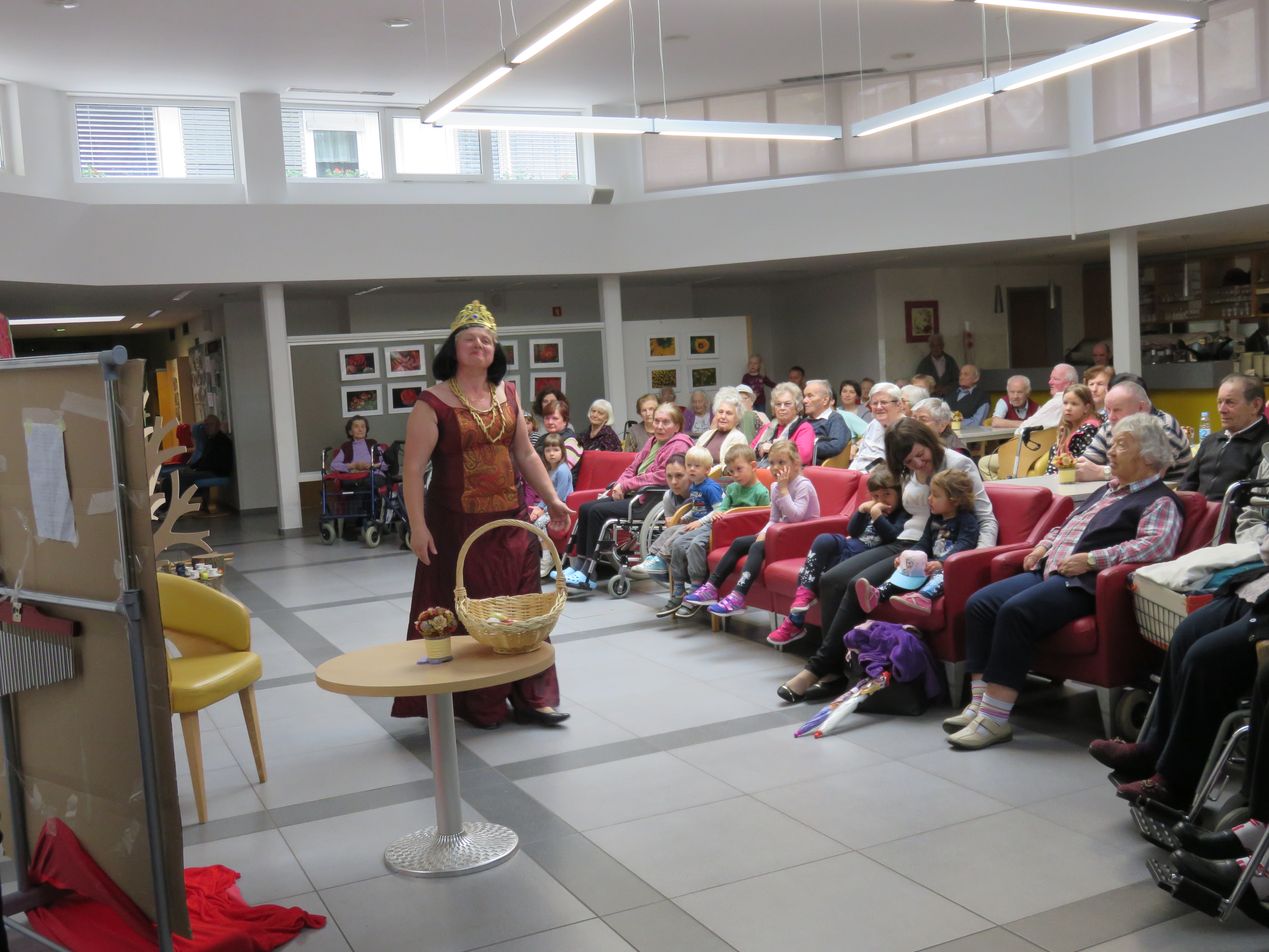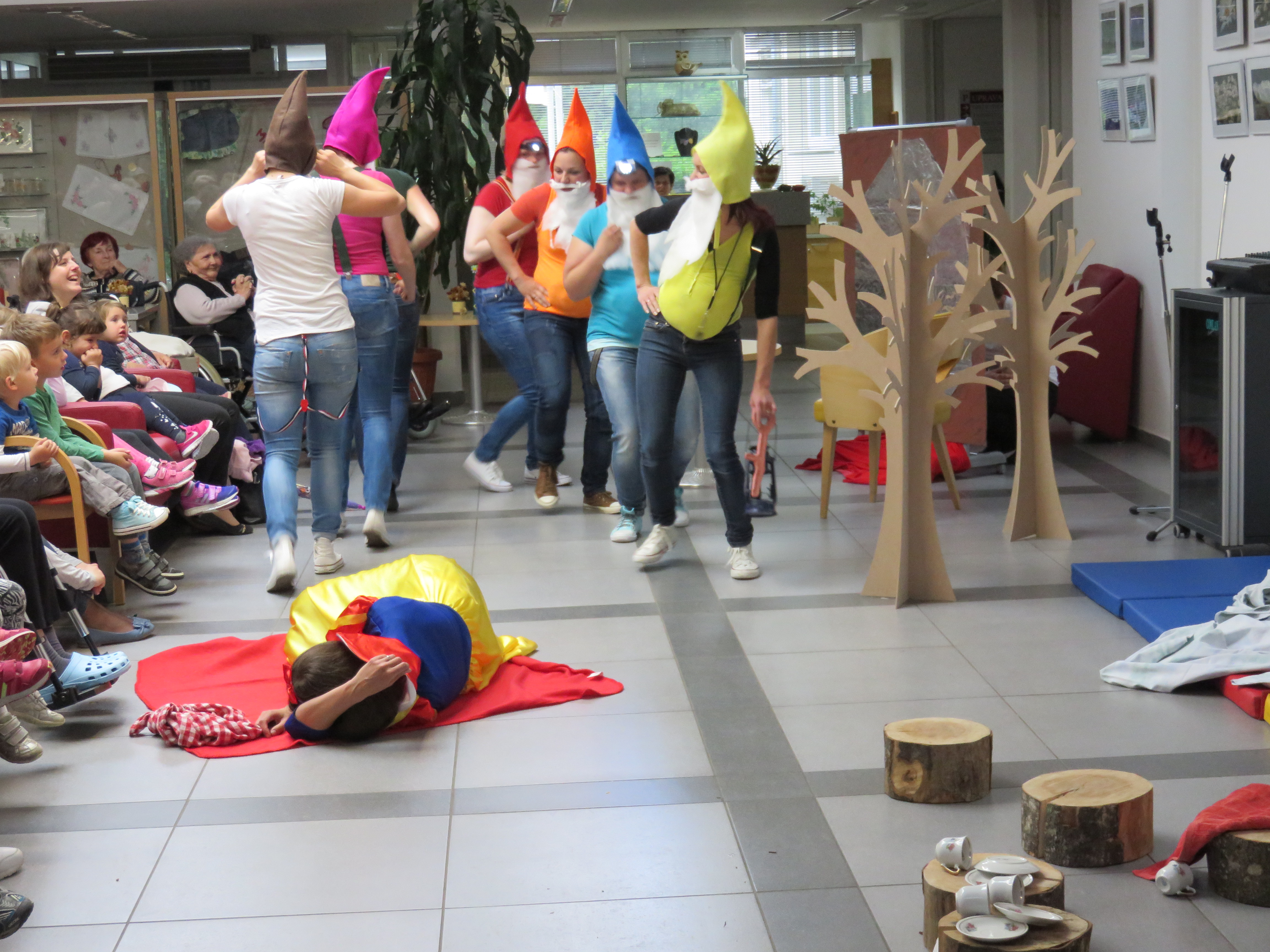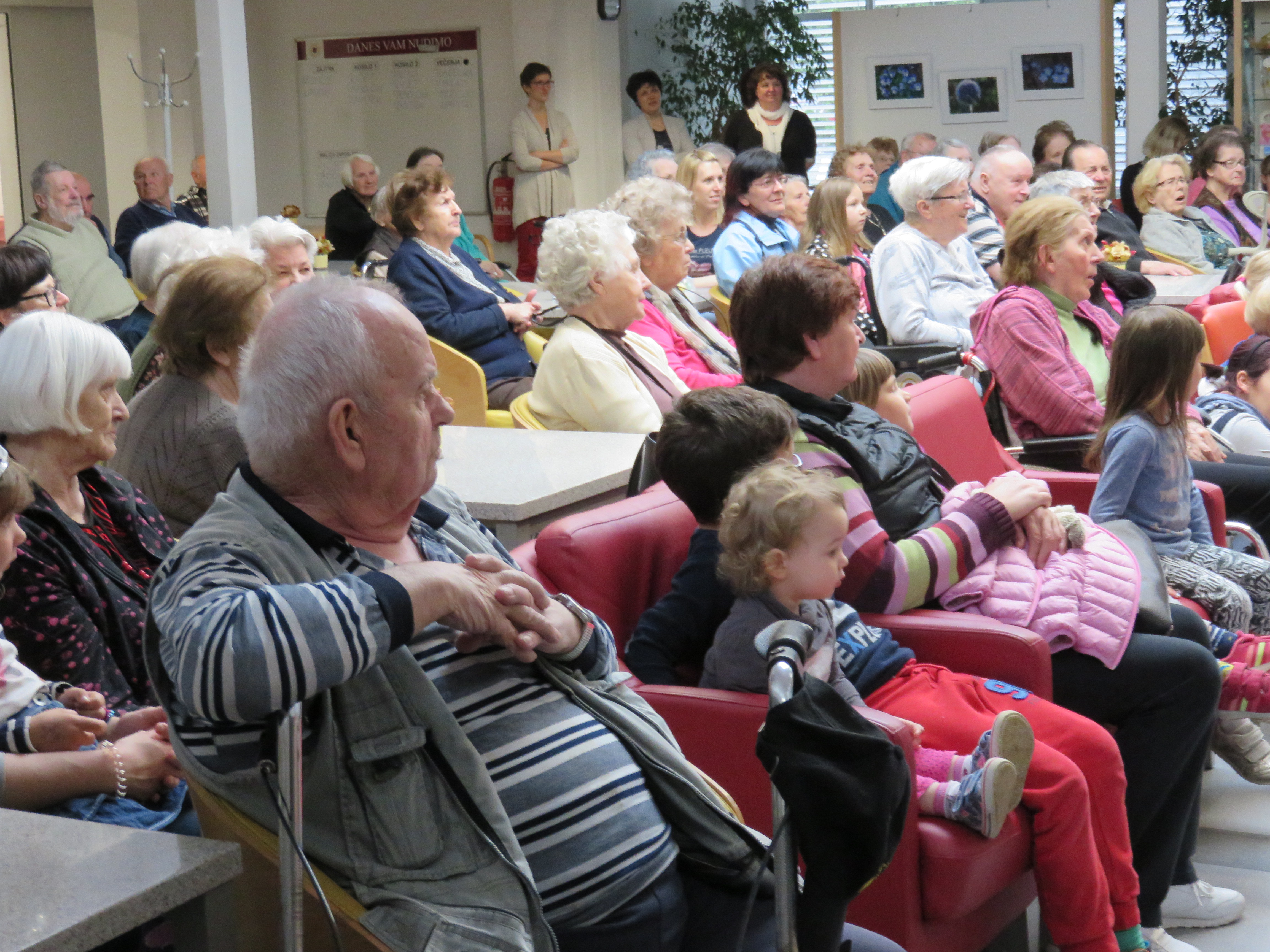 V torek 10.5.2016, smo na obisk povabili otroke delavcev, ter vnuke in pravnuke naših stanovalcev. Skupaj smo si ogledali predstavo Sneguljčica in sedem palčkov, ki so jo pripravile delavke Vrtca Čebelice iz Šentjerneja. Da človek ni nikoli prestar za pravljice, so dokazali vsi skupaj z neverjetnim vzdušjem. Čudovito popoldansko medgeneracijsko druženje je zaključil zbor vzgojiteljic Vrtca Čebelice.