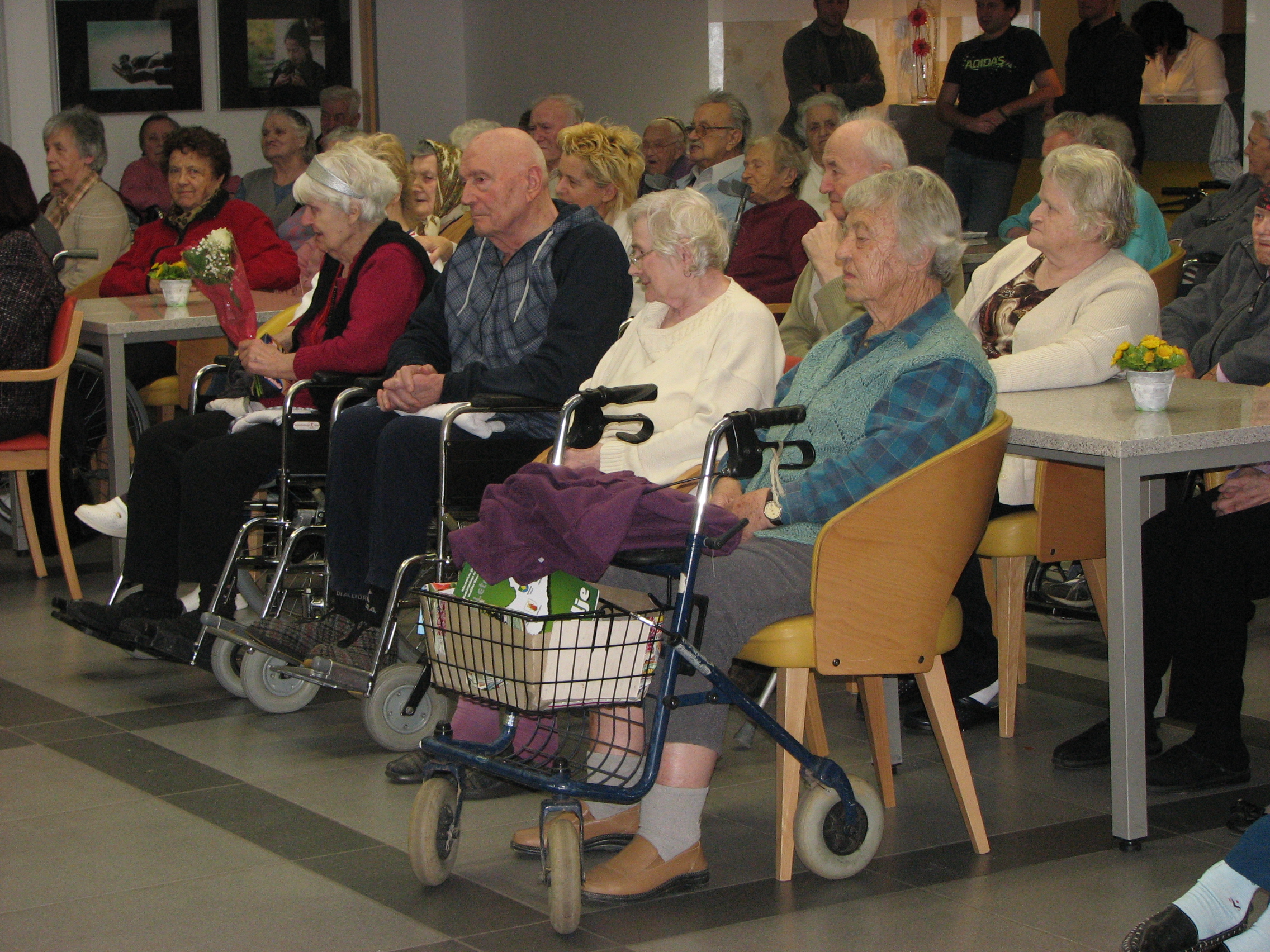 Kulturni program je potekal ob prijetnem klepetu s Tonijem Gašperičem in glasbenih vložkih Žana Ograjška iz Trebnjega, ki je igral na kitaro in pel. Za postavitev Modre police v Domu se je gospod Toni Gašperič odločil tudi zato, ker ima v njem veliko znancev, vežejo pa ga tudi izredno lepi spomini na njegovo nekdanjo učiteljico likovne vzgoje gospo Božo Podrgajs, katera je stanovalka našega Doma. Srečanja sta se oba izredno razveselila.