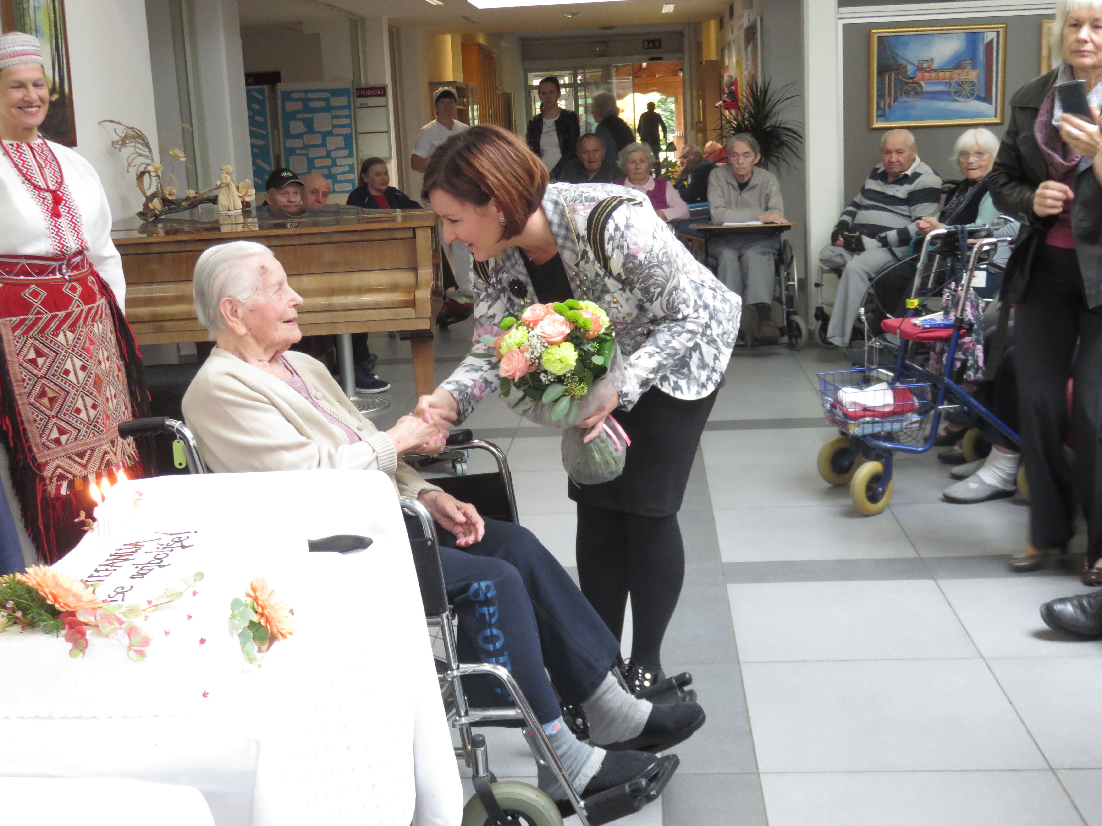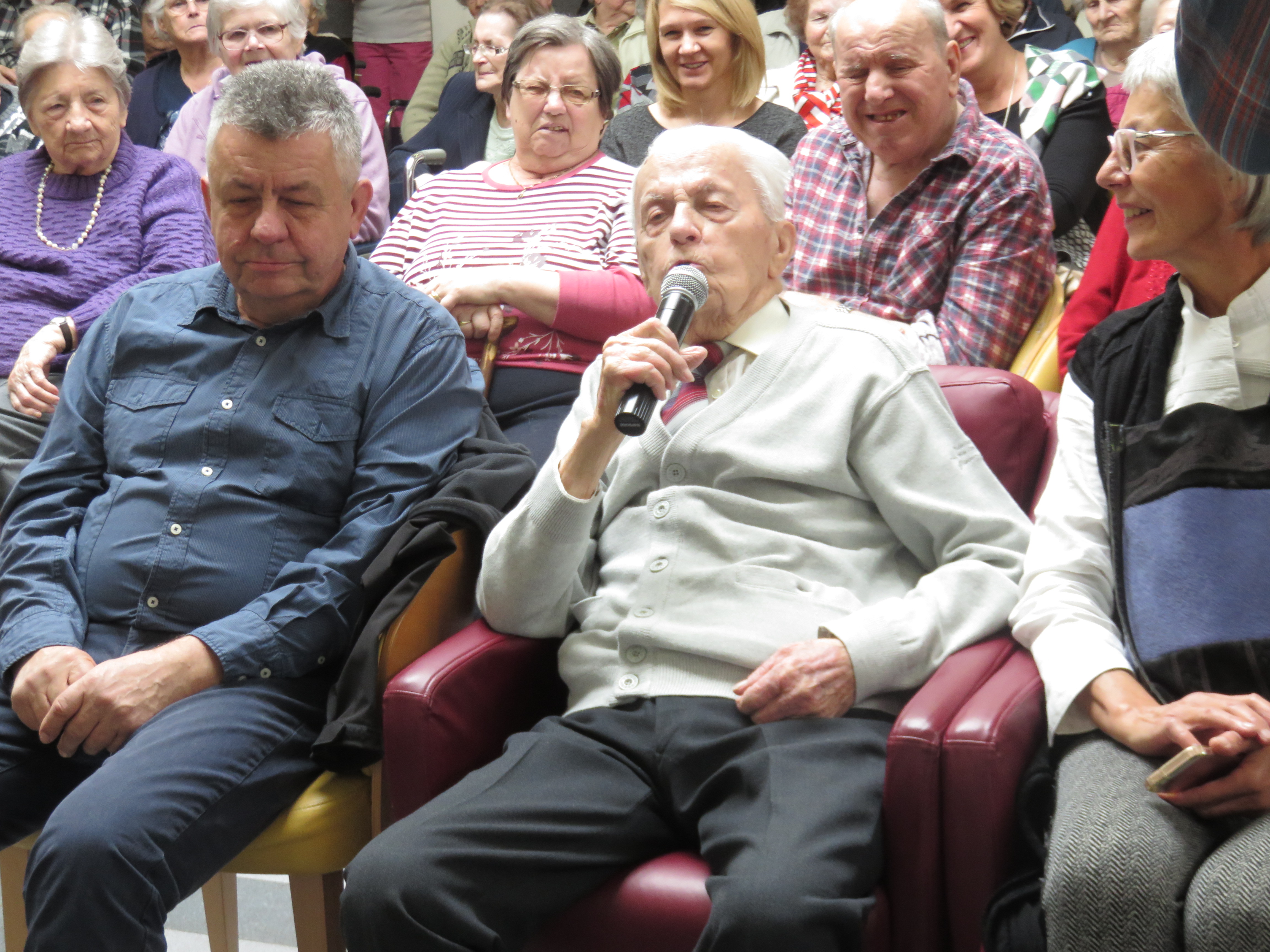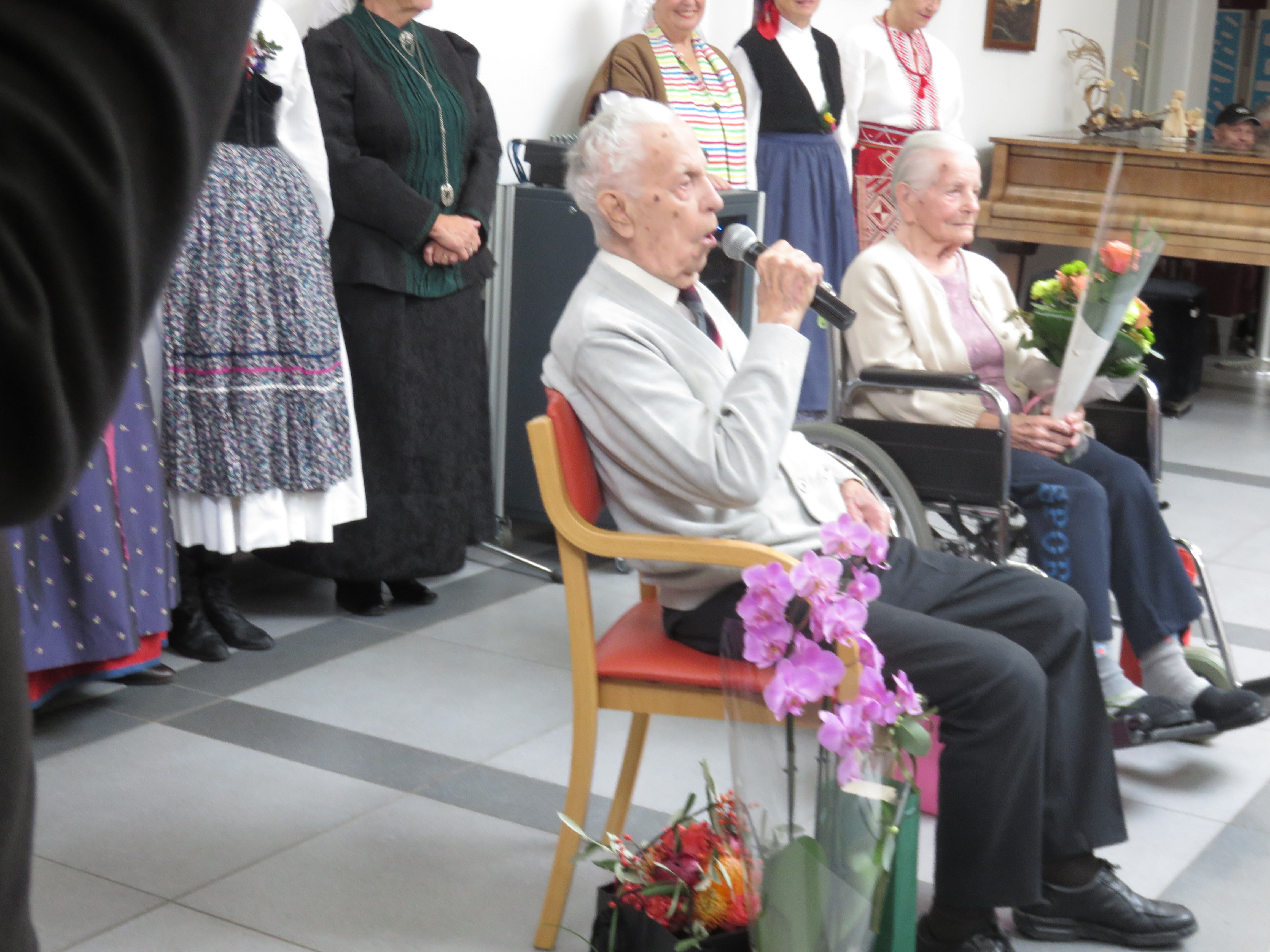 Petek, 15. 11. 2019, je bil pri nas slavnostni dan. Praznovali smo namreč dva visoka jubileja naših stanovalcev, sto let gospoda Rudija Mraza in gospe Štefanije Petan. Praznovanje je v avli popestrila pevska skupina Cintare iz Ljubljane, v jedilnici pa smo nadaljevali s slavnostnim kosilom. Slavljencema je zapel tudi naš pevski zbor Prijatelji.
