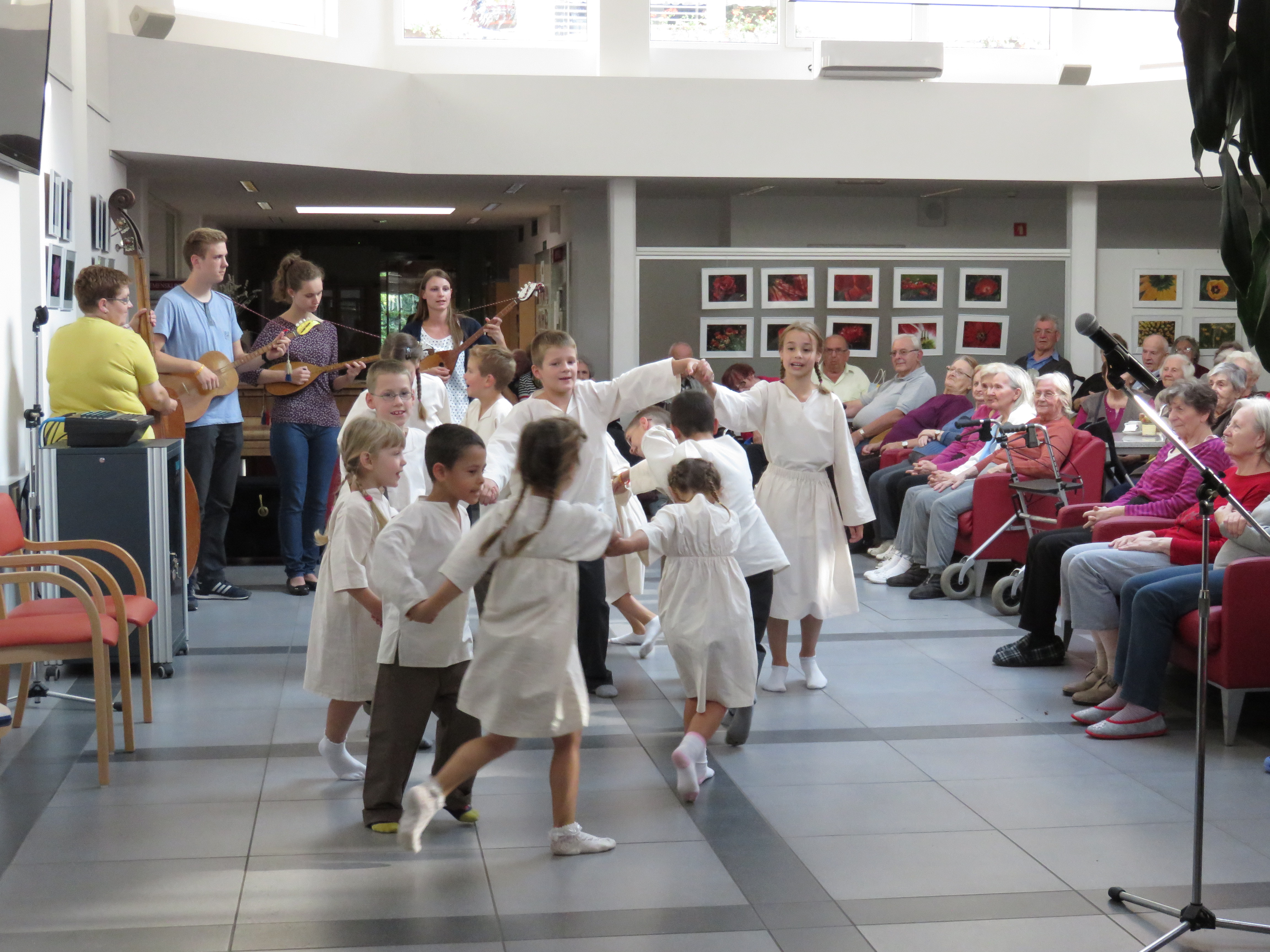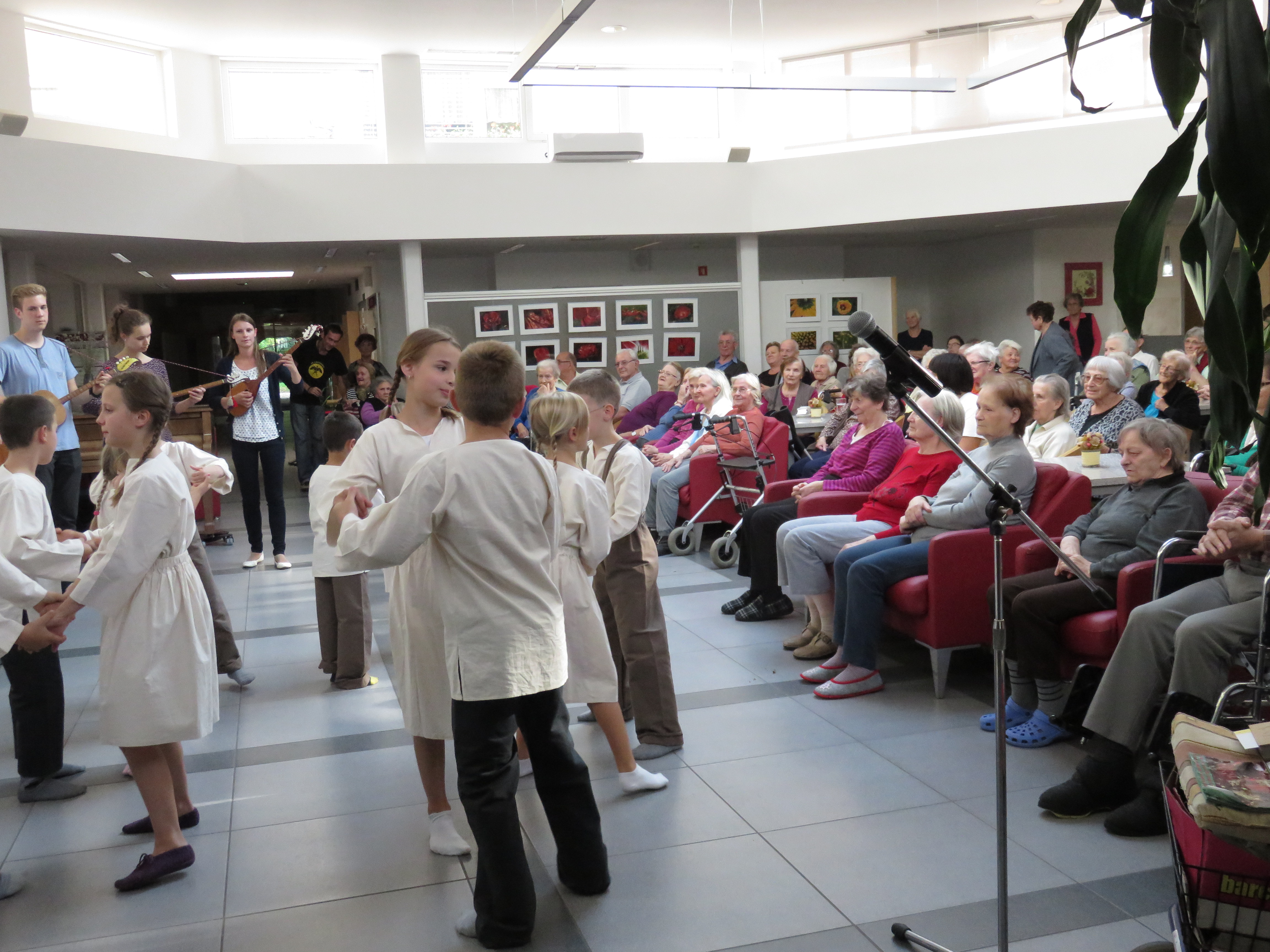 Mednarodni dan starejših smo proslavili z nastopom otroške folklorne skupine iz Starega trga ob Kolpi, ki jo vodi naša delovna terapevtka Nataša Mihelič. Prisrčnemu in razigranemu nastopu otrok, so se pridružili Sodevski tamburaši. Imeli smo priložnost slišati več generacij tamburašev, ki so iz svojih instrumentov izvabljale prijetne zvoke. Še posebno čast smo imeli, da smo lahko prisluhnili ustanovitelju Sodevskih tamburašev Jožefu Mihaliču in Petru Bariču, ki letos praznujeta sedemdesetletnico igranja na tamburice