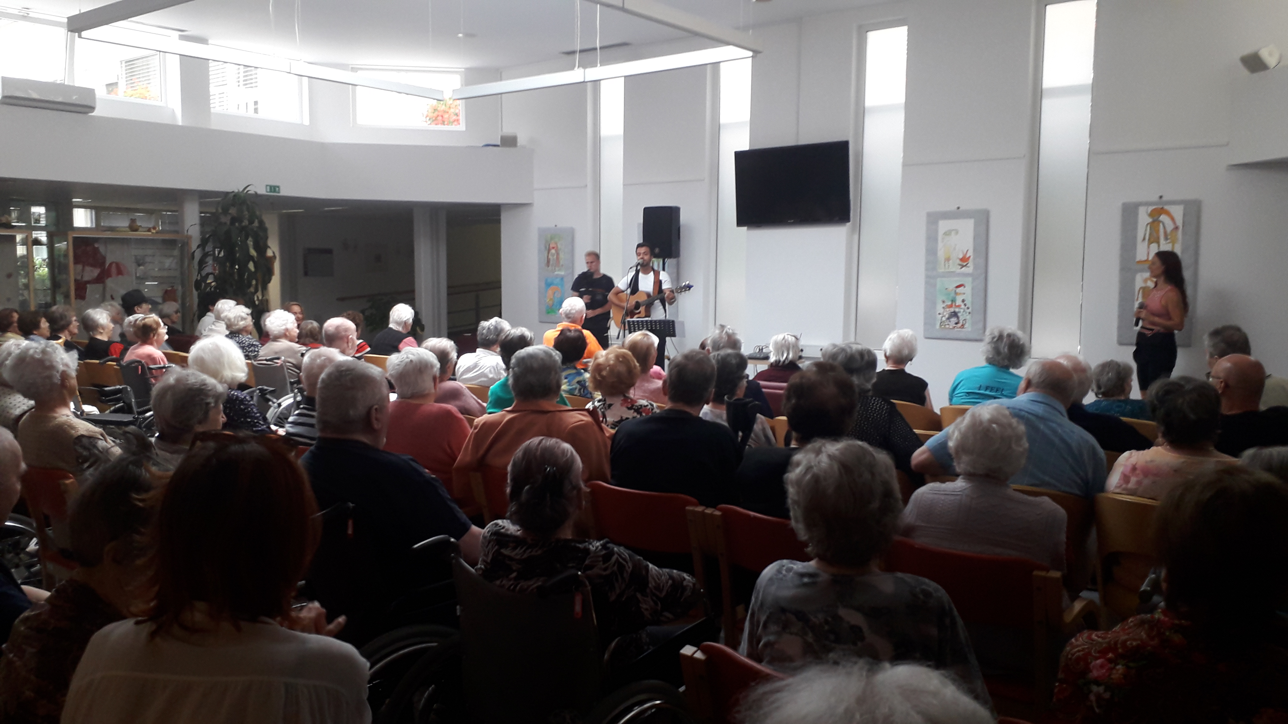 Ponedeljkovo dopoldne je popestril novomeščan, Gašper Rifelj. Z nastopom v avli je otvoril dobrodelno fundacijo “Sanje za vse”, ob tem pa je s svojim snemalcem posnel tudi podlago za videospot. Stanovalci so bili njegovega nastopa zelo veseli, kar je bilo razbrati z njihovih zadovoljnih obrazov. Prav radi so skupaj z njim tudi zapeli.