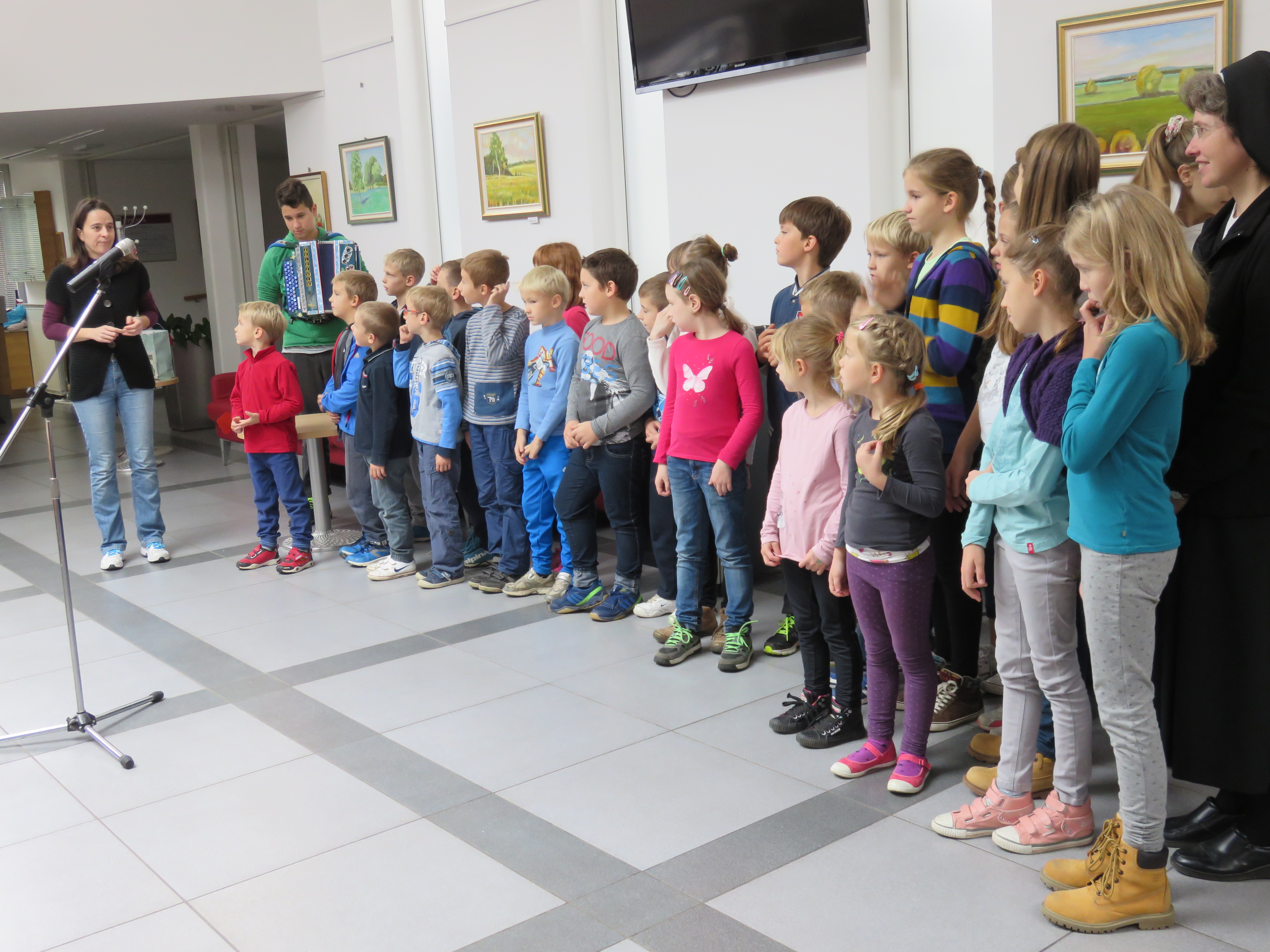 Tudi letos so nas obiskali otroci, ki aktivno preživljajo jesenske počitnice v župniji sv. Lenart v Novem mestu. V sredo 28.10.2015 so se nam v avli predstavili s pesmijo, ki je povezala poslušalce in nastopajoče. Na koncu so otroci stanovalcem razdelili izdelke, ki so jih izdelali sami.