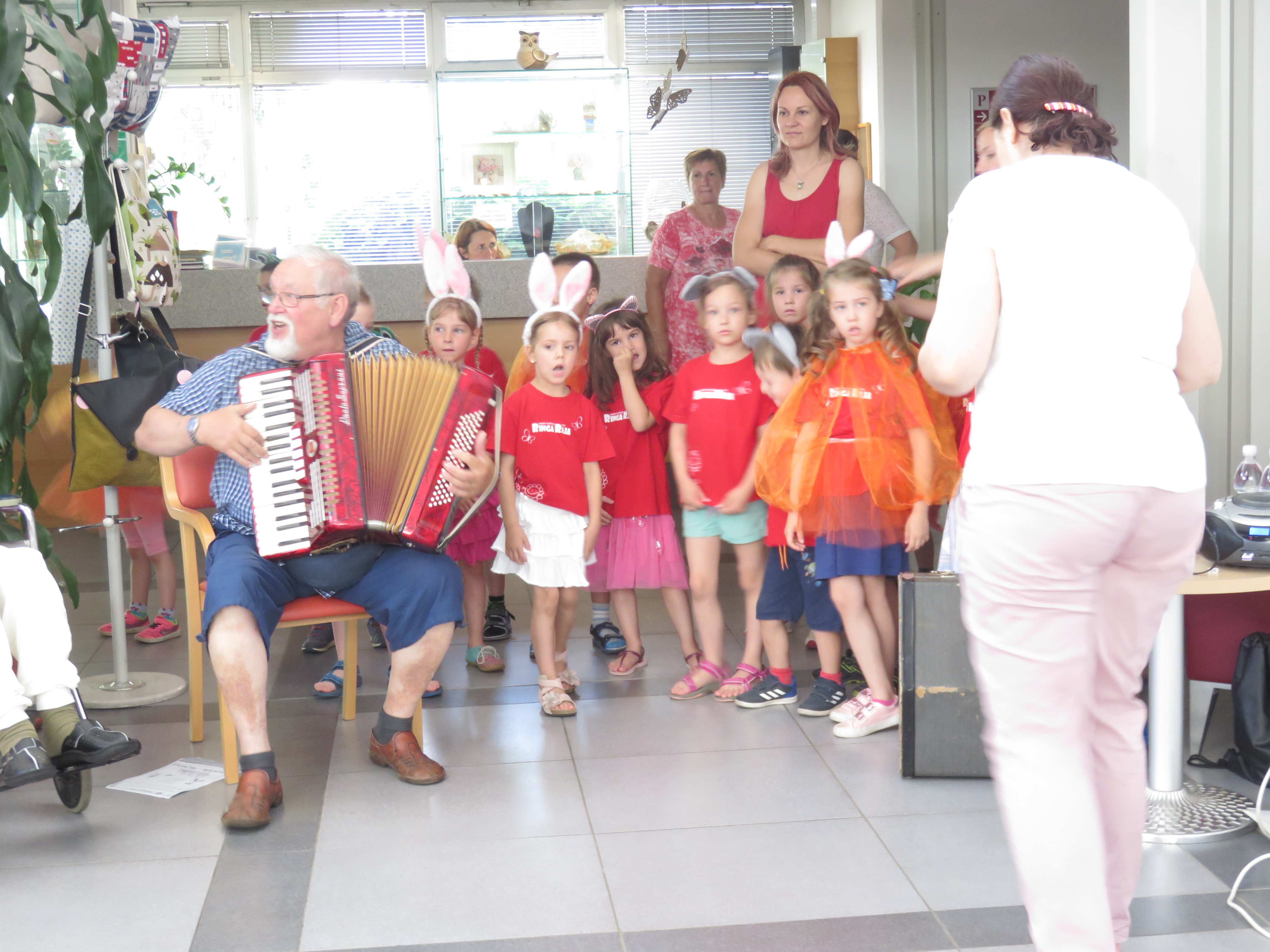 Veselo in poskočno je bilo pri nas v sredo, 12. junija. Obiskali no nas otroci iz glasbenega vrtca Ringa Raja. Z živahnim nastopom so razveselili naše stanovalce, ki jih vsakokrat prav nestrpno pričakujejo.