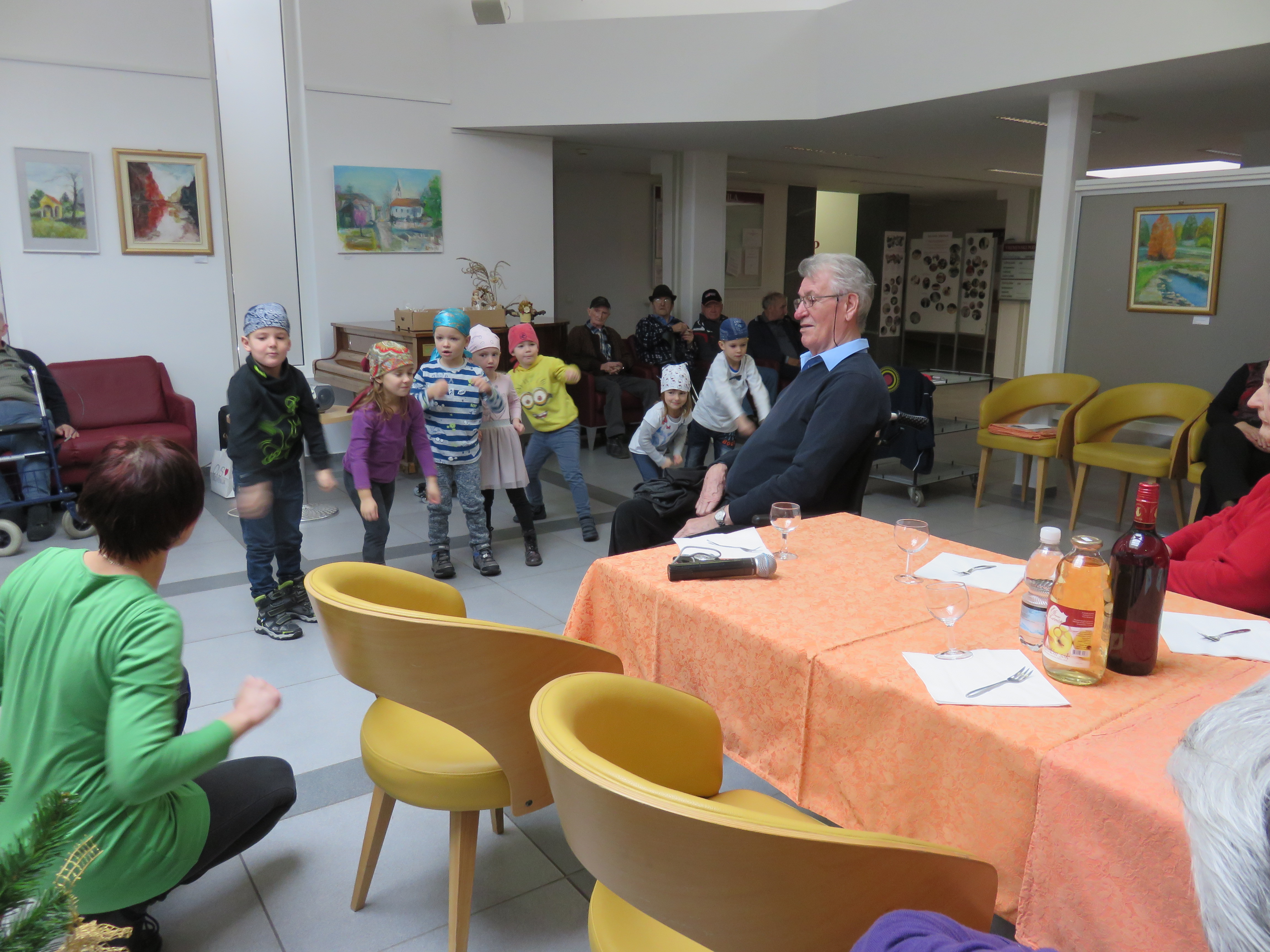 Praznovanje rojstnih dni stanovalcev, ki praznujejo v mesecu decembru so s svojim prisrčnim nastopom obogatili otroci iz vrtca Stopiče.