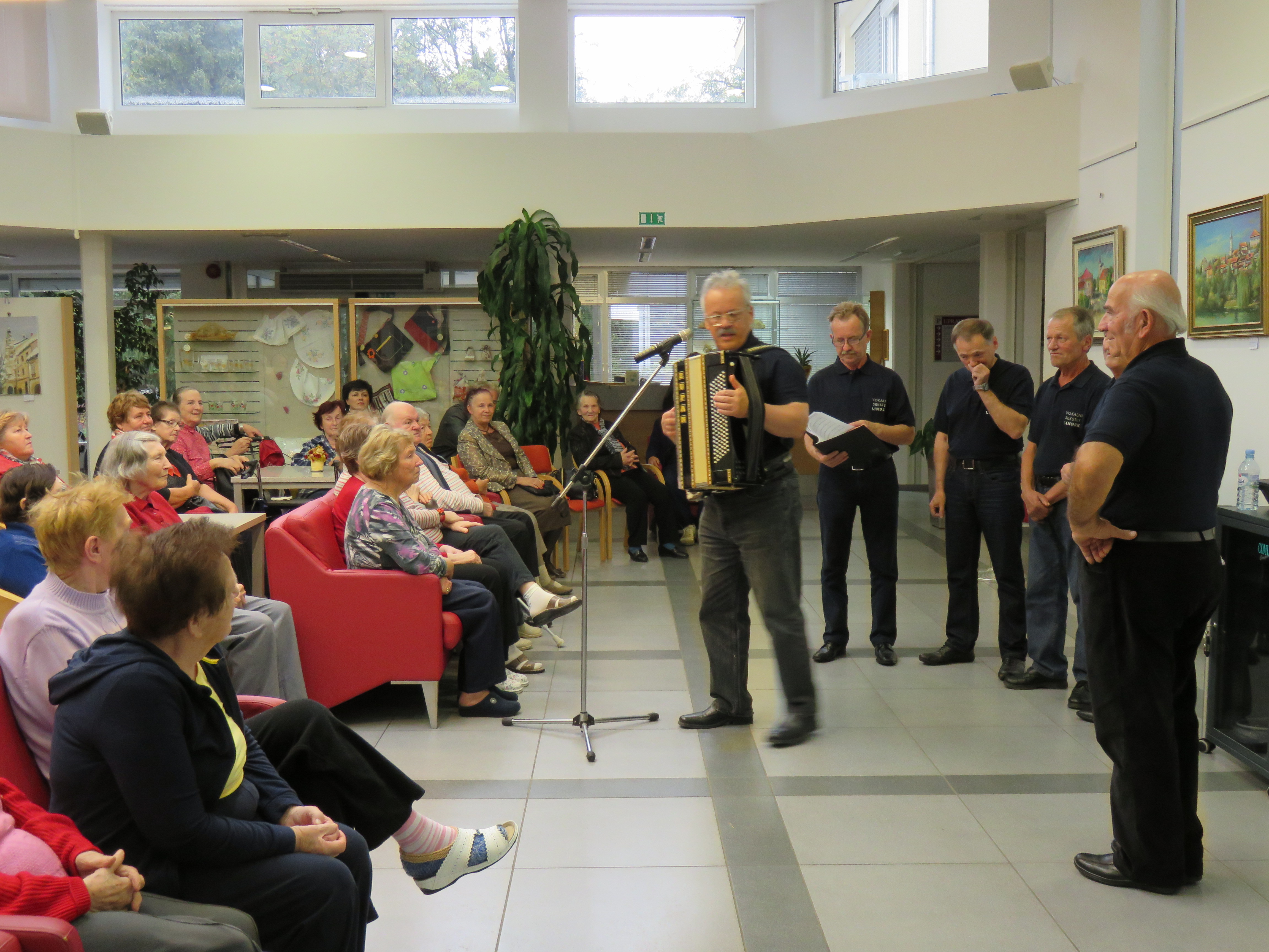 V turobnem deževnem popoldnevu srede, 7.10.2015, smo se vsi razveselili nastopa članov seksteta Lindek iz Frankolovega. Program je dodatno obogatil gospod Franc Žerdoner z odličnim igranjem na harmoniko in povezovanjem teksta. Stanovalci so z veseljem prisluhnili ubranemu petju pesmi, ki so jih ponesle v preteklost in obudile spomine.