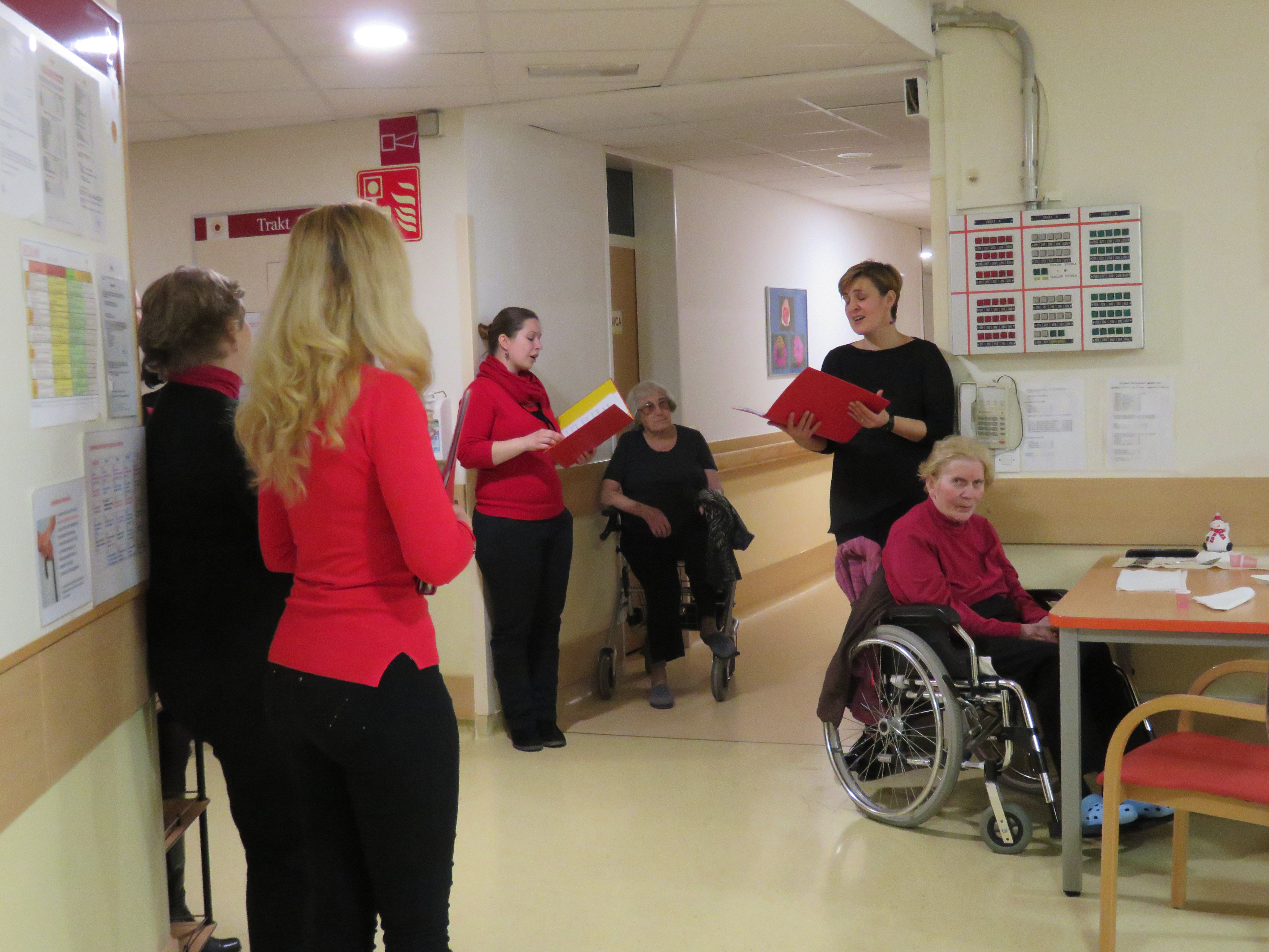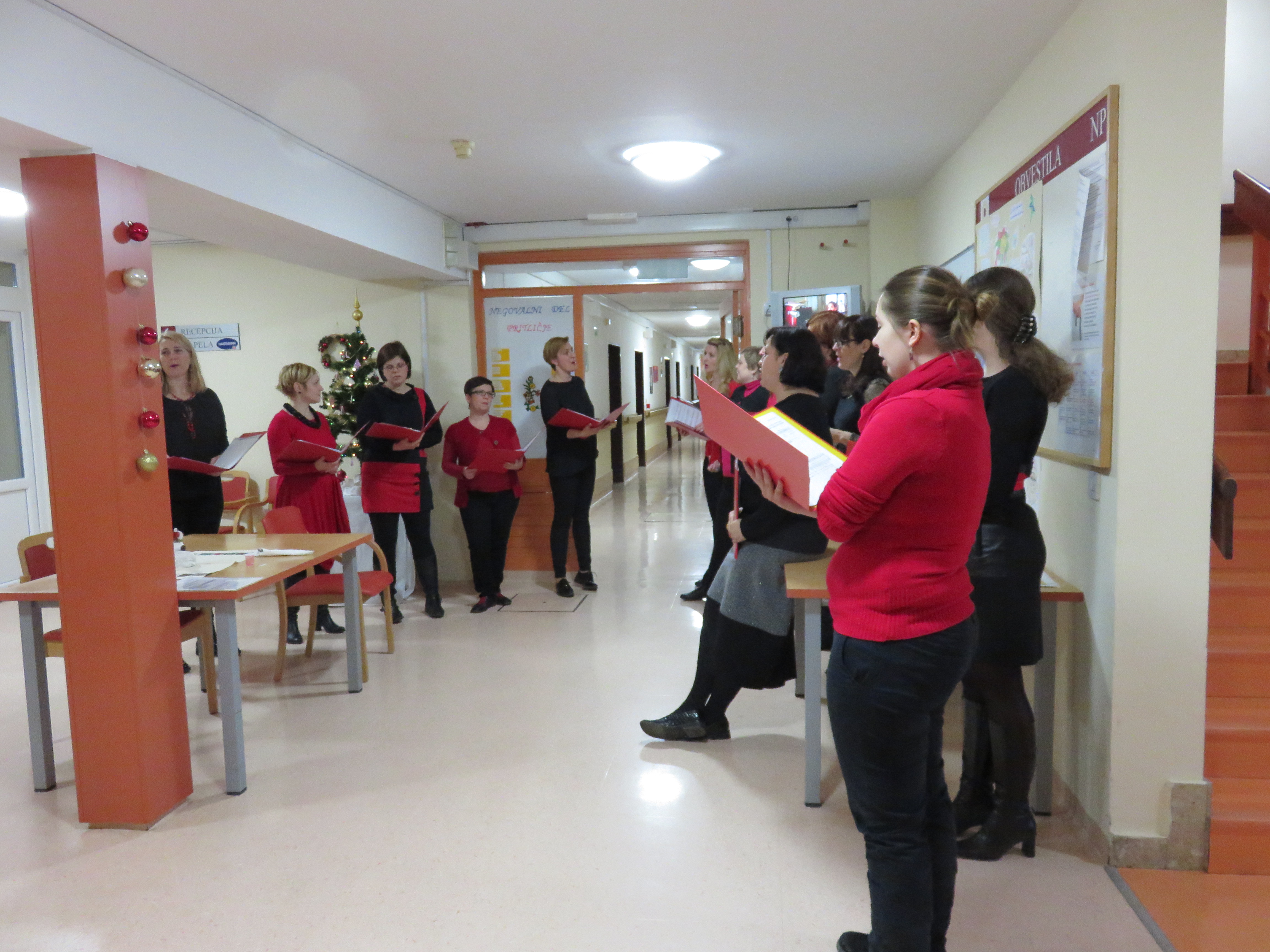 Stanovalce, ki se zaradi svoje bolezni niso mogli udeležiti novoletnih prireditev v avli našega doma, so s svojim zdaj že tradicionalnim prepevanjem po oddelkih, dnevnih prostorih in hodnikih razveselile članice Vokalne skupine Mezzo. Ob poslušanju, se je marsikateremu stanovalcu utrnila solza sreče.