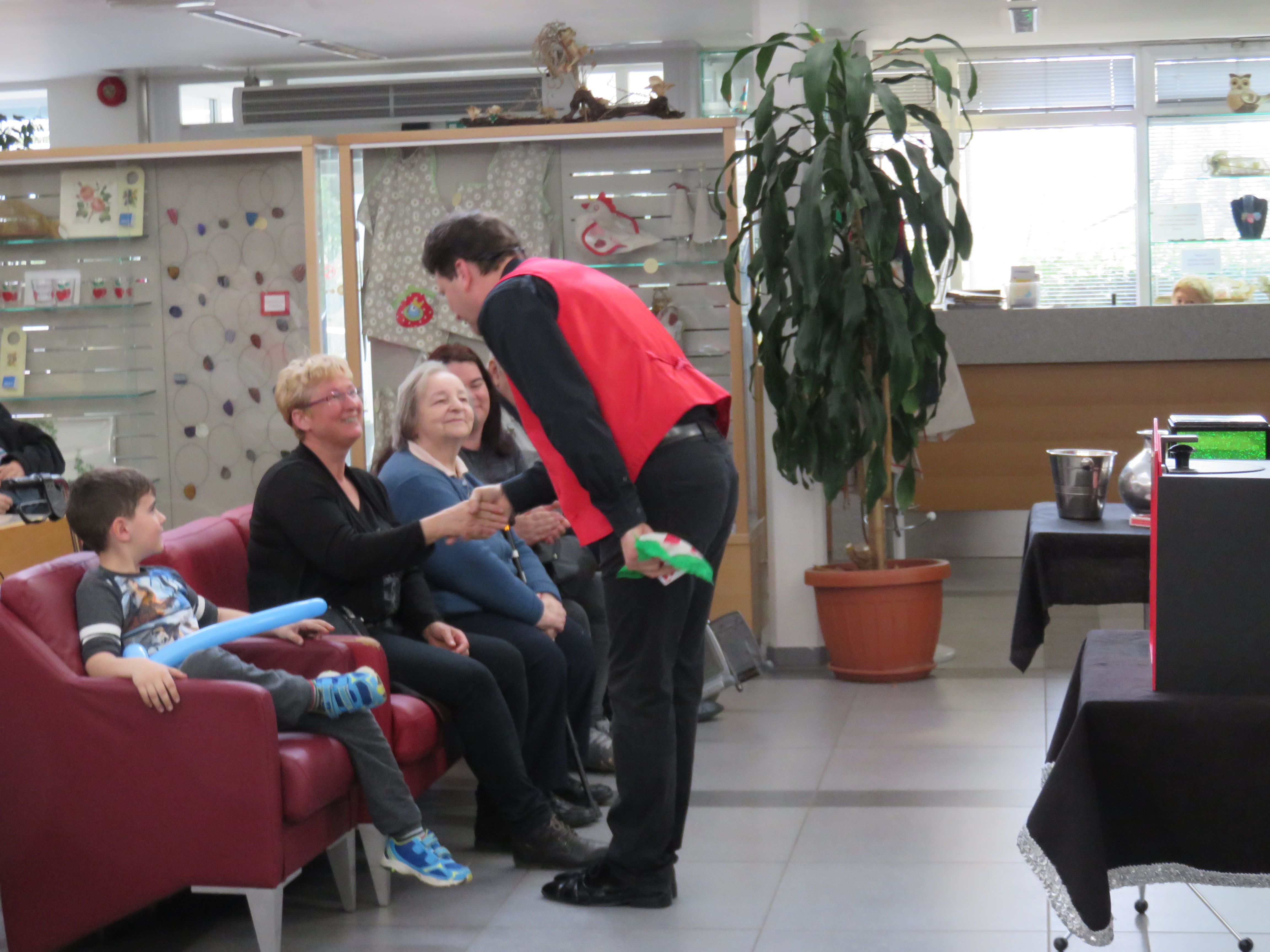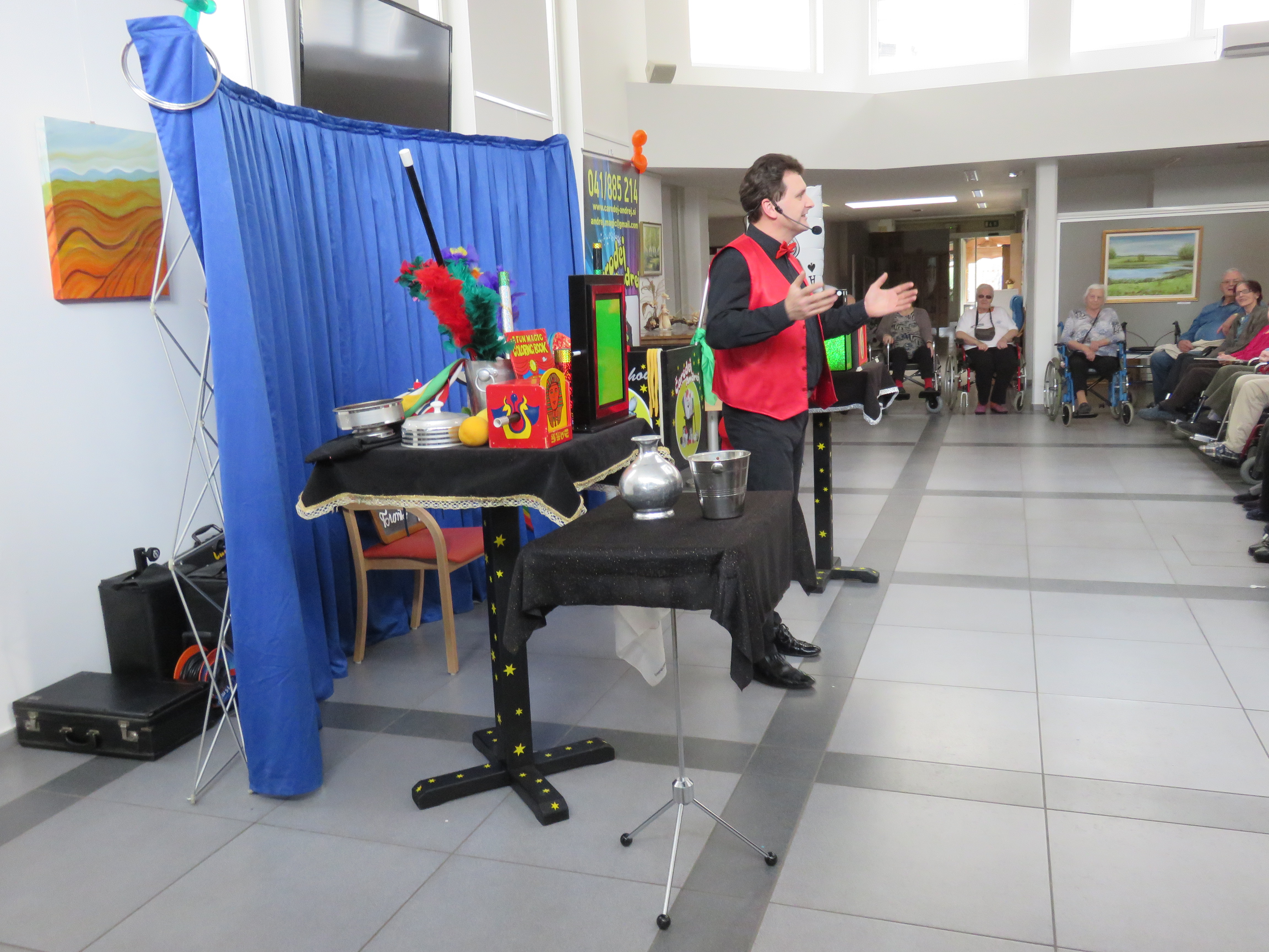 V četrtek 23.3 2017 je bilo v naši avli izredno živahno, saj smo imeli prijetno medgeneracijsko srečanje. Po dveh letih nas je ponovno obiskal naš stari znanec čarodej Andrej, ki je s svojimi čarovniškimi spretnostmi razveseljeval starejšo in mlajšo generacijo. Na srečanje so bili poleg stanovalcev vabljeni tudi njihovi svojci, vnuki in pravnuki, ter delavci in njihovi otroci. Čarovnika Andreja smo lahko spoznali tudi kot glasbenika, saj nas je razveselil z igranjem na trobento.