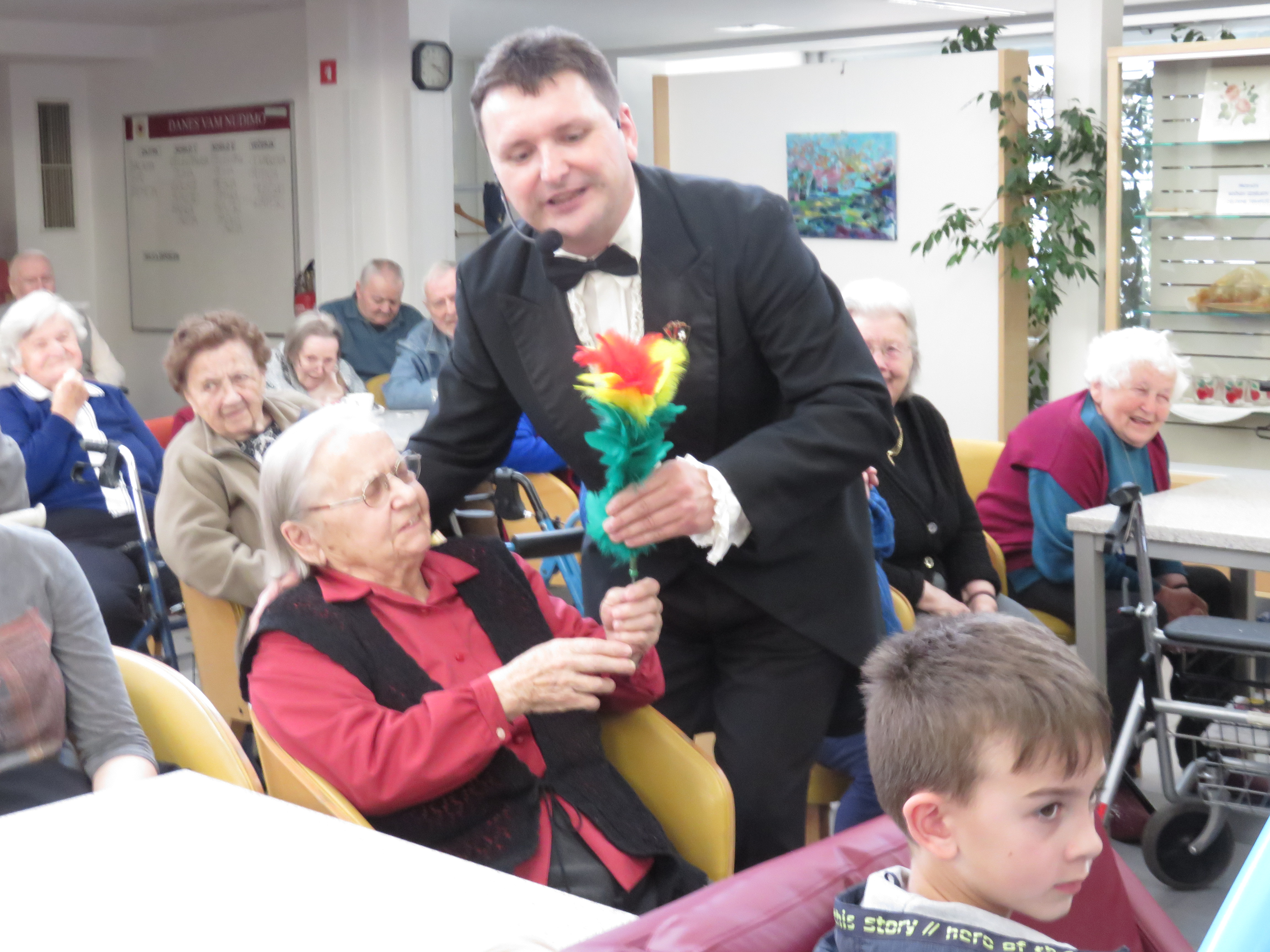 S svojimi čarovniškimi triki, ročnimi spretnostmi in igranjem na trobento nas je v torek, 16.04.2019 razveseljeval čarodej Andrej. Stanovalci so z zanimanjem spremljali dogajanje na odru in se ob ogledu zelo zabavali.
