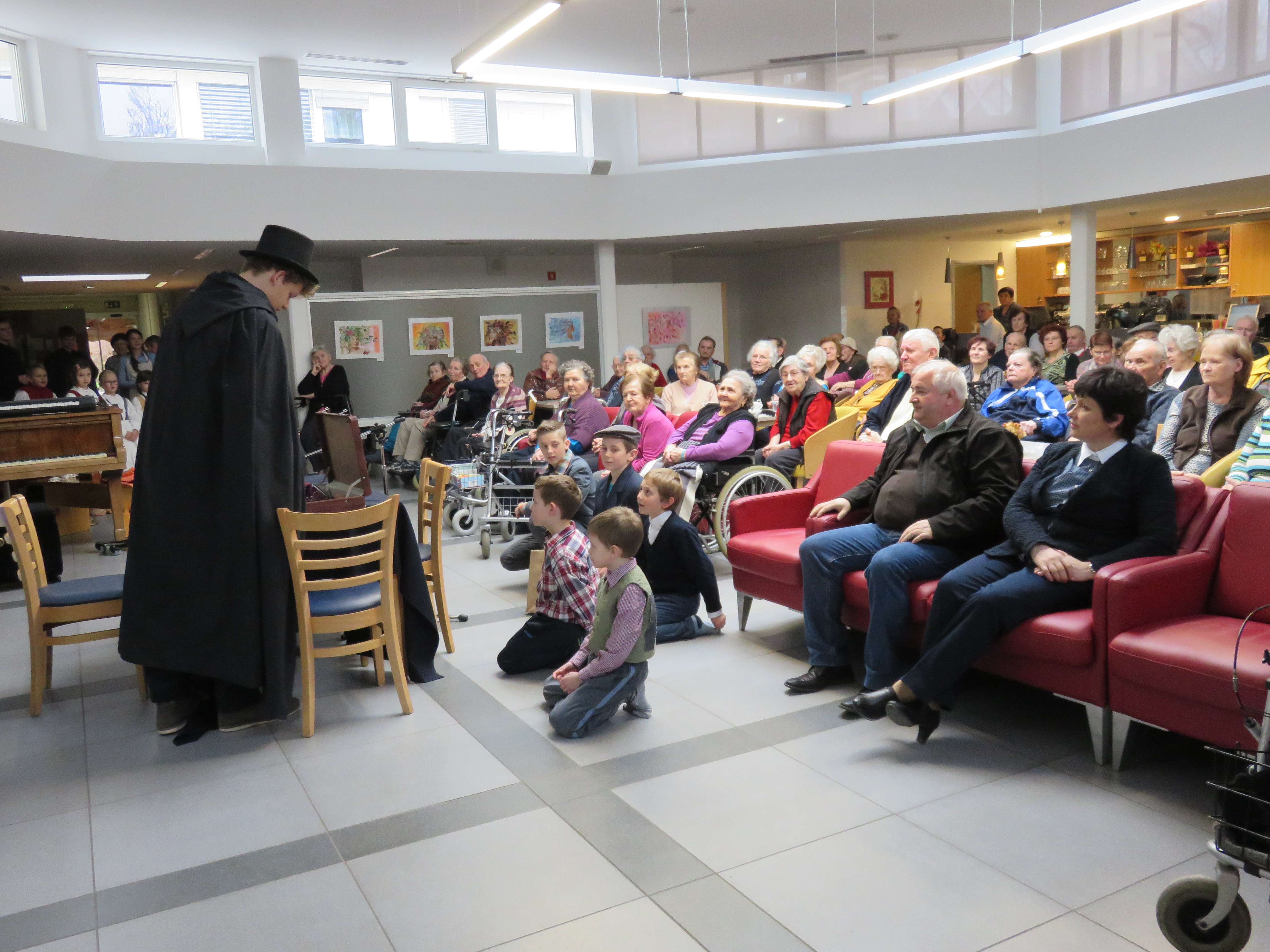 Vsako leto nas v mesecu marcu, pred velikonočnimi prazniki obiščejo člani Župnijske Karitas Škocjan, skupaj z županom njihove občine gospodom Jožetom Kaplerjem. Pripravili so nam bogat kulturni program z igro, plesom in petjem. Še posebej so se nastopa razveselili stanovalci iz občine Škocjan, katere so gostje obdarili s simboličnimi darili.