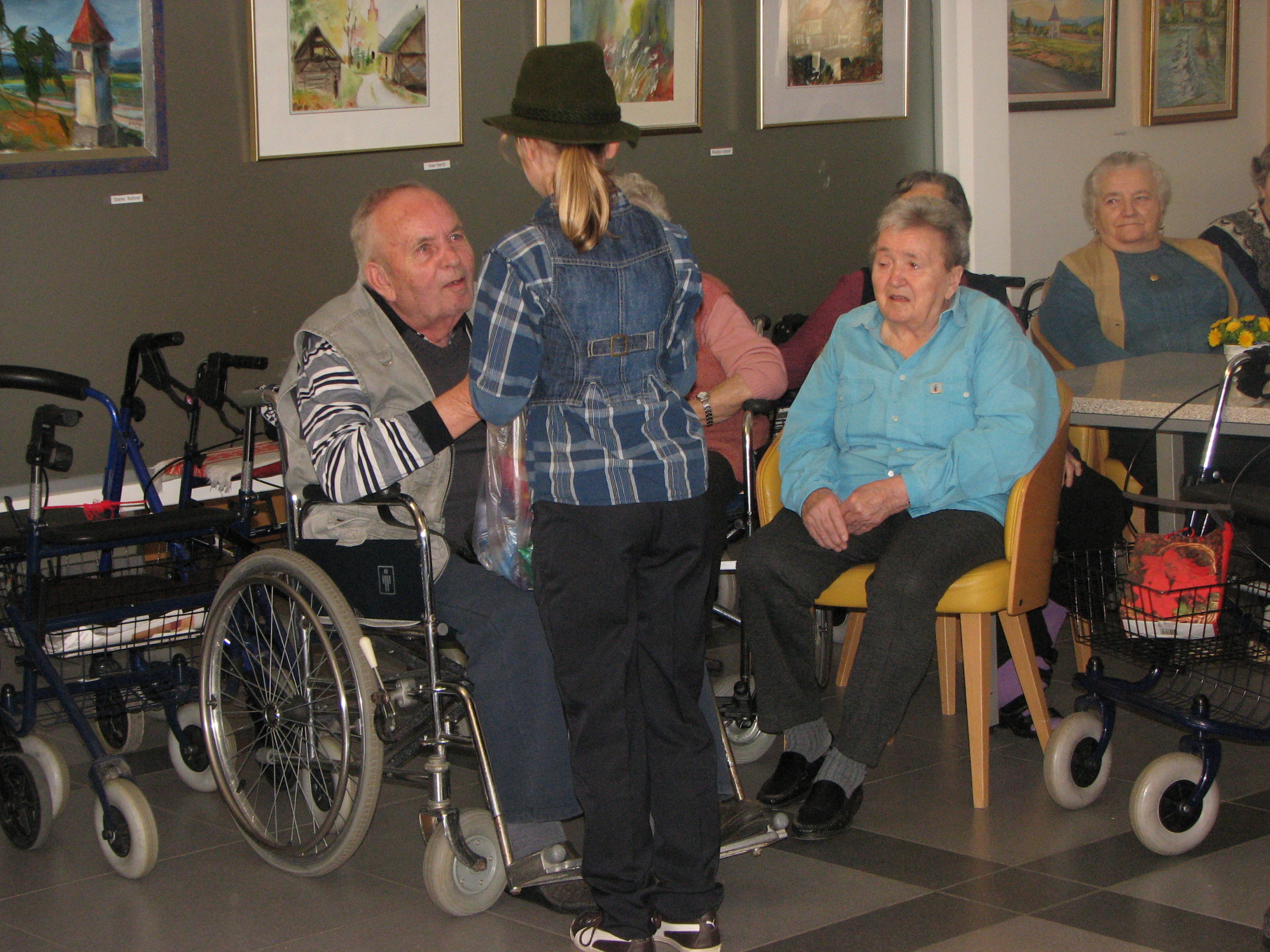 Tudi letos, kot že nekaj let zapored, so nas obiskali člani Župnijske Karitas iz Škocjana. V četrtek, 20.3.2014, nam je skupina nadobudnih otrok odigrala zgodbo o misijonarju in raziskovalcu dr.Ignaciju Knobleharju, ki je bil njihov rojak. Po predstavi nas je v svet plesa popeljala njihova folklorna skupina. Nastopa sta se udeležila tudi župan občine Škocjan gospod Jože Kapler, ter župnik gospod Janez Cerar. Posebno pozornost so gostje in nastopajoči namenili najstarejši občanki njihove občine Angelci Debevc, ki je hkrati tudi najstarejša stanovalka našega Doma. Decembra letos bo namreč dopolnila 105 let. Na koncu so obdarili vse krajane svoje občine, z drobnimi darili pa tudi vse ostale udeležence na prireditvi.