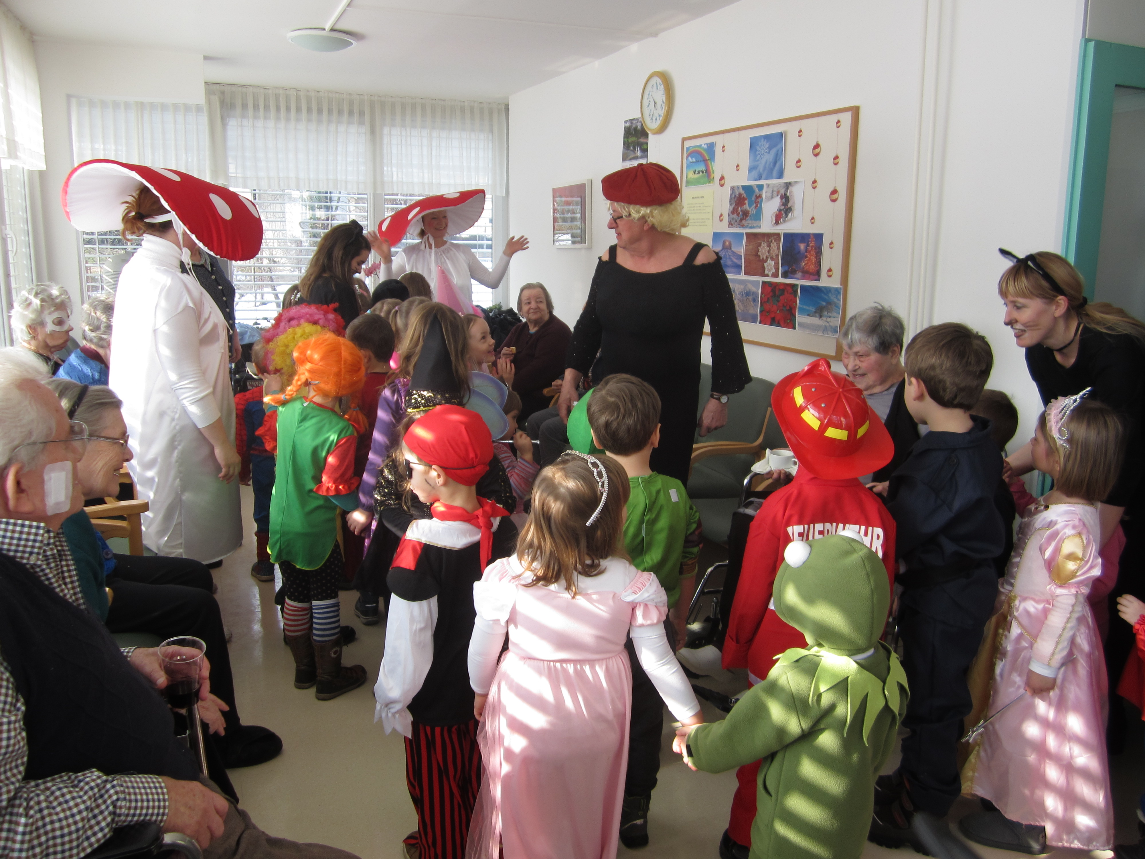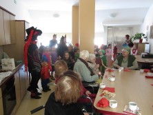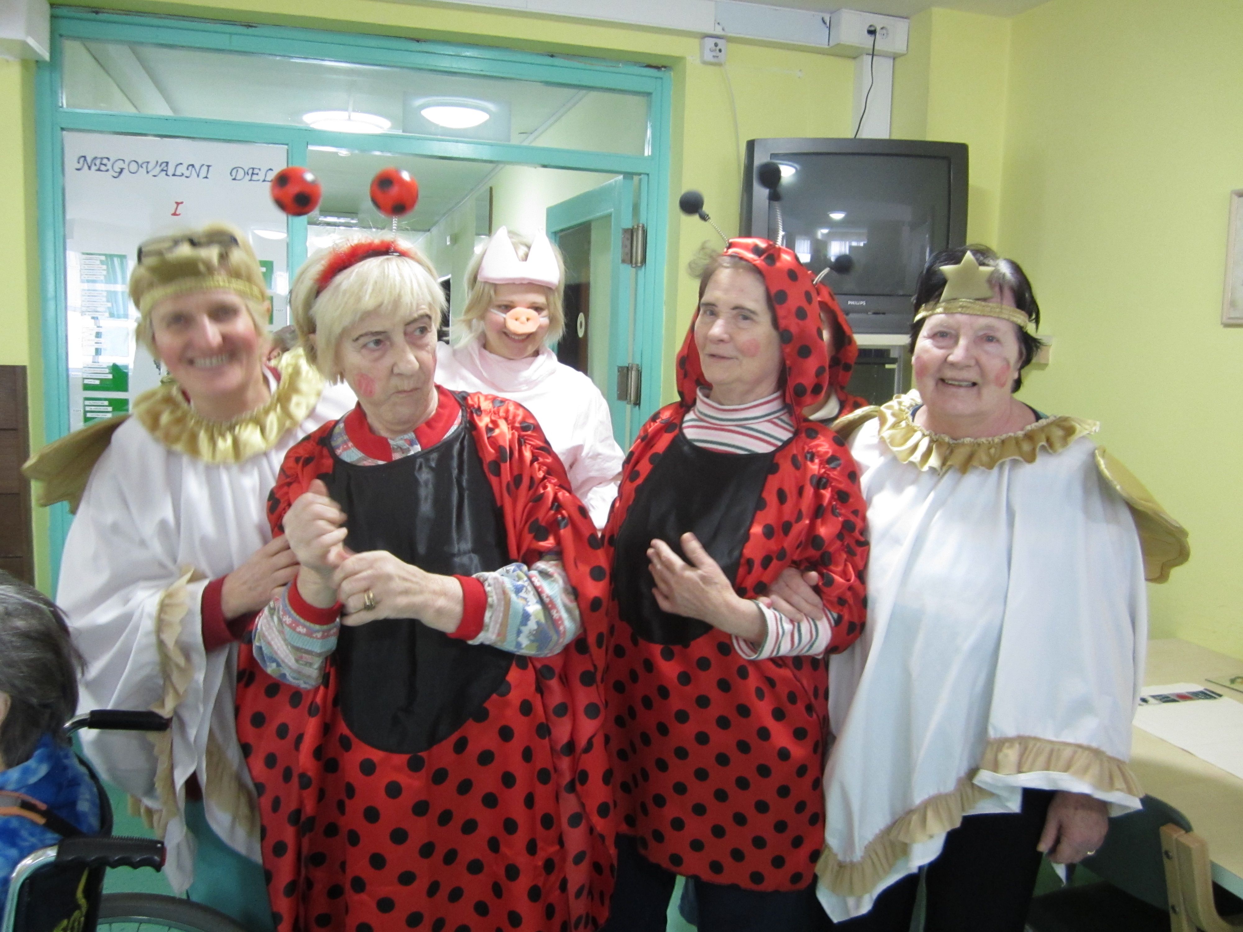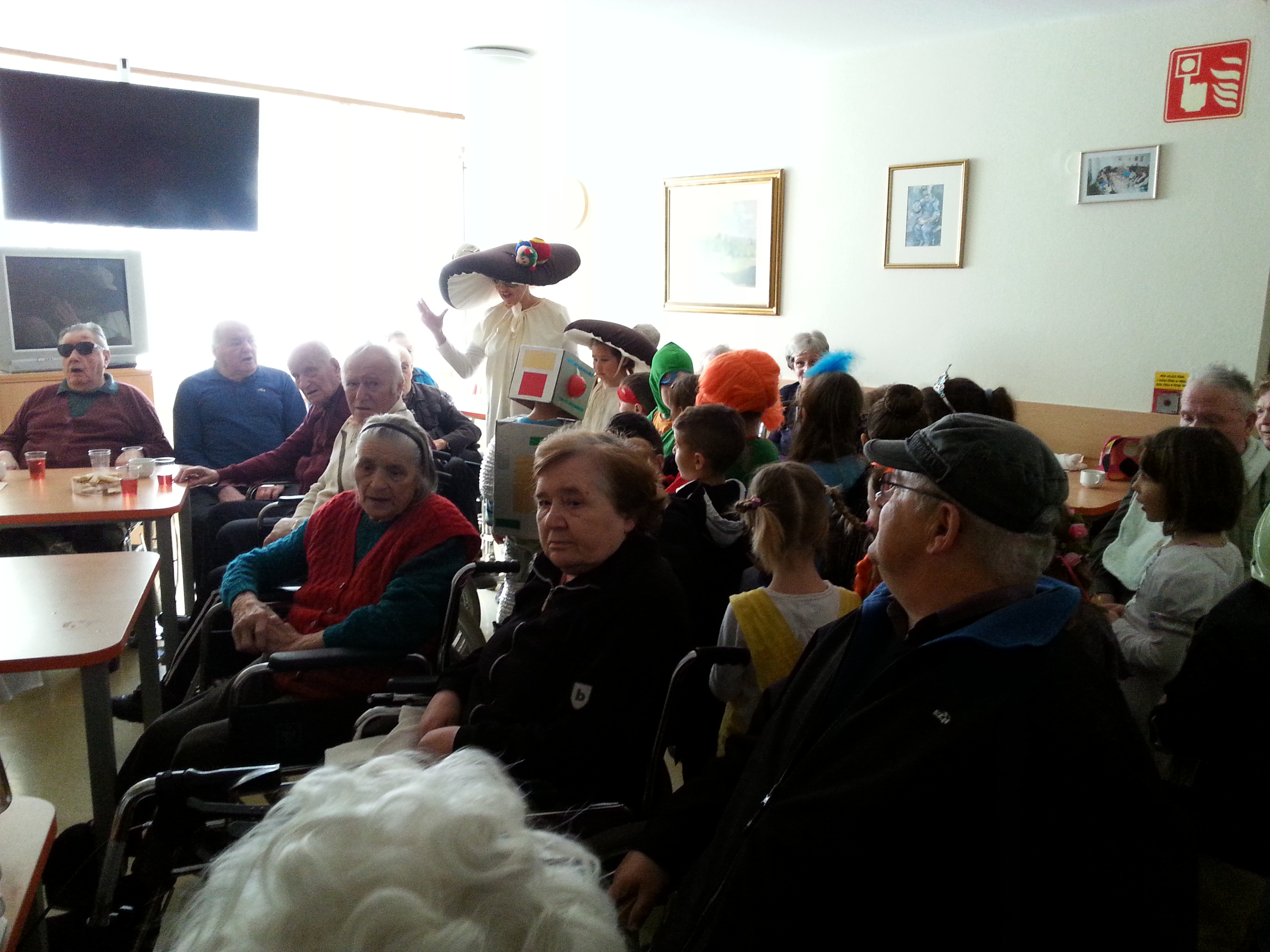 Na pustni torek so nas s svojim obiskom razveselile maškare iz Vrtca Pedenjped, enote Sapramiška in iz Vrtca Ciciban, enote Kekec. Sprehodile so se skozi Dom in obiskale stanovalce, ki se udeležujejo skupin za samopomoč. V veselem pustnem razpoloženju in kostumih, se jim je pridružilo tudi nekaj naših stanovalcev.