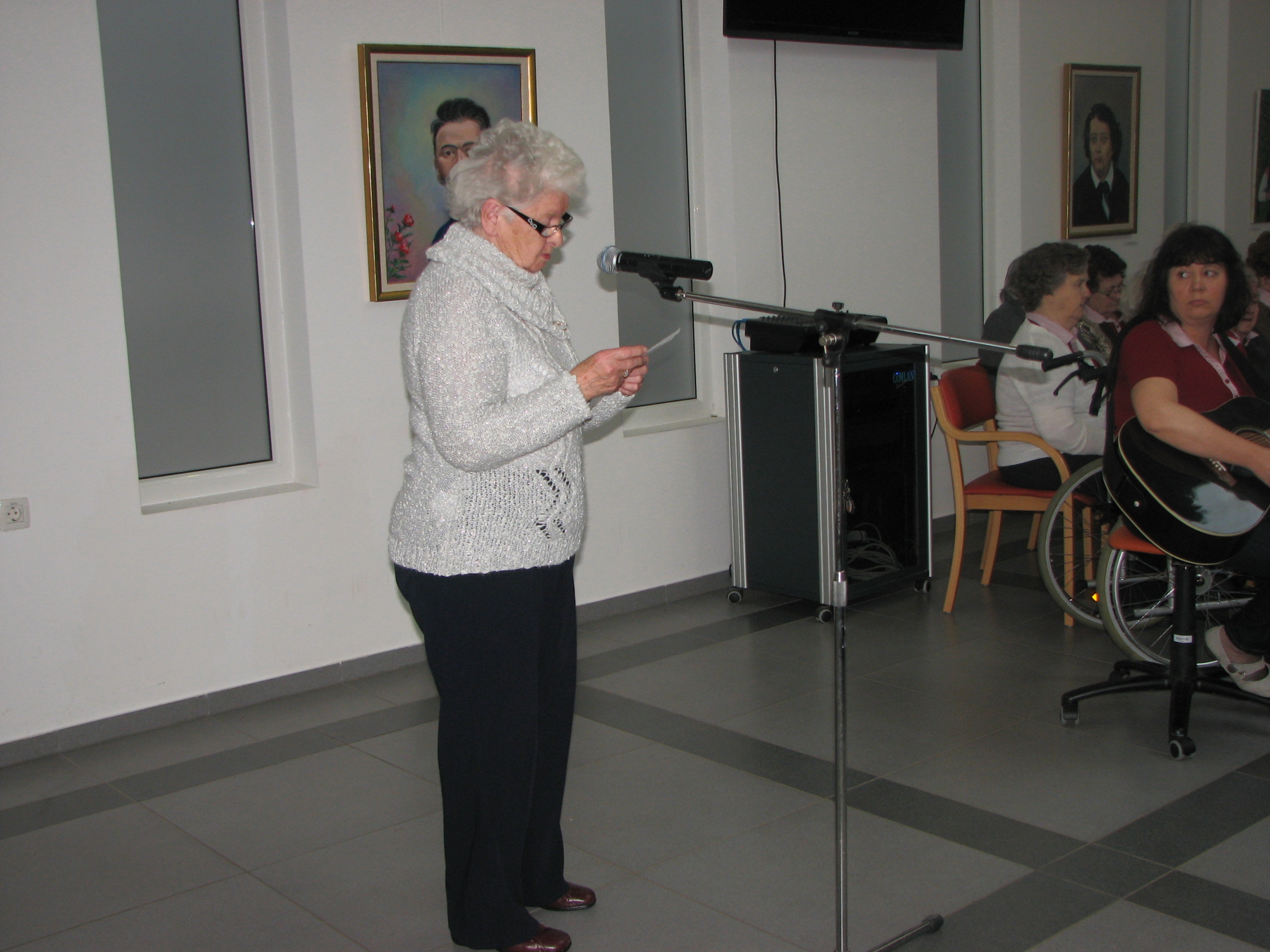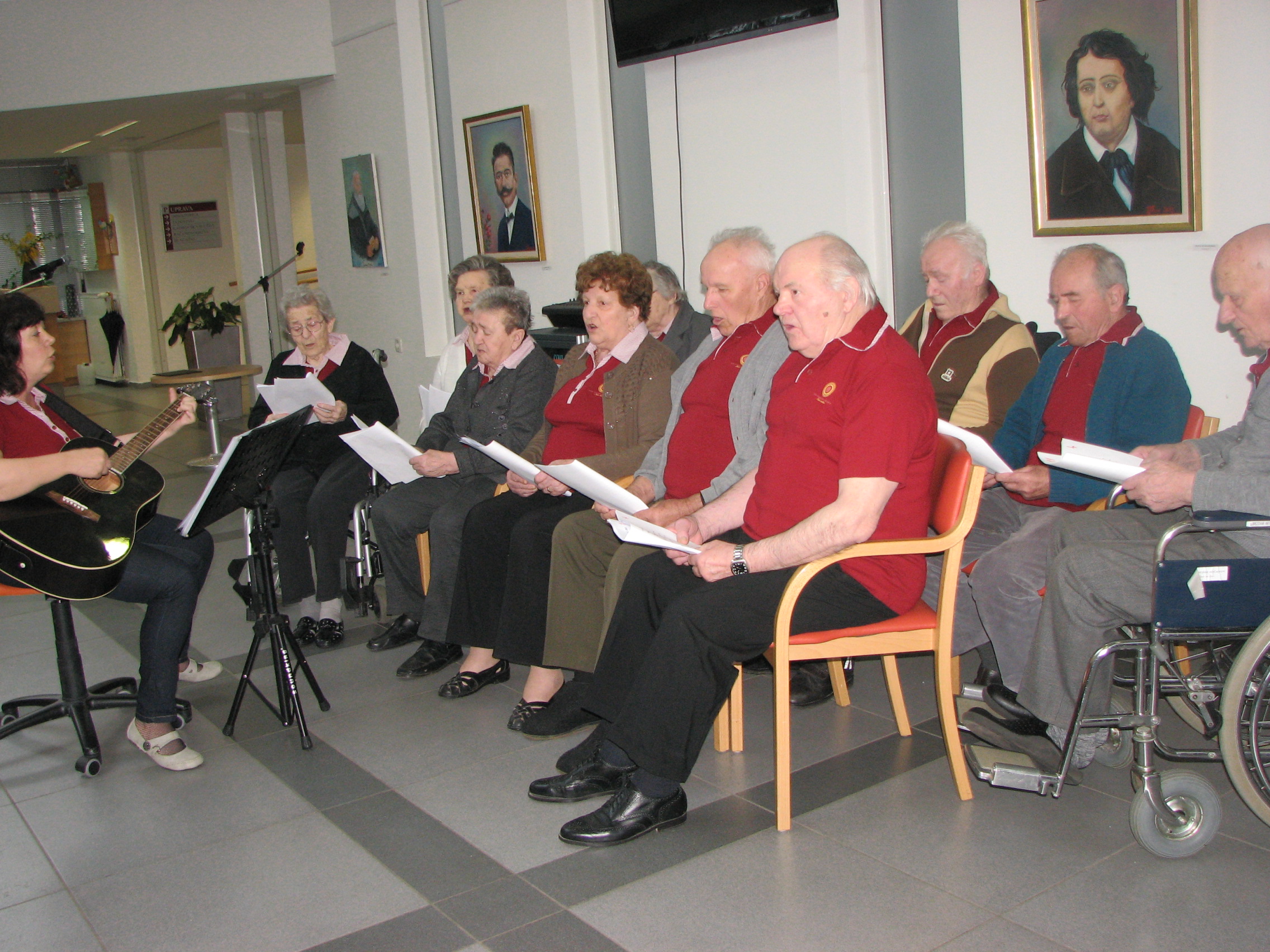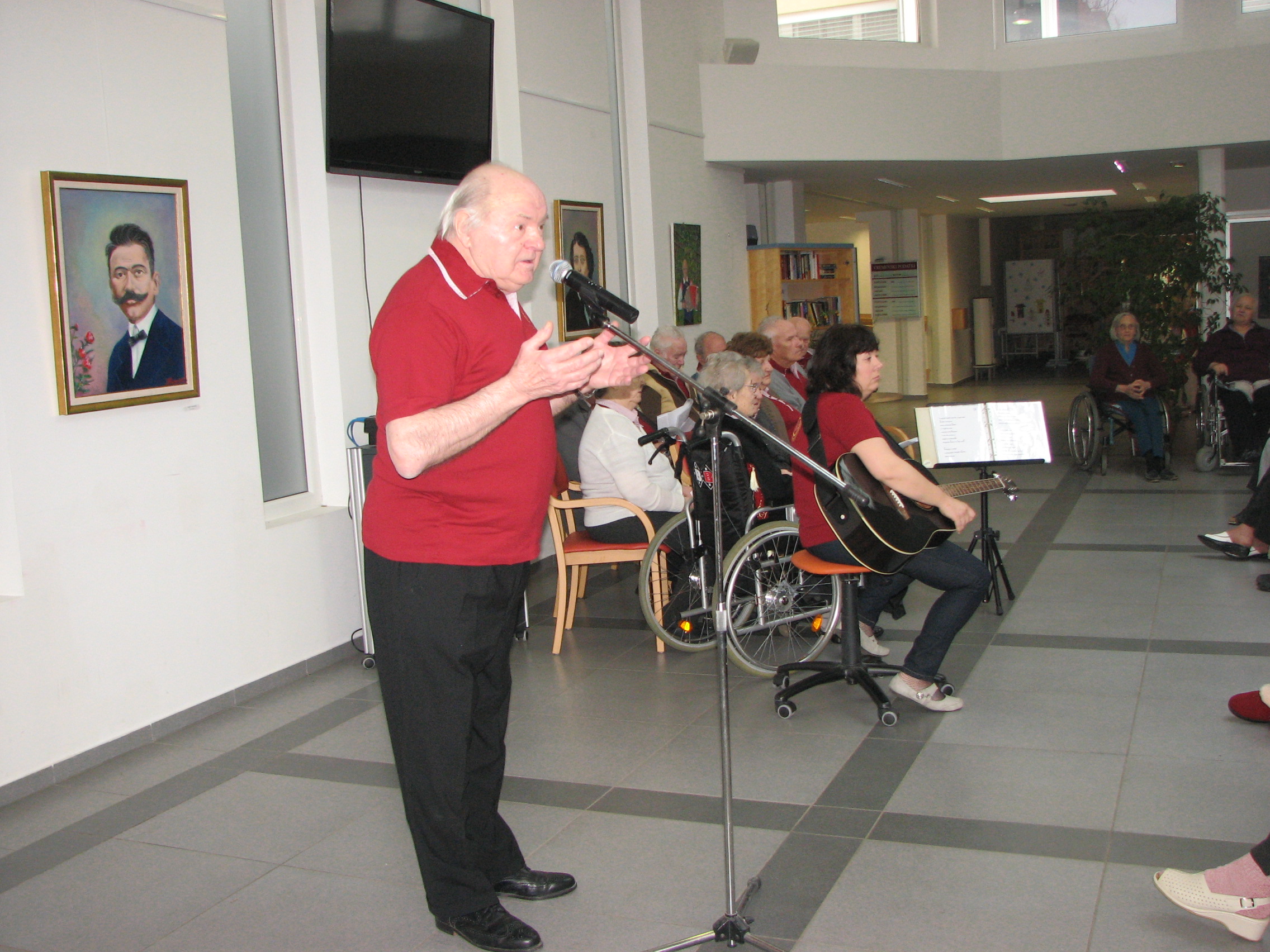 Gospod Vladimir Frece se s slikanjem ukvarja že skoraj celo svoje življenje. S prihodom v Dom je želel s to aktivnostjo nadaljevati. Ob podpori vodstva Doma in pomoči delovne terapevtke, si je na terasi negovalnega dela uredil pravi mali slikarski atelje, v katerem ustvarja. V slikah na platnu lahko občudujemo portrete znanih Slovencev, ženske figure, cvetje, pokrajino… Kot sam pravi, mu nanašanje barv na platno pomeni imeniten hobi in sprostitev. V četrtek, 27.3.2014 je na otvoritvi razstave zapel pevski zbor stanovalcev z imenom Prijatelji, katerega član je tudi gospod Frece