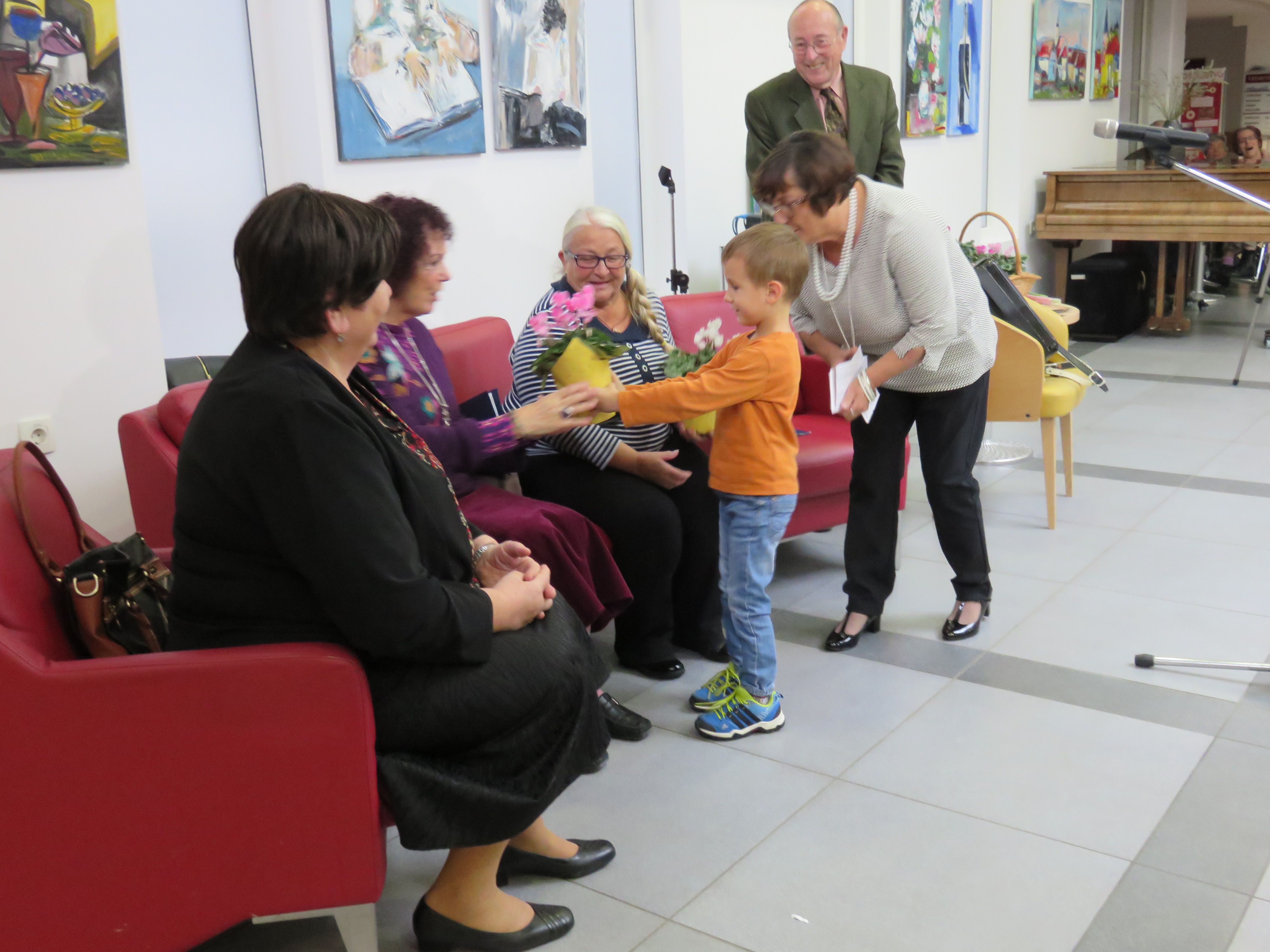 V ponedeljek 17.10. 2016, smo v avli našega doma odprli likovno razstavo amaterske slikarke Metode Turk. S svojimi slikami živahnih in toplih barv je v našo avlo vnesla veliko pozitivne energije. Za spremljajoči program je poskrbela Tereza Balažič z literati Društva upokojencev Novo mesto. S petjem pa nas je razveselila Marija Jerele.