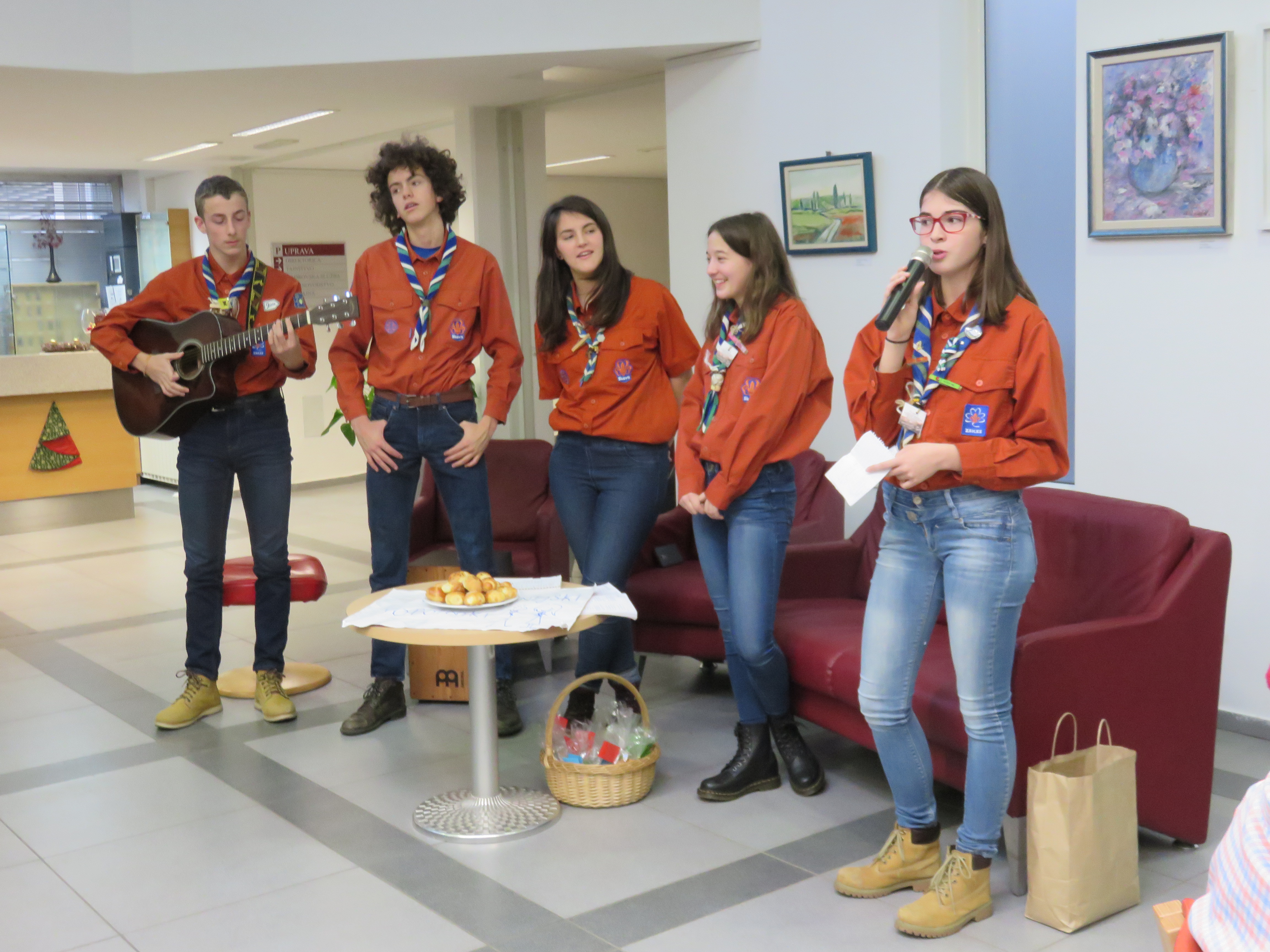Skupaj z mladimi skavti iz Šentjerneja in pevskim zborom naših stanovalcev Prijatelji, smo v soboto, 23.12.2017, v avli prepevali božične pesmi.