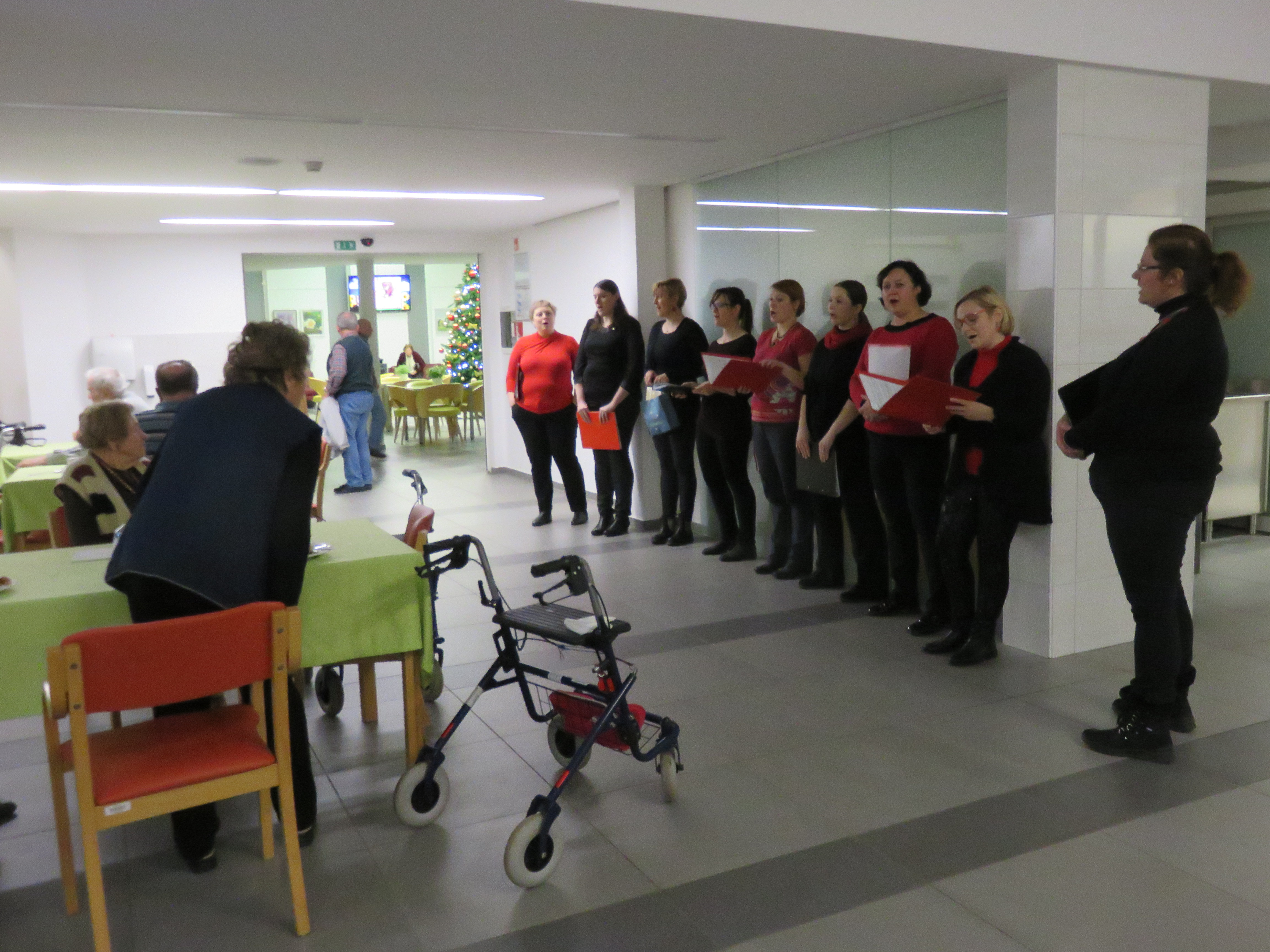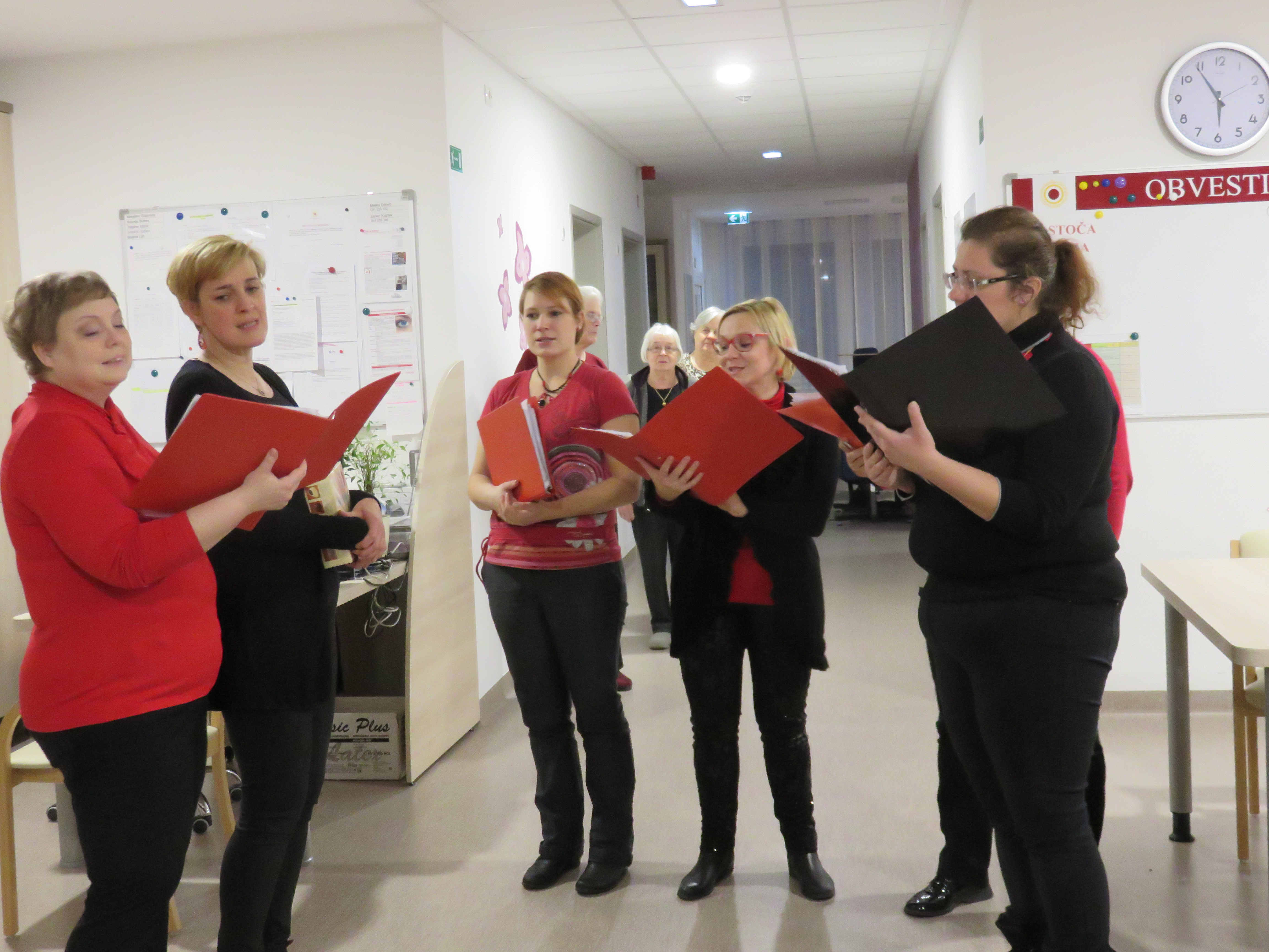Članice Vokalne skupine Mezzo, so s prepevanjem božičnih pesmi vnesle delček prazničnega vzdušja k prav vsakemu stanovalcu v našem domu, saj je njihovo petje po celem Domu dosegel prav vsako sobo.