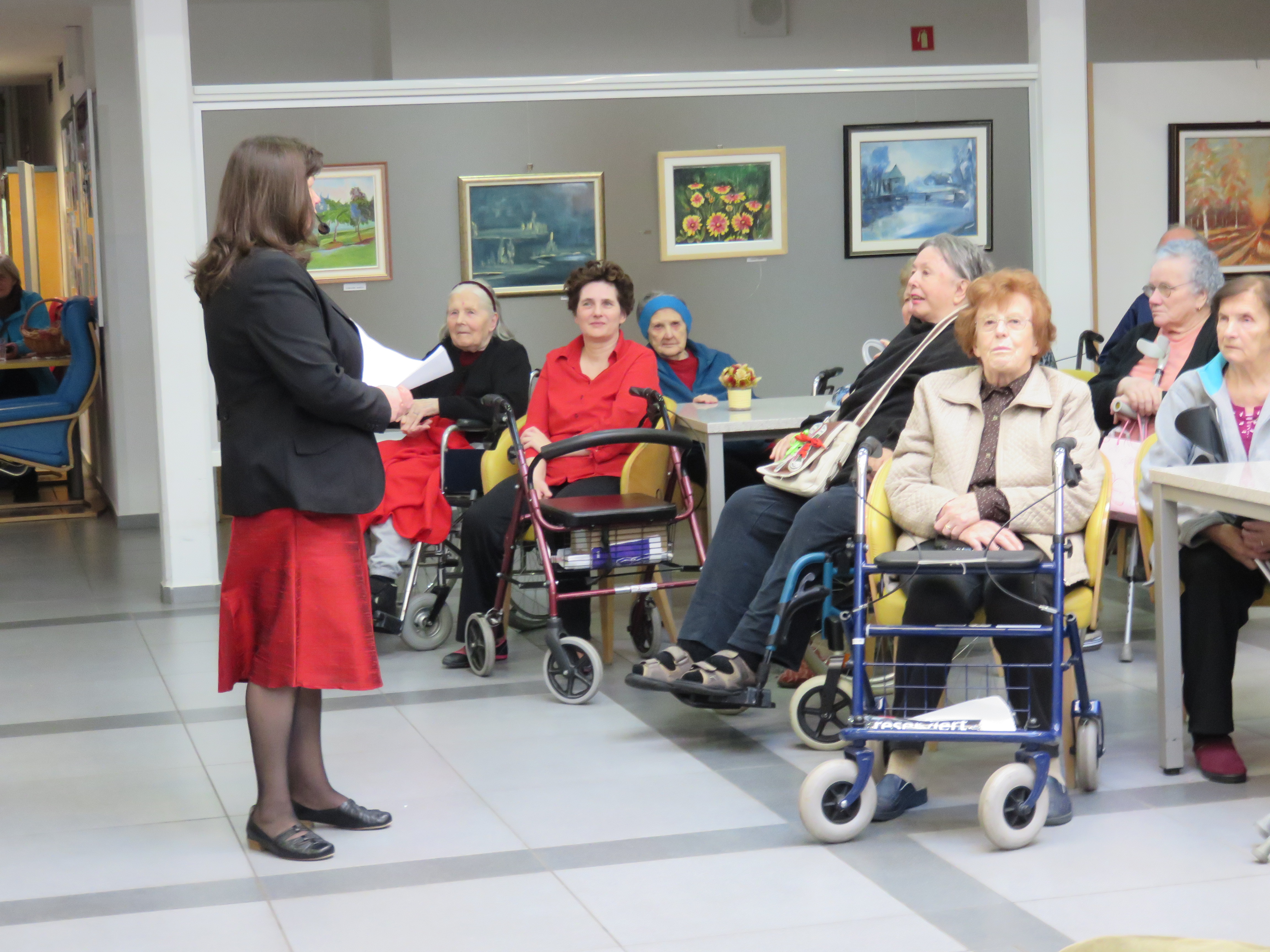 V četrtek, 5.11.2015 smo imeli primorski dan. Pričeli smo z zajtrkom, ko smo bili postreženi s pršutom in melono in nadaljevali s kosilom in večerjo, ko je iz kuhinje zadišalo po morskih dobrotah. Na prijeten način nam je lepote Primorske v sliki in besedi predstavila naša fizioterapevtka Beba Srebrnjak. Predavanje smo še dodatno obogatili z recitacijami pesmi Iztoka Mlakarja, Srečka Kosovela, Toneta Pavčka in Franceta Prešerna v izvedbi Aleša Kirna in Mateje Zelič. Poizkusili smo teran in malvazijo, ter se posladkali s fritolami.