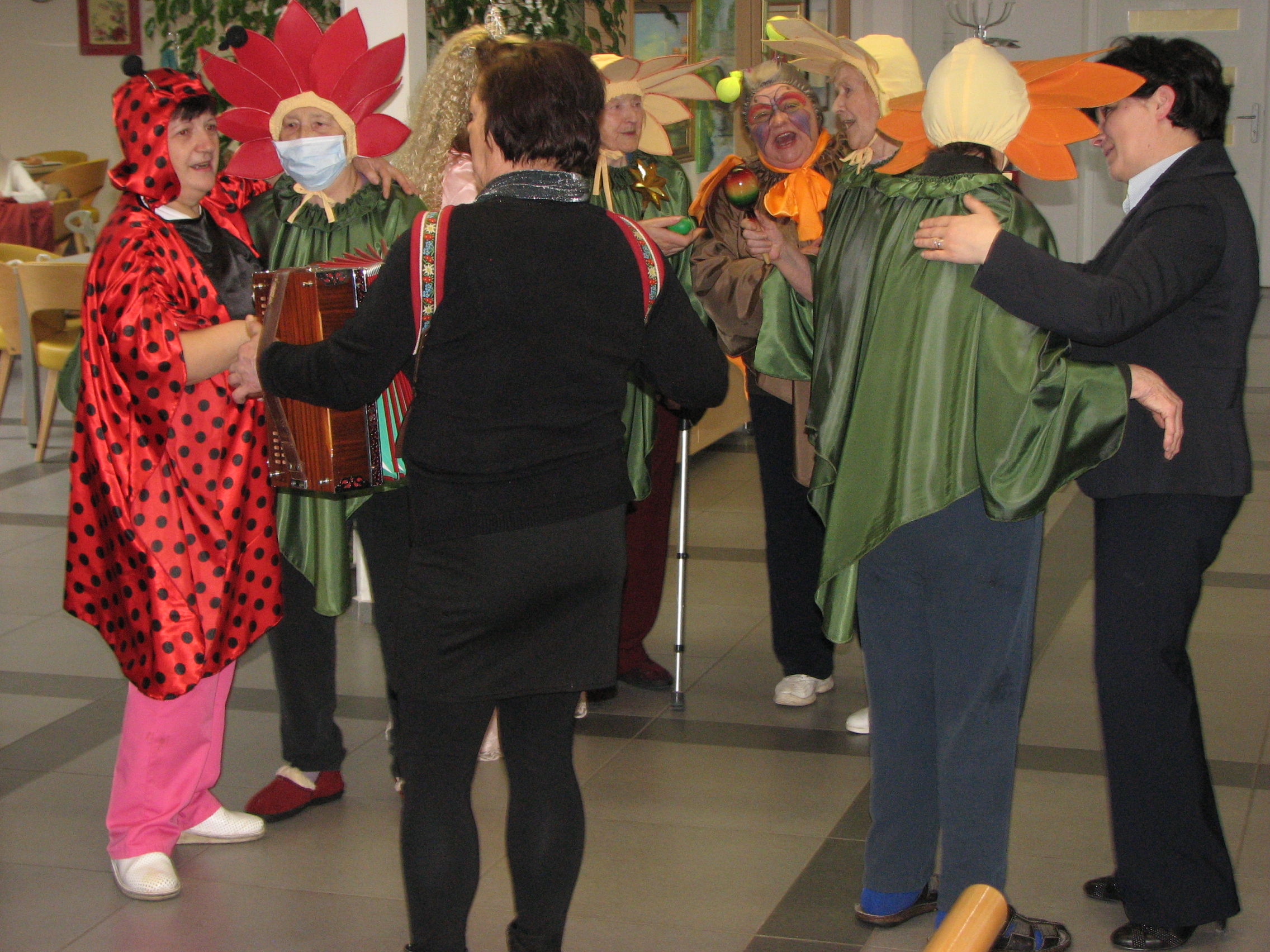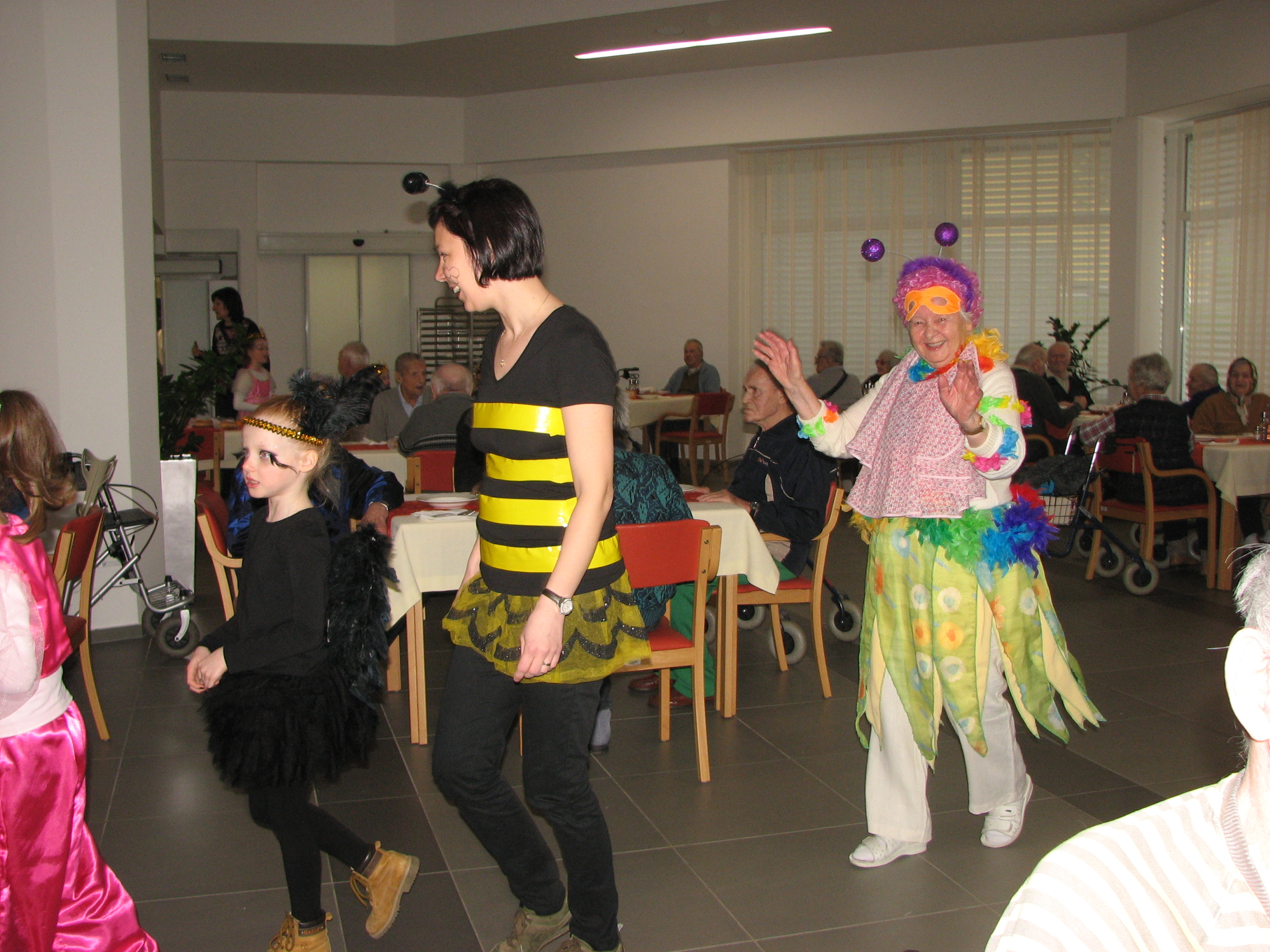 Na pustni torek smo delavci, stanovalci, otroci iz vrtca »Kekec« in podaljšanega bivanja Osnovne šole Šmihel, oblečeni v najrazličnejše pustne kostume, s pesmijo in plesom preganjali zimo in se skupaj veselili.