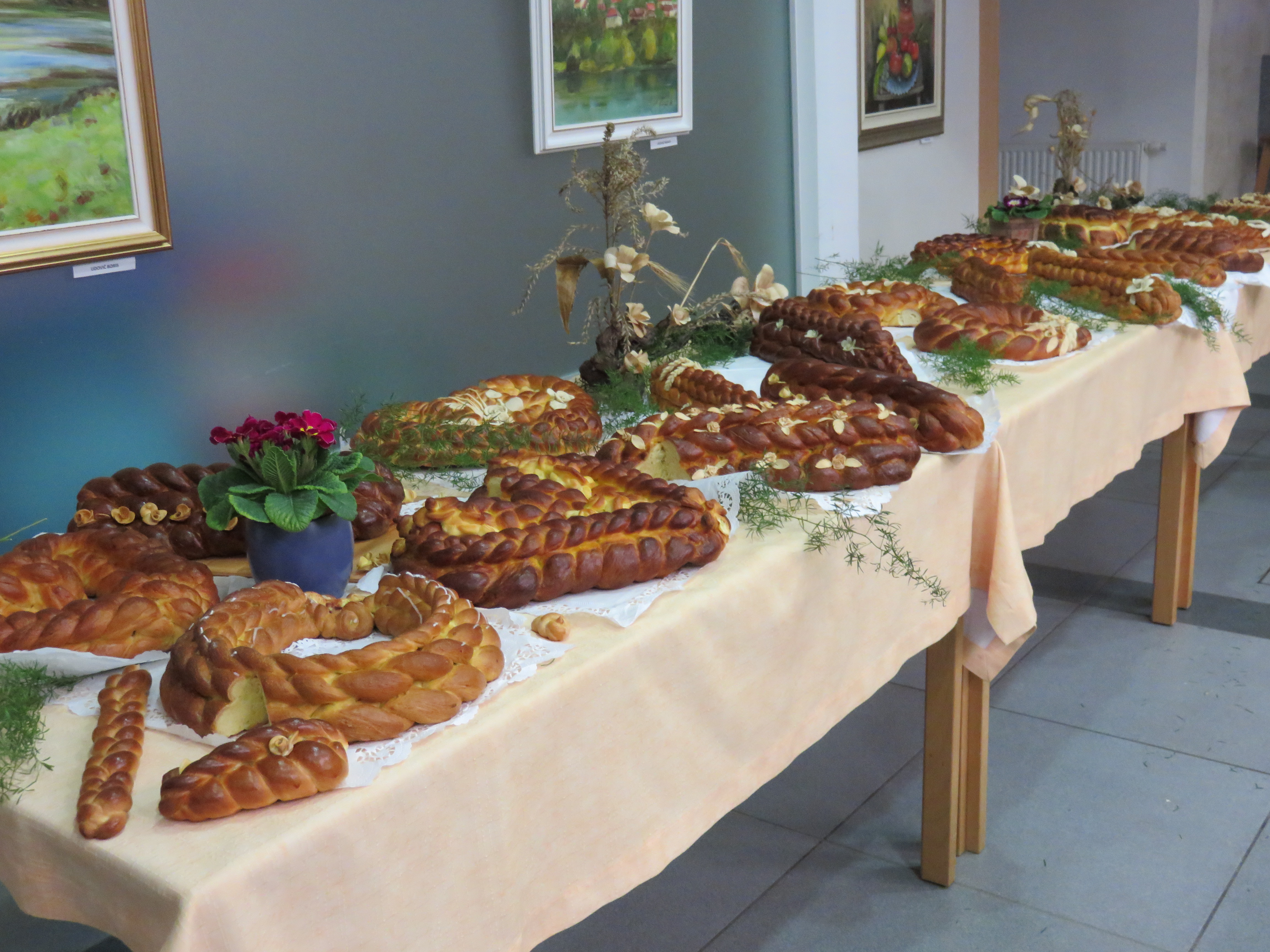 Tudi letos smo si v avli ogledali razstavo nekaterih od pletenic, ki so jih za državno tekmovanje izdelale gospodinje in je potekalo v Prečni. Da niso samo umetniško izdelane, pač pa tudi zelo dobre, smo se ob koncu razstave lahko prepričali na degustaciji.