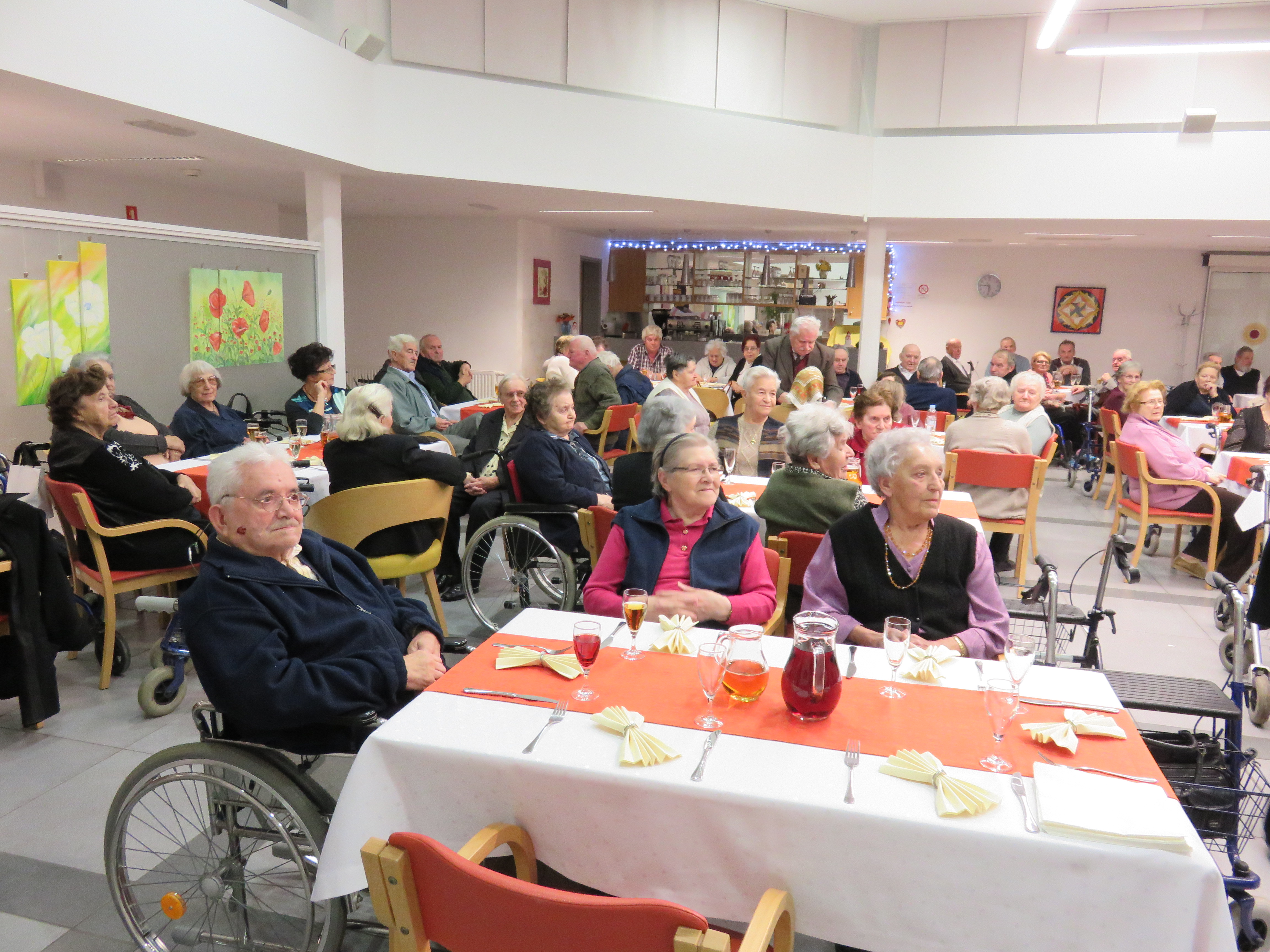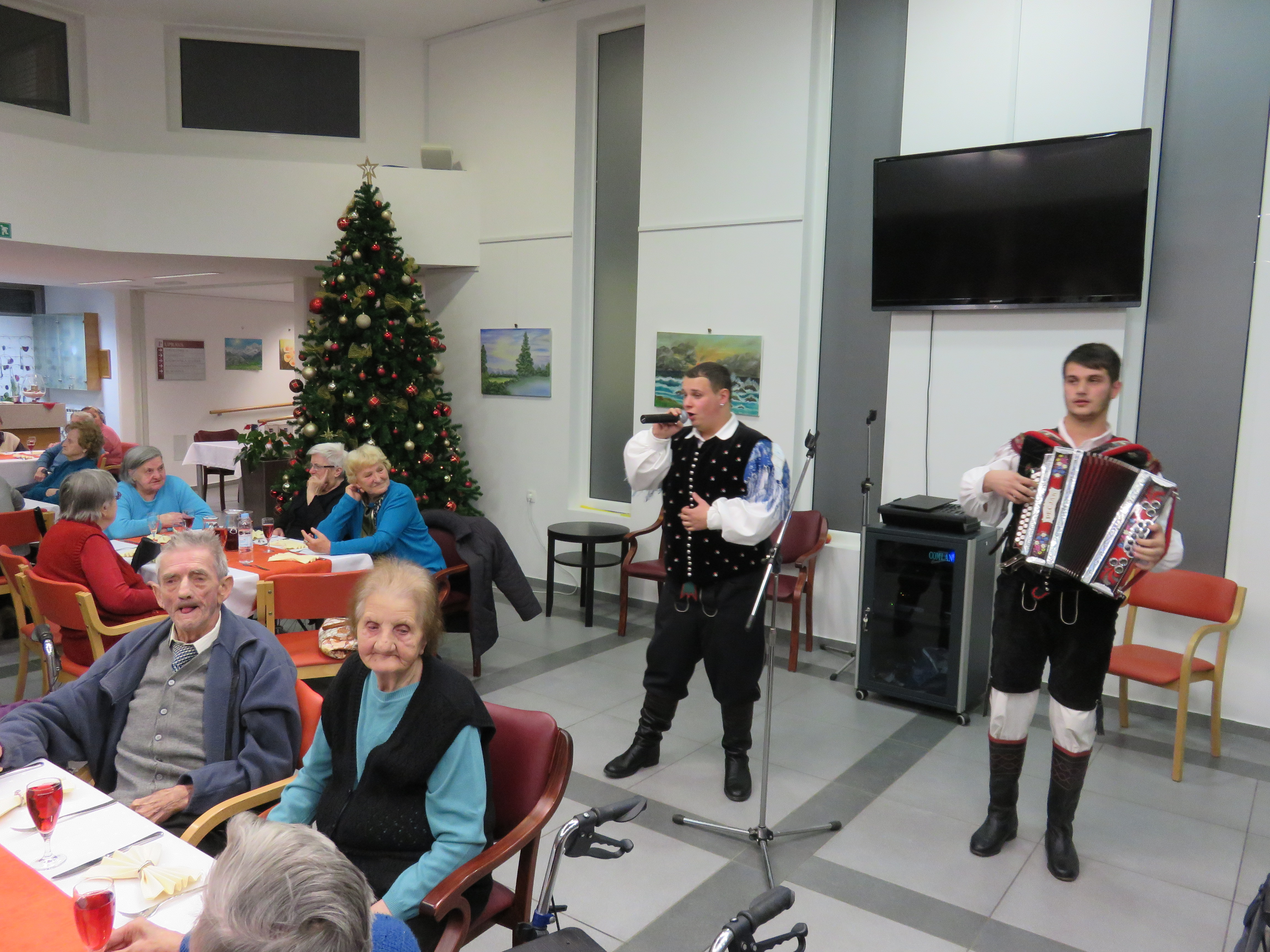 V ponedeljek, 29.12.2014, smo imeli v avli silvestrsko večerjo. Od starega leta smo se poslovili v prijetnem razpoloženju. Za dobro voljo sta poskrbela mlada glasbenika Jan Jerič in Gašper Klobučar. Večer smo zaključili s srečelovom.