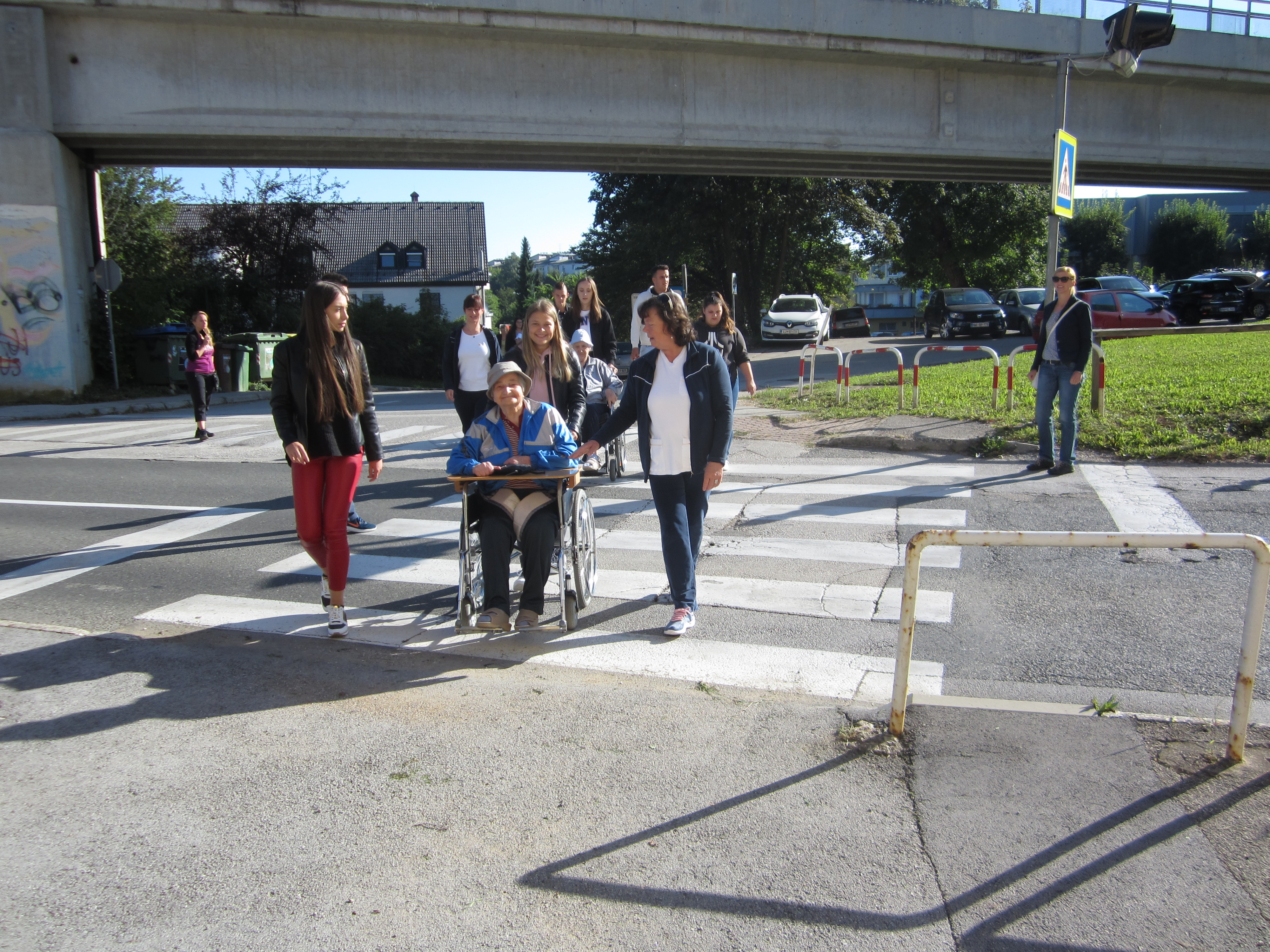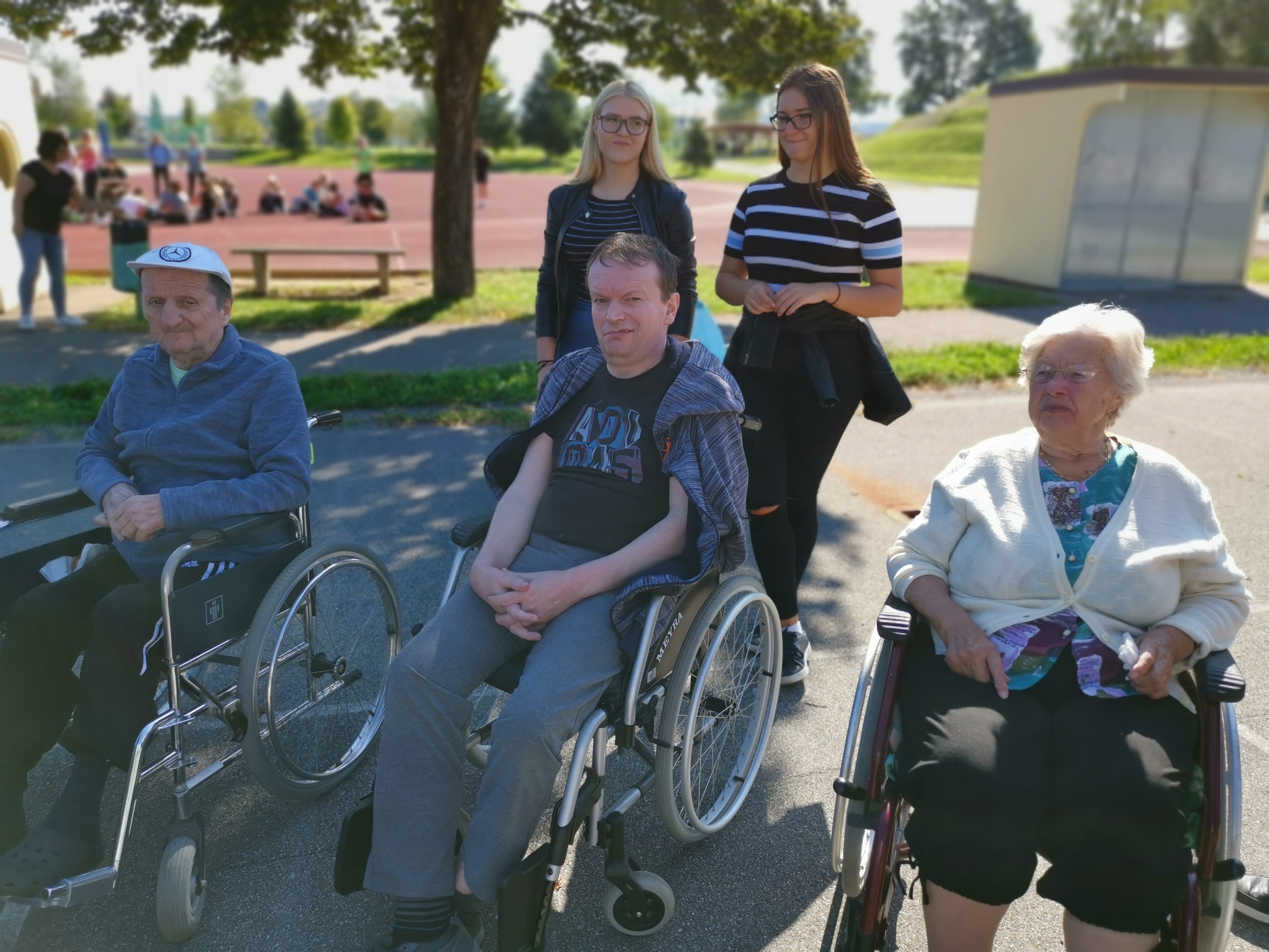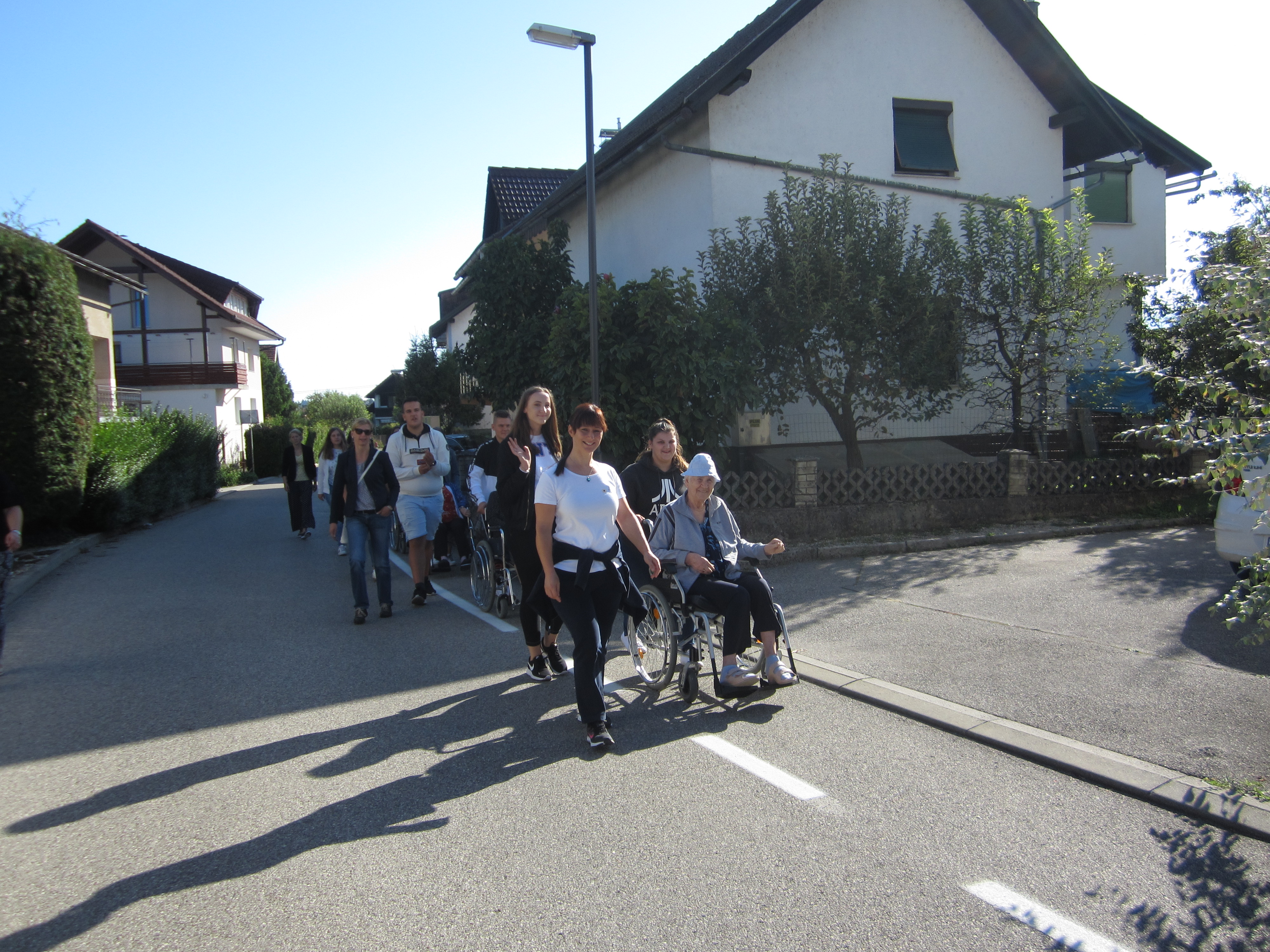 Z dijaki Šolskega centra Novo mesto in našimi stanovalci na invalidskih vozičkih smo se odpravili na krajši sprehod v bližnjo okolico. Bilo je prav prijetno, saj nas je spremljalo toplo sonce. Da pa je bilo še bolj veselo, smo vmes kakšno zapeli in se prav zadovoljni vrnili v dom.