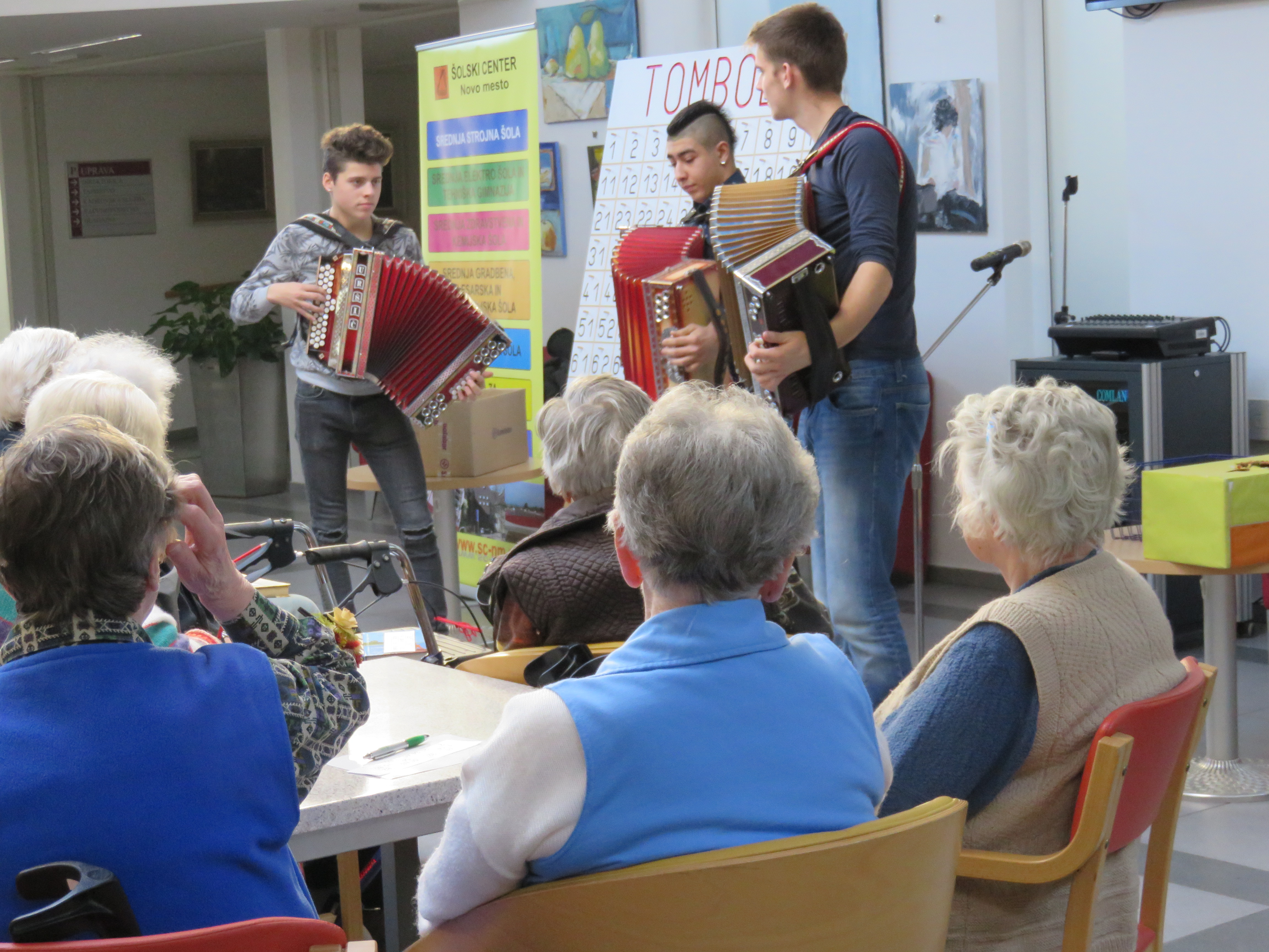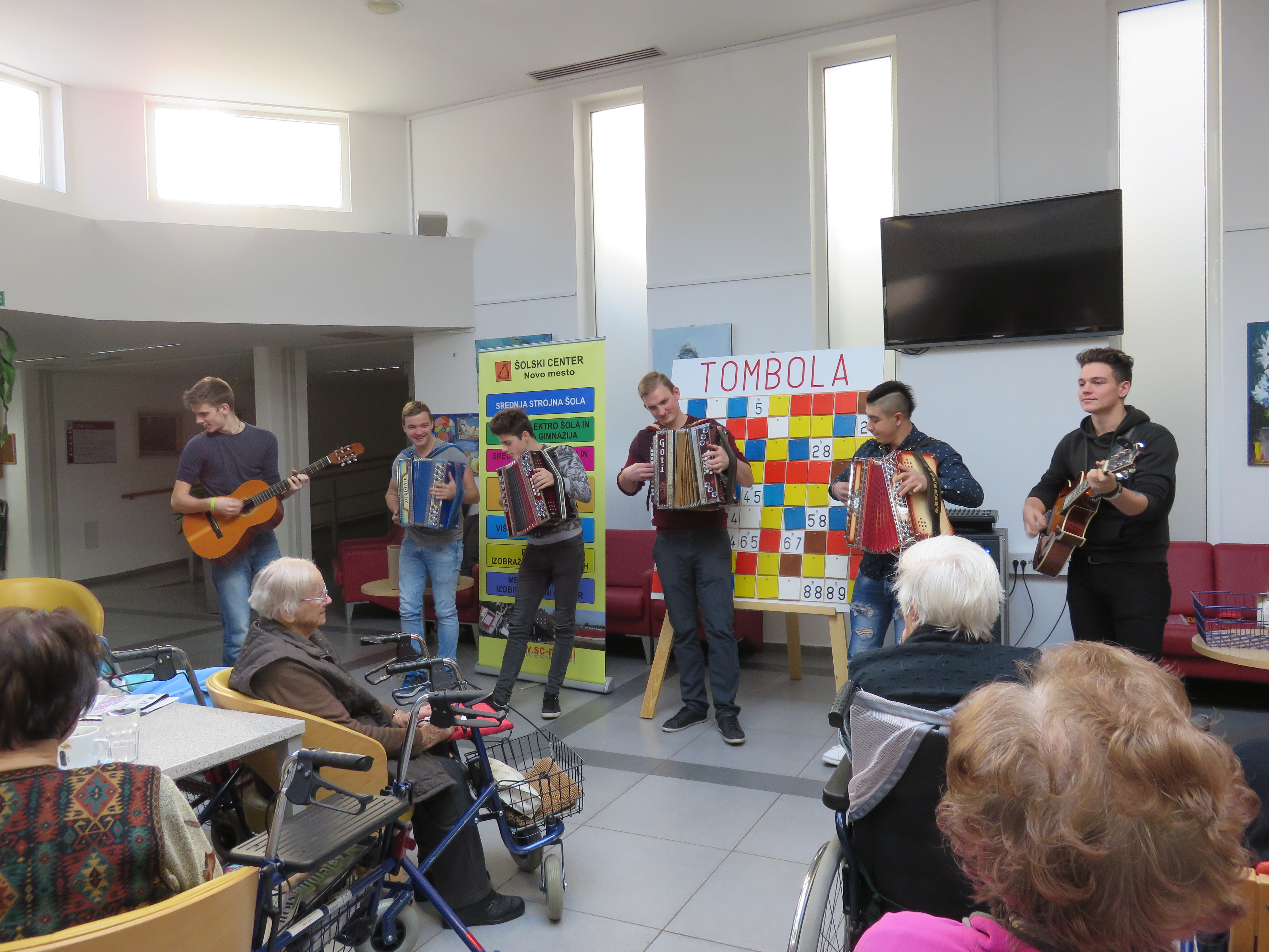 Decembrsko tombolo je popestril nastop dijakov Srednje gradbene, lesarske in vzgojiteljske šole iz Novega mesta. Z zvoki harmonike in kitar so v napeto ozračje pričakovanja dobitkov vnesli sproščenost in prijetno vzdušje. Prispevali so tudi izdelke za glavna dobitka.