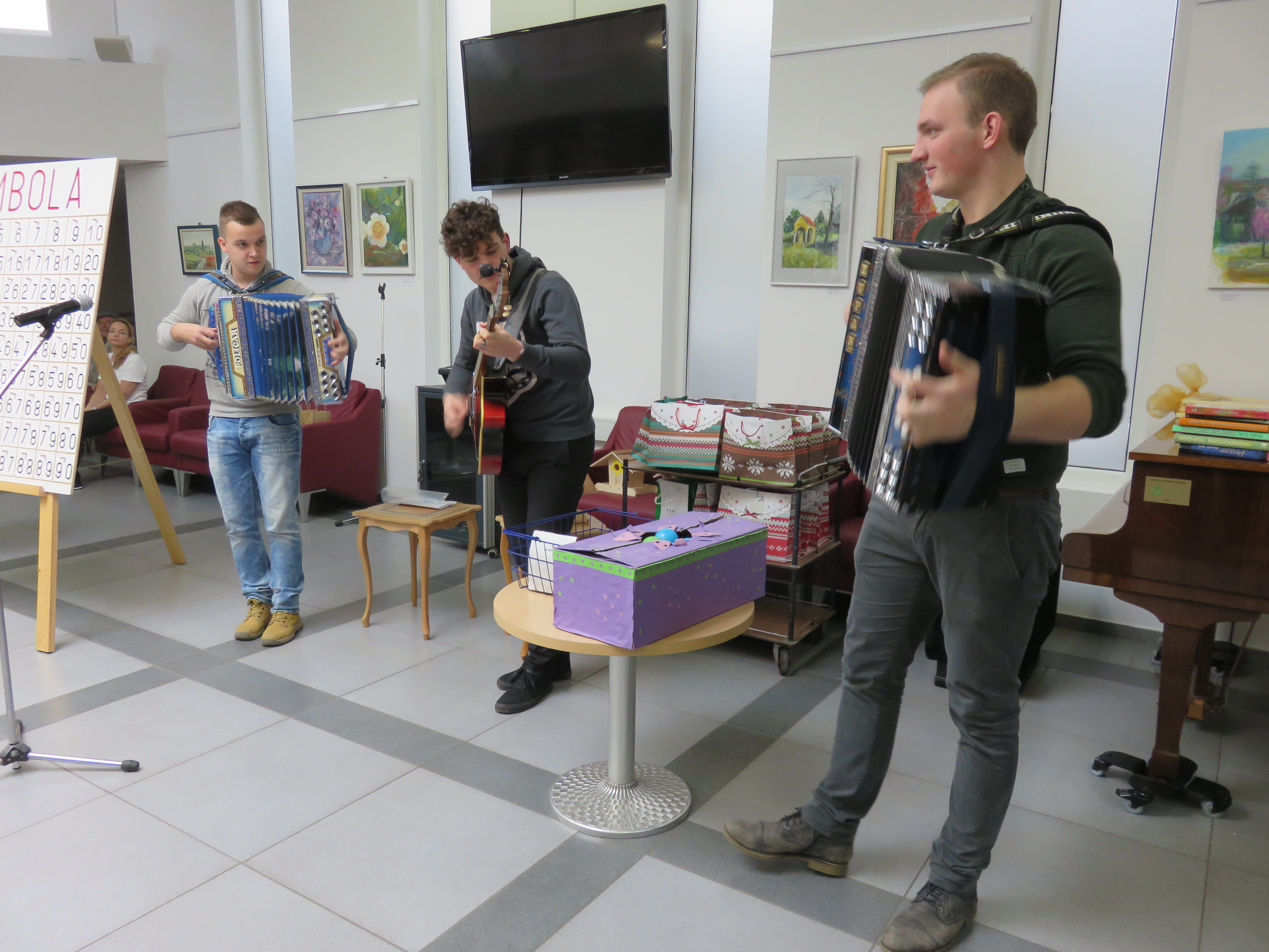 Na tradicionalni, zadnji tomboli v letošnjem letu so se nam ponovno pridružili dijaki Srednje gradbene, lesarske in vzgojiteljske šole iz Novega mesta. Pri pouku so za tombolo izdelali glavne dobitke, na prireditvi pa s svojim nastopom poskrbeli za prijetno razpoloženje. Izžrebali smo tudi nagrajence, ki so sodelovali v reševanju miselnih nalog Abecede odličnosti v okviru Rastoče knjige.