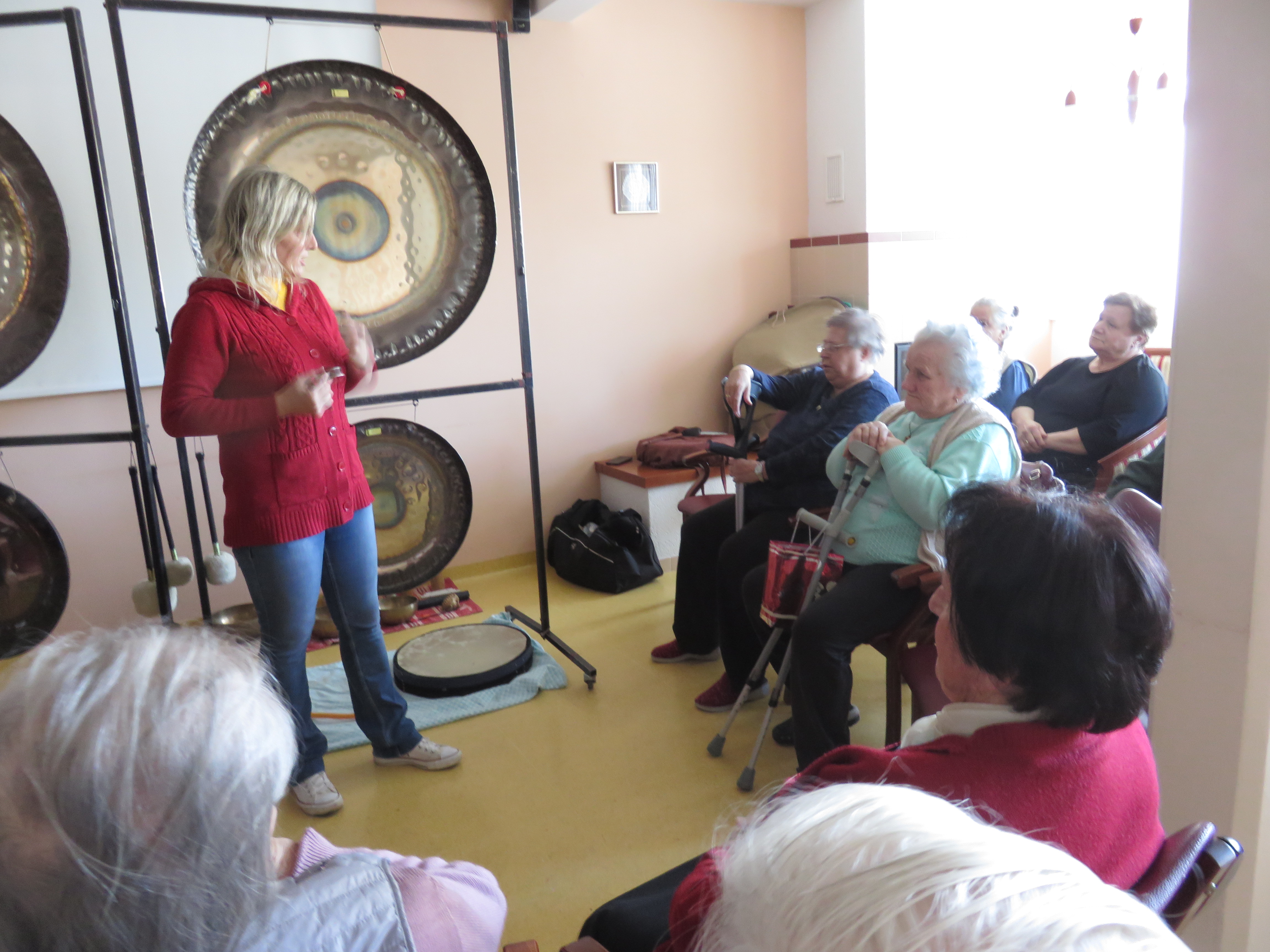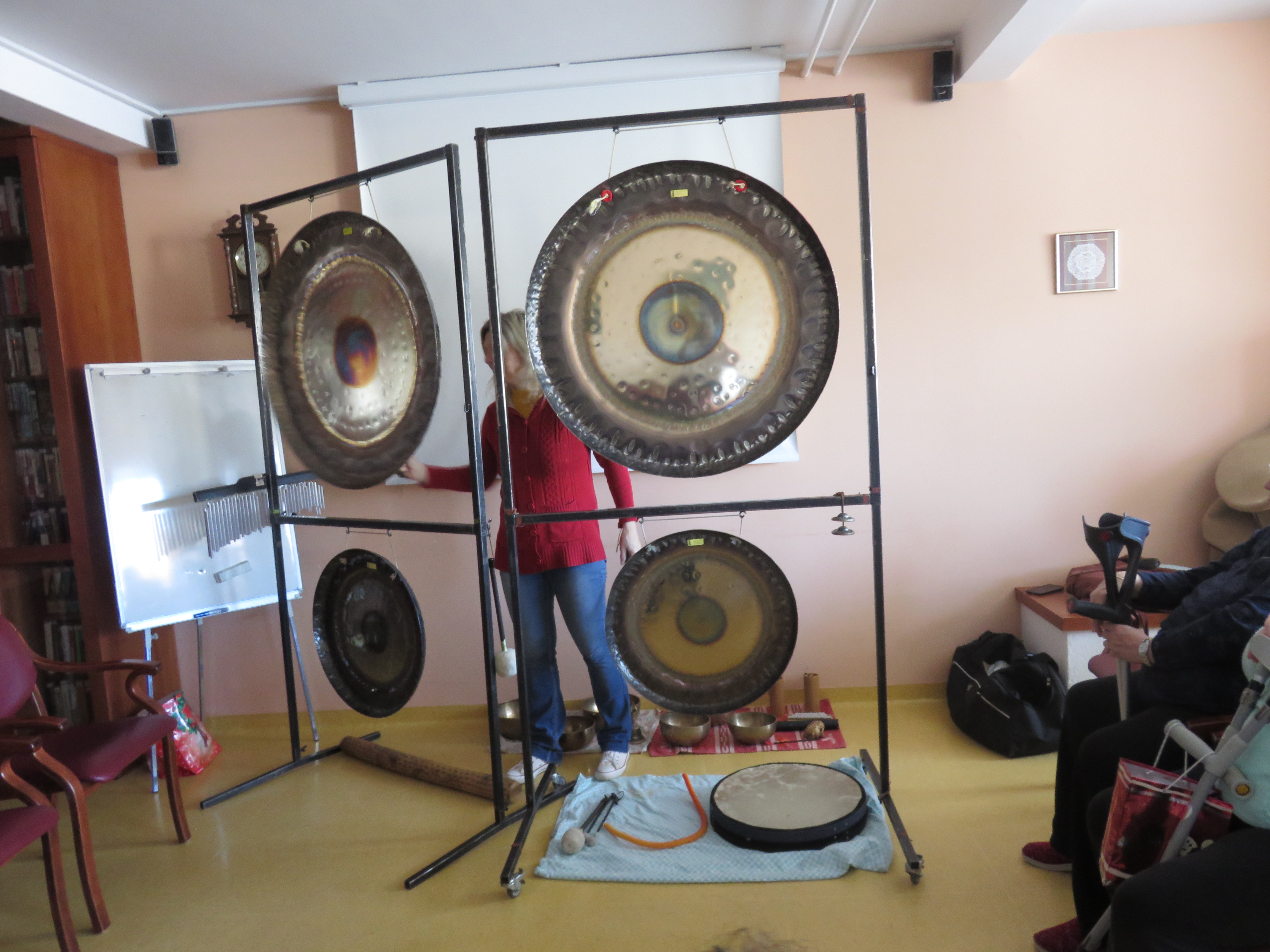 Urice ob kaminu so bile tokrat malo drugačne. Srečali smo se z gongi in uživali ob njihovih zvokih, ki nam jih je pričarala naša zunanja sodelavka. Ob zvokih smo se vsi počutili prijetno in sproščujoče, predvsem pa umirjeno.