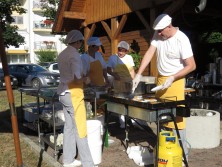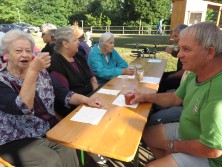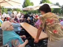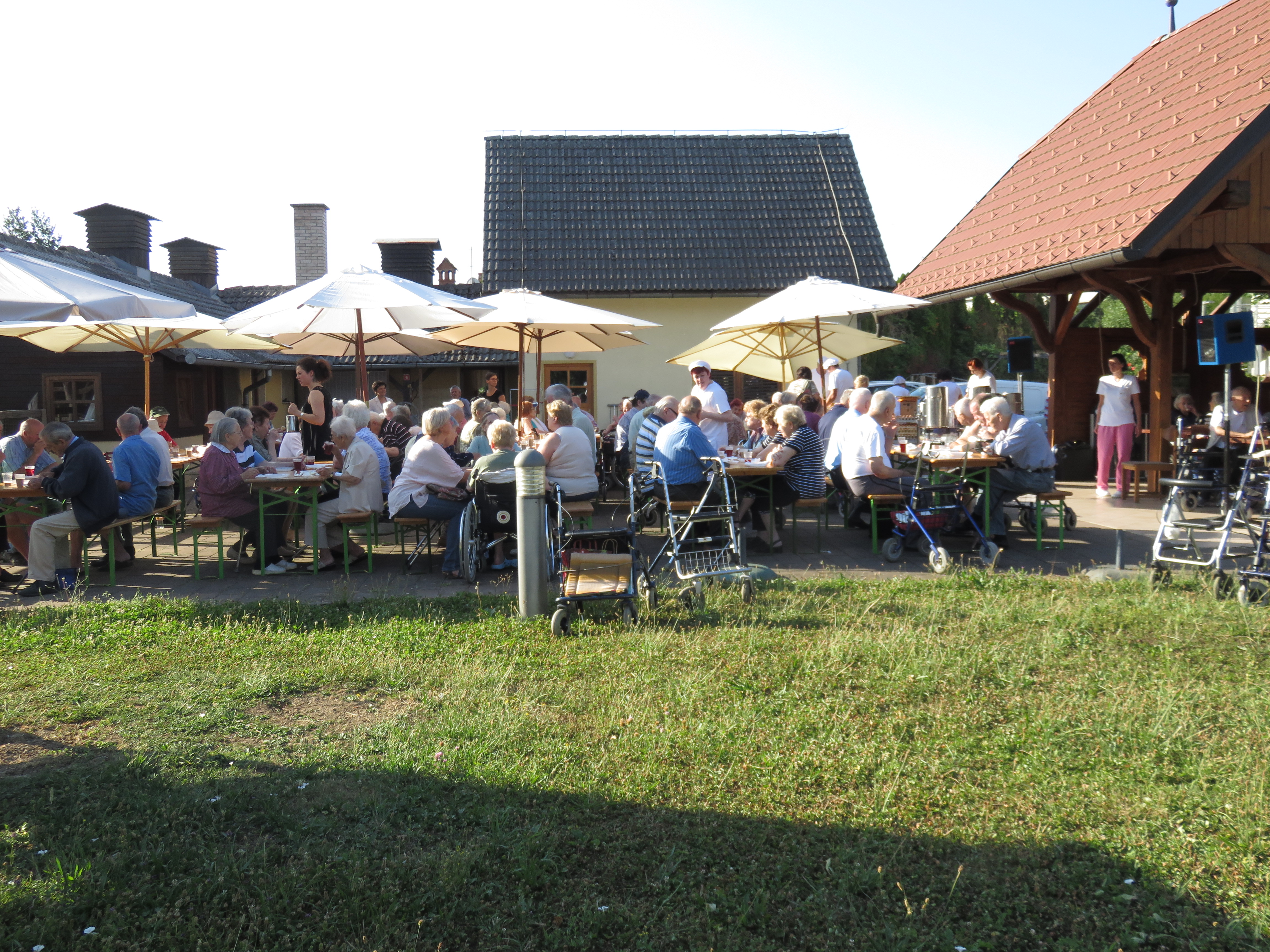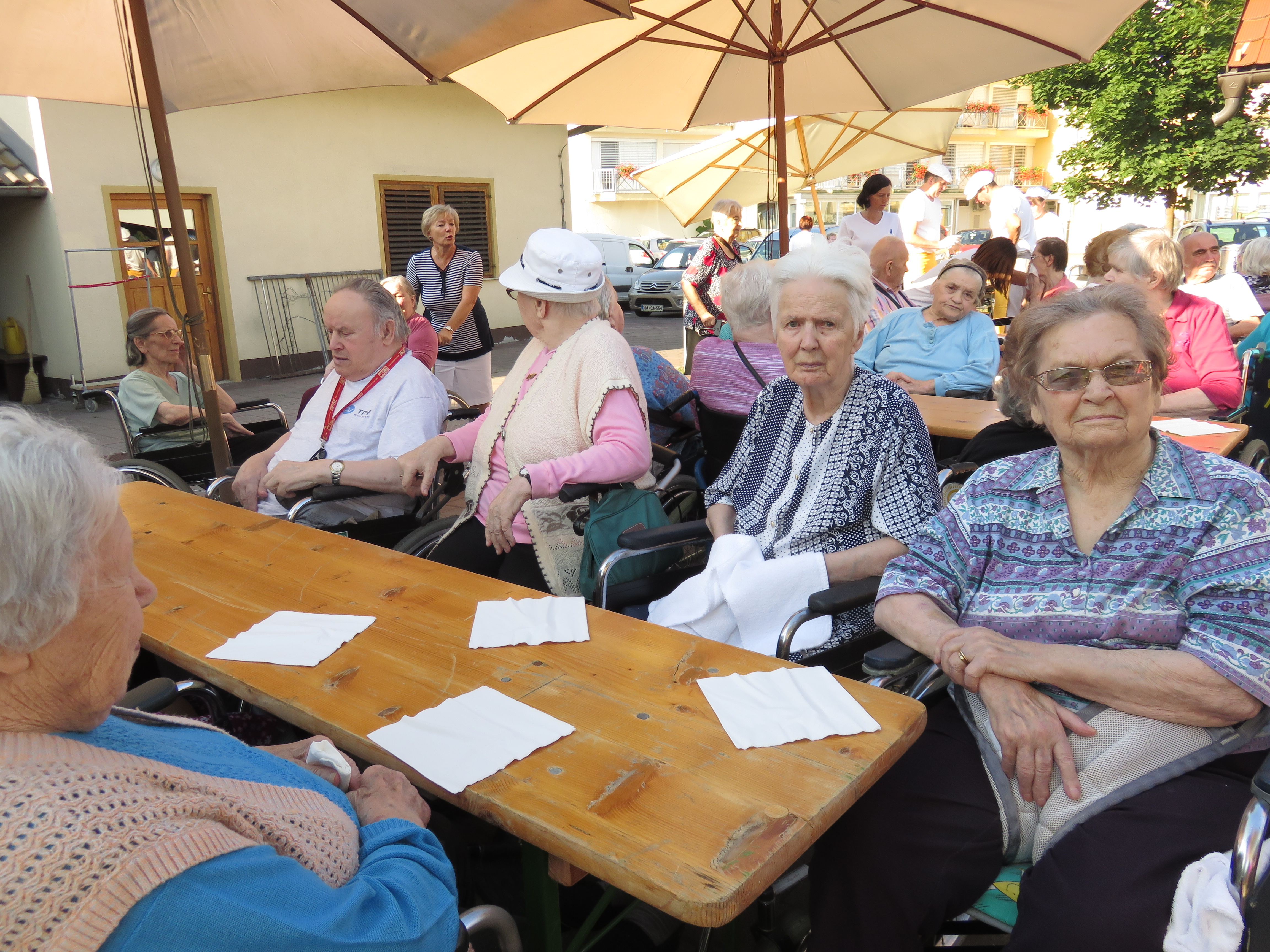 Dva torka v mesecu juliju smo v prijetnem jutranjem hladu za naše stanovalce pripravili zajtrk na Domačiji. Po končanem zajtrku smo preživeli še nekaj časa ob pogovoru, druženju in poslušanju zvokov harmonike na katero je igral Timotej Lah. Sonce ki je vedno bolj grelo nas je kmalu opozorilo da je najbolje, če se vrnemo v klimatizirane prostore našega doma.