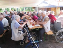 Tokratni zajtrk na domačiji je bilo za vse veliko presenečenje. V sredo, 17. 7. 2019, so zaposleni v naši kuhinji stanovalce presenetili, saj so jim pripravili veliko različnih jedi. Ponudili so palačinke, pečena jajčka, popečene vinske šnite, pečen mesni sri, veliko različnih namazov ter napitke. Stanovalcem je bilo iz oči prebrati, da so bili z izborom zelo zadovoljni.
