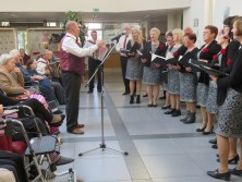 Člani Mešanega pevskega zbora DU Podgorje iz Stopič so s svojim prepevanjem in izborom lepih slovenskih pesmi naše stanovalce ponesli v čas mladosti, veselja in razigranosti.