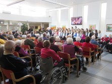 Stanovalce, ki se zaradi svoje bolezni niso mogli udeležiti novoletnih prireditev v avli našega doma, so s svojim zdaj že tradicionalnim prepevanjem po oddelkih, dnevnih prostorih in hodnikih razveselile članice Vokalne skupine Mezzo.